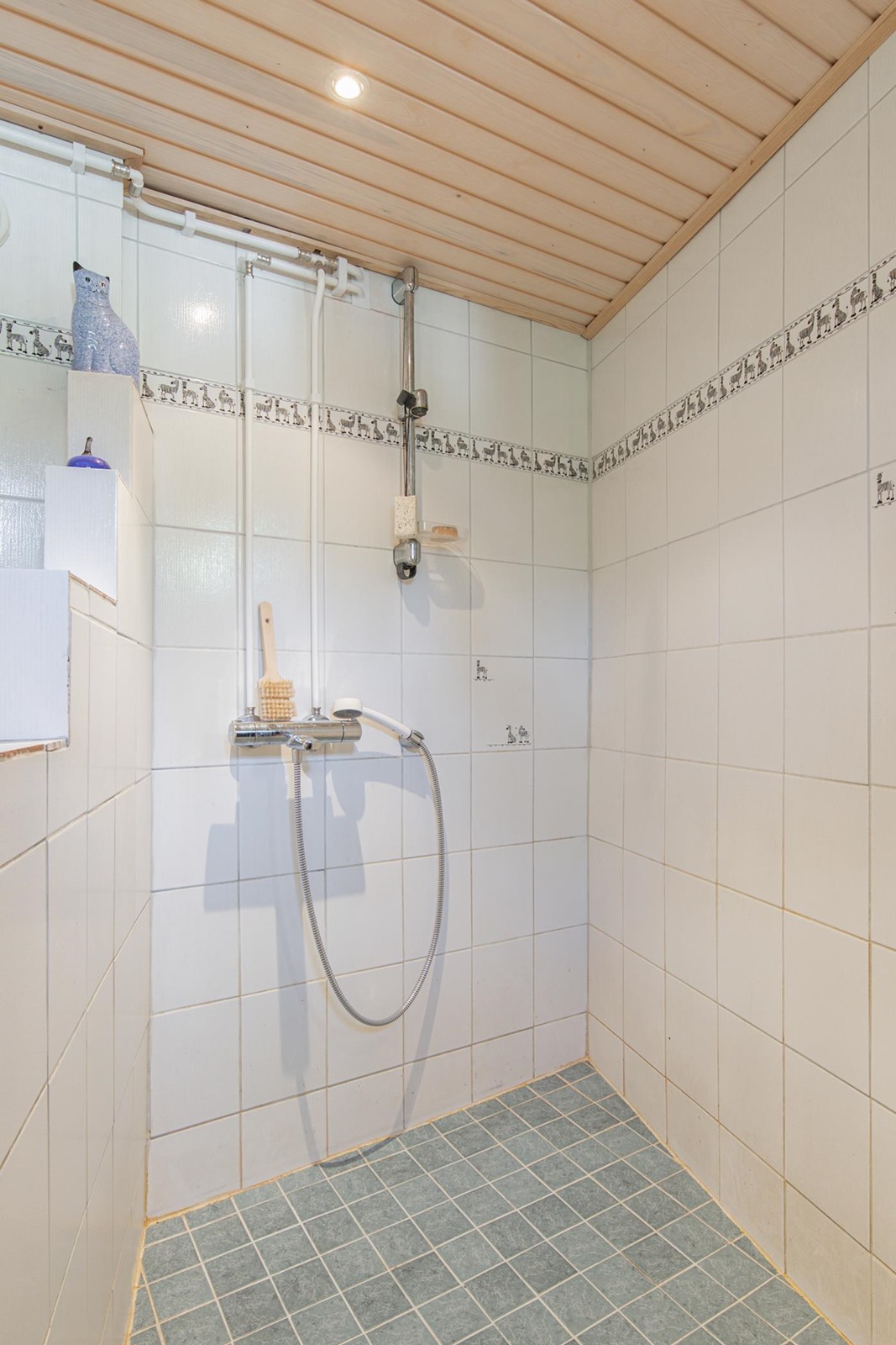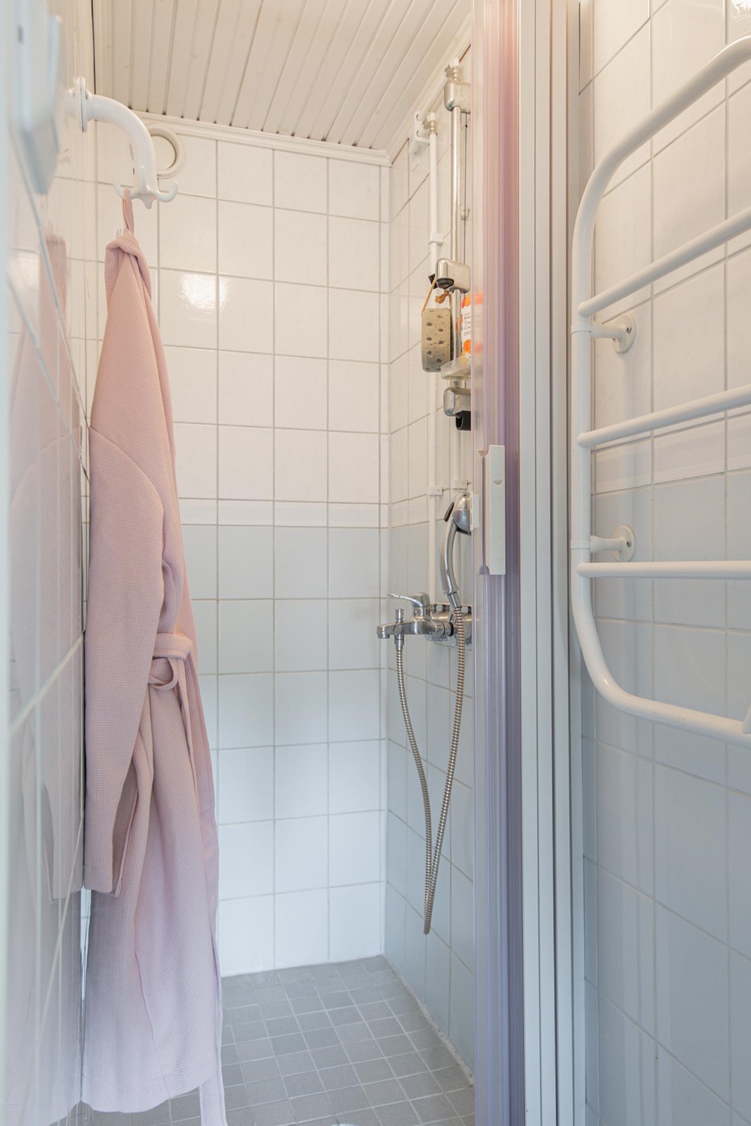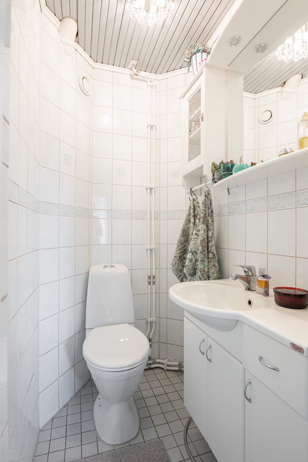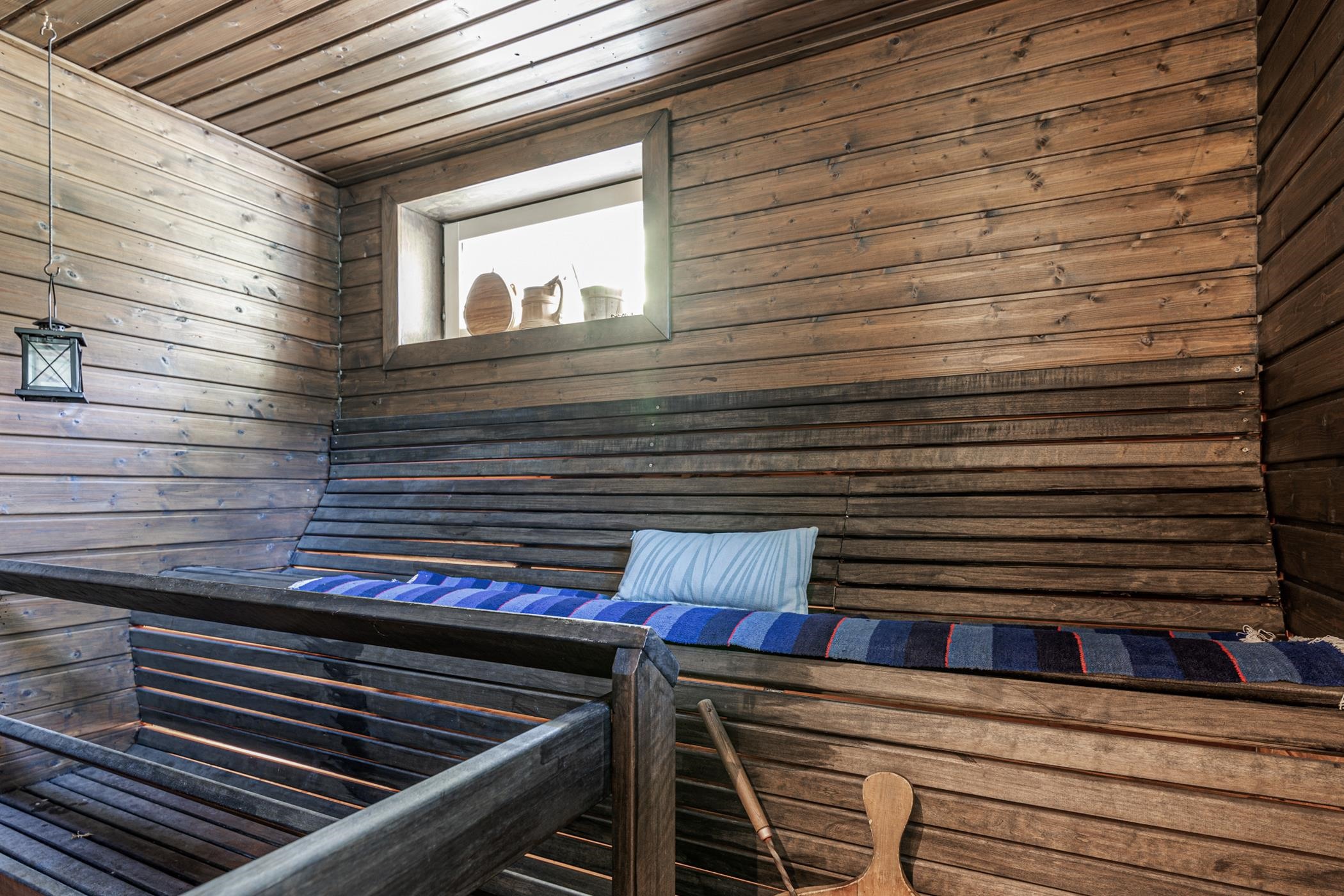 - Sauna, sähkökiuas (uusittu 2021), kylpyhuone, erillinen wc (pytty uusittu 2022), suihku, suihkuseinä (laatoitettu), peilit, kaapit ja allaskaappi (wc:ssä), pesukoneliitäntä (kylpyhuoneessa), lattialämmitys (kylpyhuoneessa ja saunassa), kiinteät valaisimet.