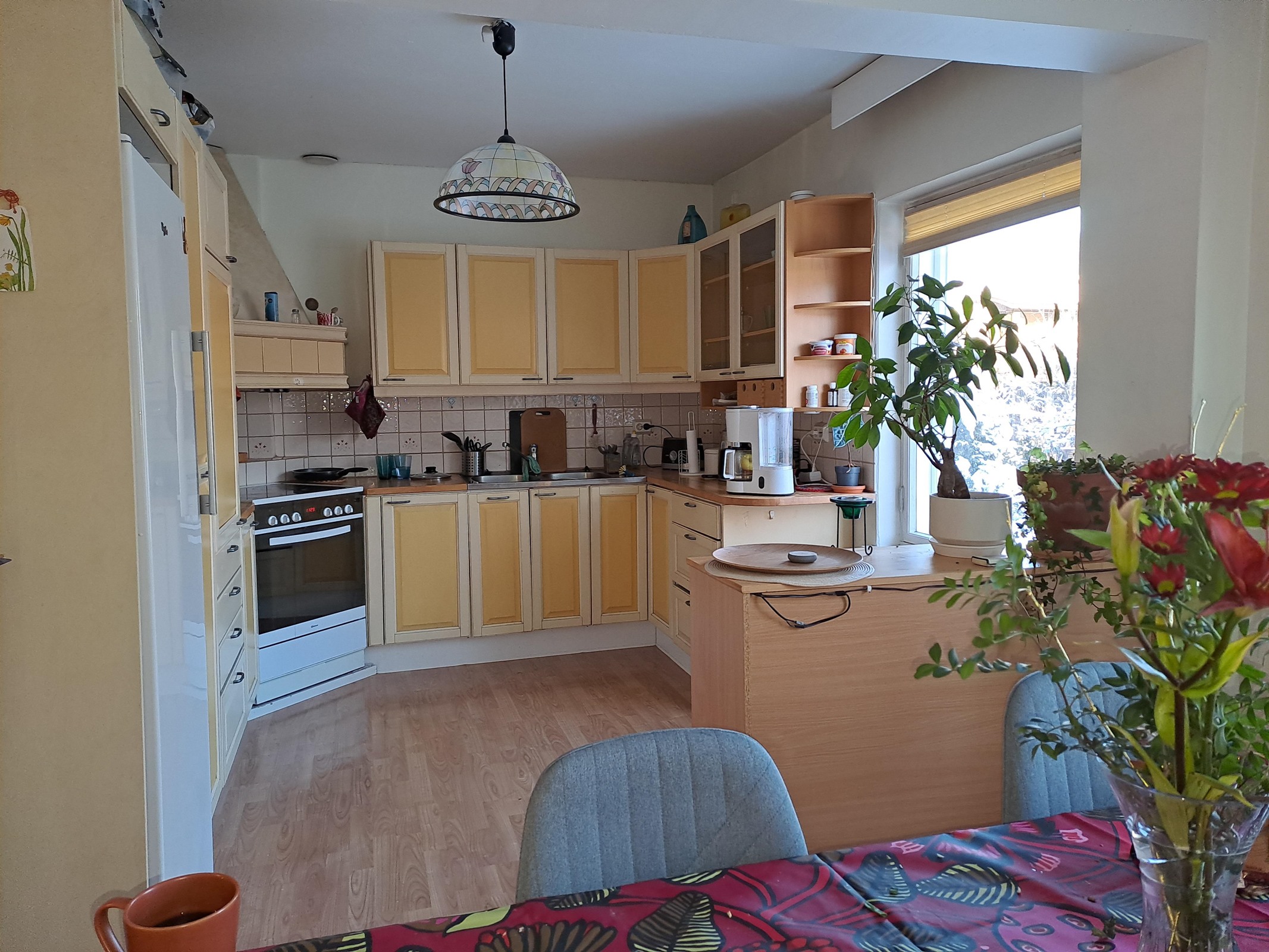 - Jääkaappipakastin, keraaminen liesi, liesikupu, astianpesukone Uusittu 2024, Whirlpool, kaapistot, kiinteät valaisimet.