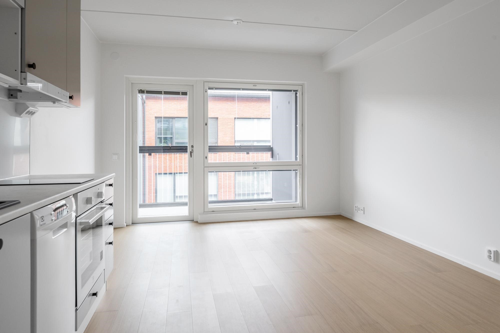 - Jääkaappipakastin, induktioliesitaso, liesikupu, astianpesukone, kaapistot, kiinteät valaisimet. Tilavaraus mikroaaltouunille.Työpöytätasot ovat laminaattipintaisia, välitilassa laminaatti. Keittiön altaat ovat komposiittia ja tasoon upotettuja. Huoneiston koosta riippuen liesitaso Domino tai 60 cm, astianpesukone 45 cm tai 60 cm.