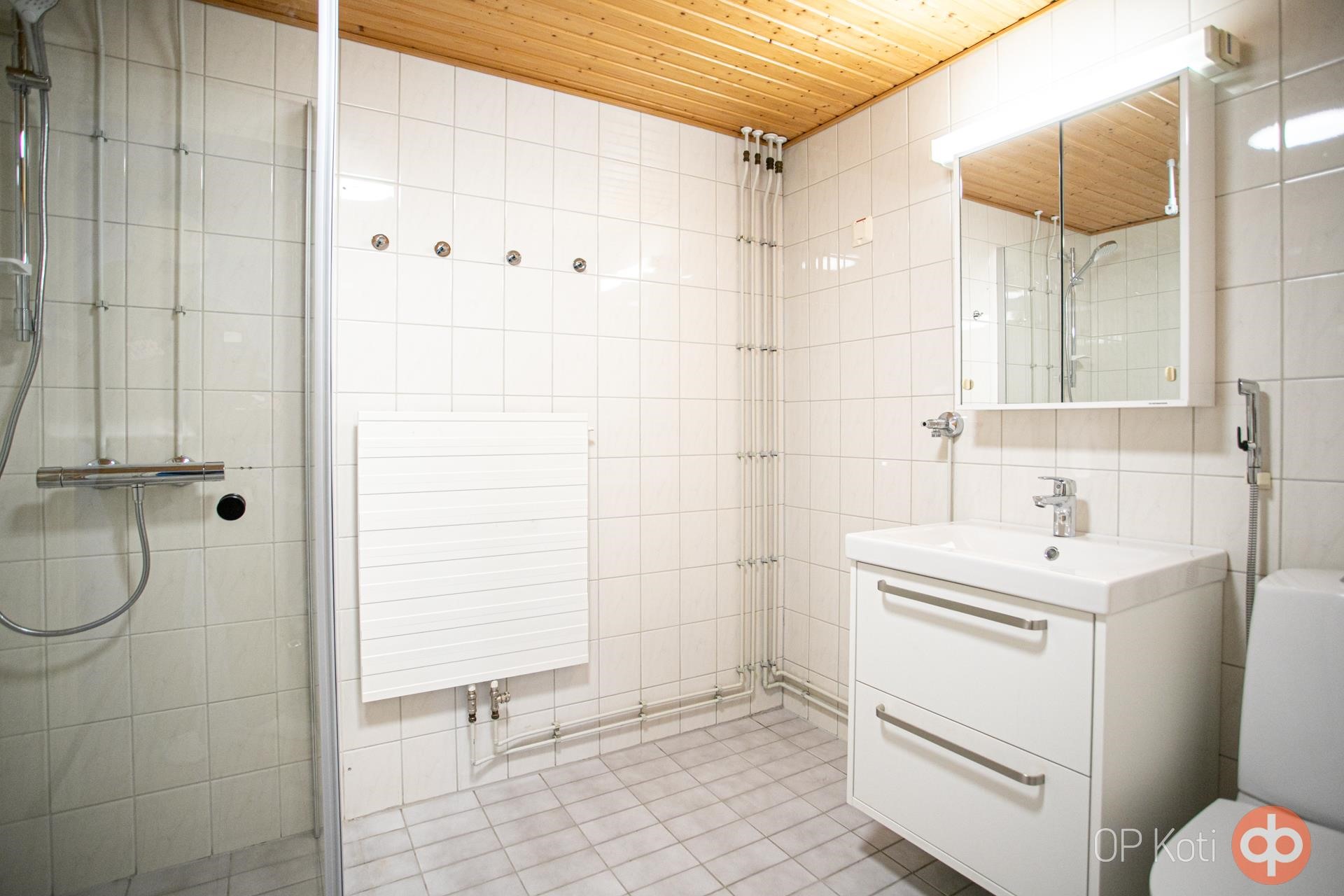 - Sauna, sähkökiuas, kylpyhuone, suihku -26, suihkukaappi -26, peilikaappi, allaskaappi - 26, pesukoneliitäntä, kiinteät valaisimet. wc-istuin, allas 2026