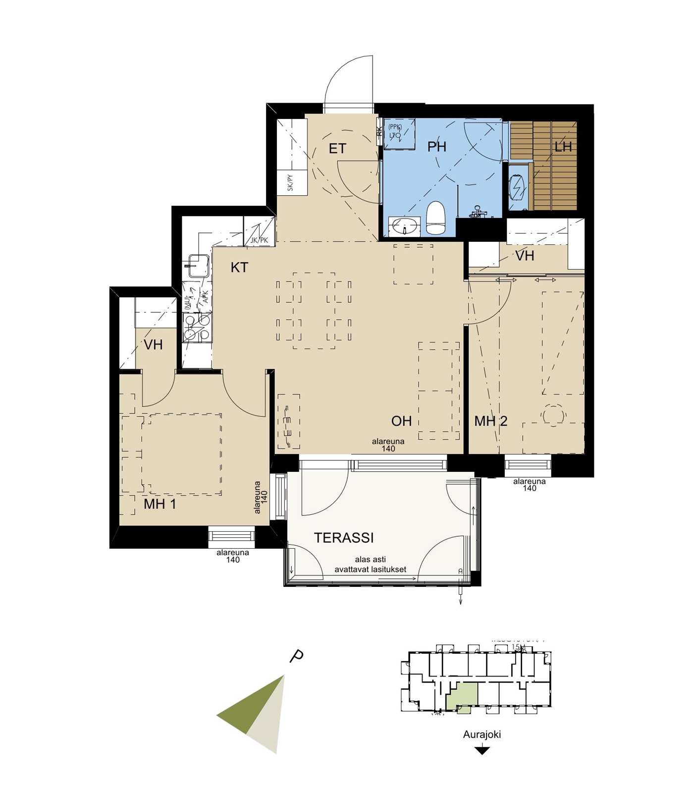 - 3 h, kt, s, terassi