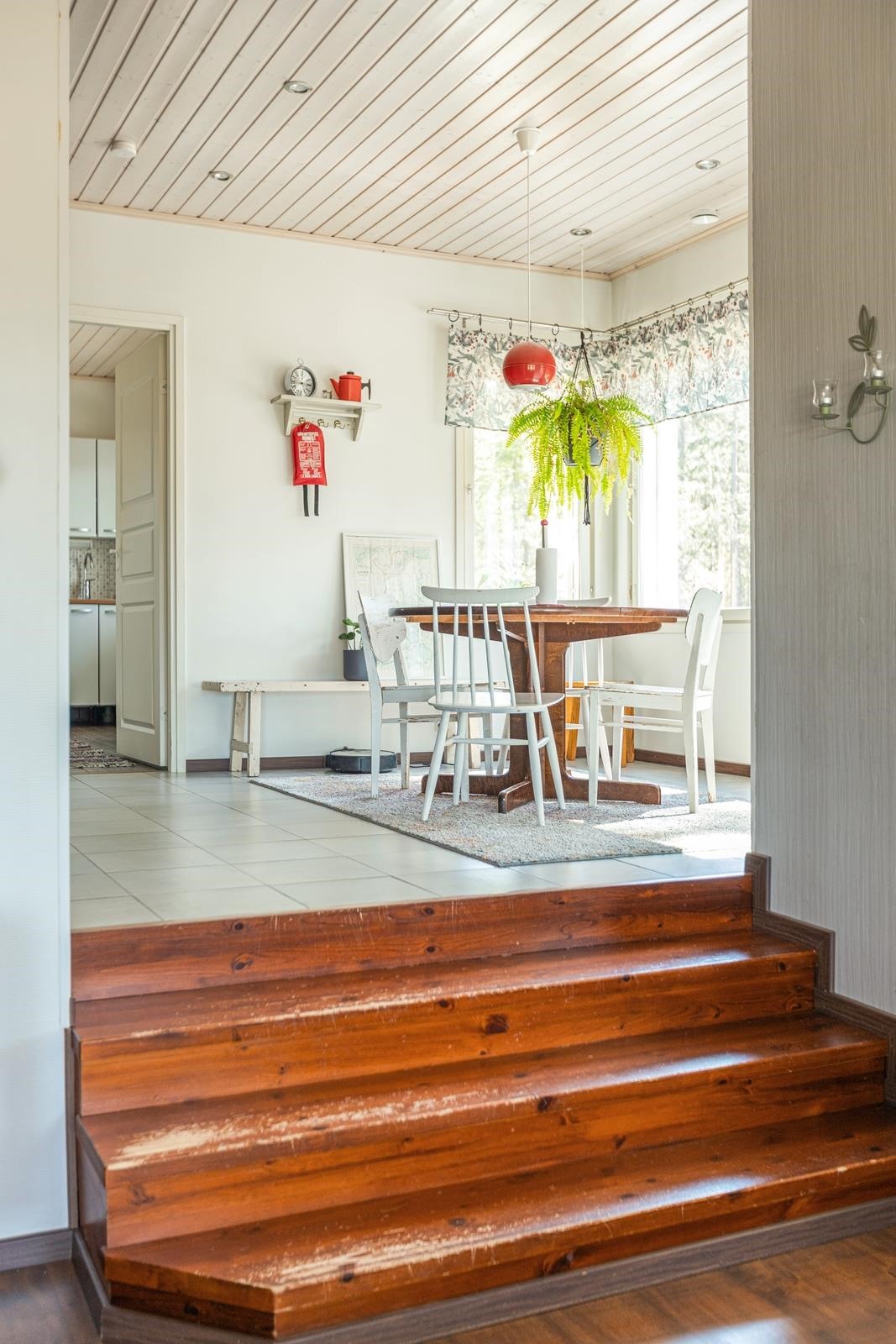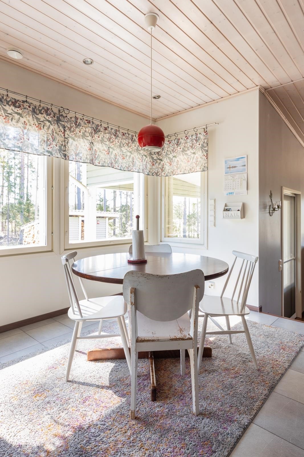 - Keittiö: seinät lasikuitutapettia, lattia laattaa. Olohuone: seinät tapetoitu, lattia laminaattia. Makuuhuone 1: seinät tapetoitu, lattia laminaattia. Makuuhuone 2: seinät tapetoitu, lattia laminaattia. Makuuhuone 3: seinät tapetoitu, lattia laminaattia. Sauna: seinät paneloitu, lattia laatoitettu. Kylpyhuone: laatoitettu.