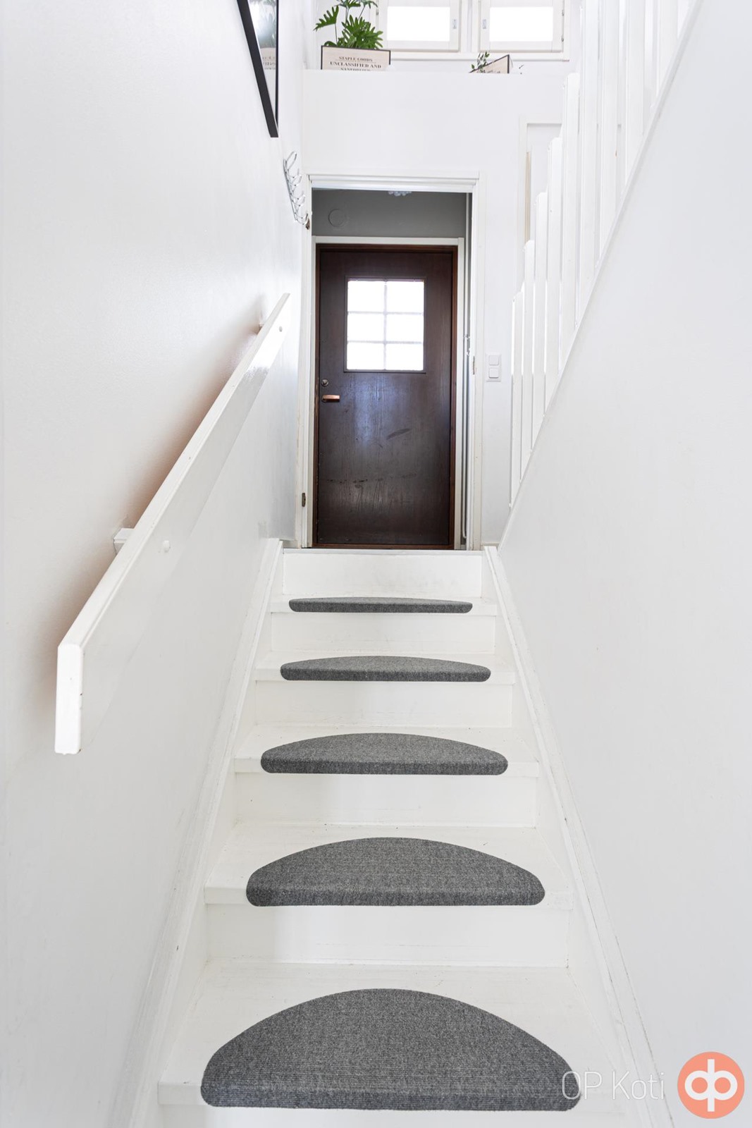 Keittiö: vinyylilattia, kaakeloitu välitila. Olohuone: vinyylilattia, maalatut seinät. Makuuhuone 1: vinyylilattia, maalatut seinät. Makuuhuone 2: vinyylilattia, maalatut seinät. Sauna: paneeliseinät ja lattialaatta. Kylpyhuone: laatoitettu ja paneelikatto. Eteinen: laattalattia. Wc: lattialaatta ja maalatut seinät. Portaiden alla erillinen oma säilytystila: -.