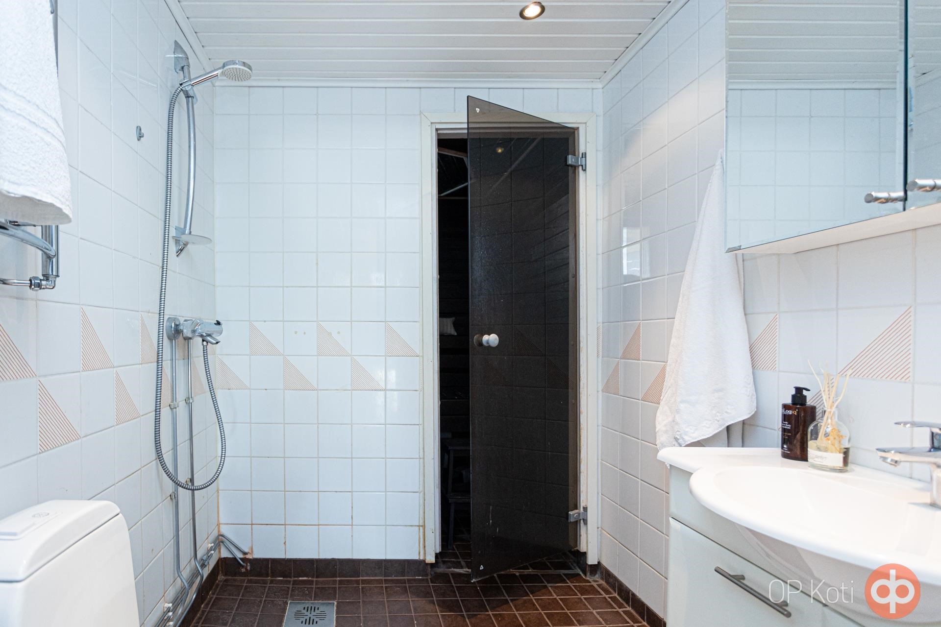 - Sauna Käsitelty 2017, lisätty samalla kuidut kattoon, sähkökiuas, kylpyhuone, erillinen wc, suihku, peilit, allaskaappi, pesukoneliitäntä, kiinteät valaisimet. Kylpyhuoneessa vesikiertoinen pyyhekuivain. WC lattialaatta vaihdettu 2024 2006 kph + sauna remontoitu alakerran vinyyli vaihdettu 2024 keittiö remontoitu 10 vuoden sisällä, Petra-keittiöt