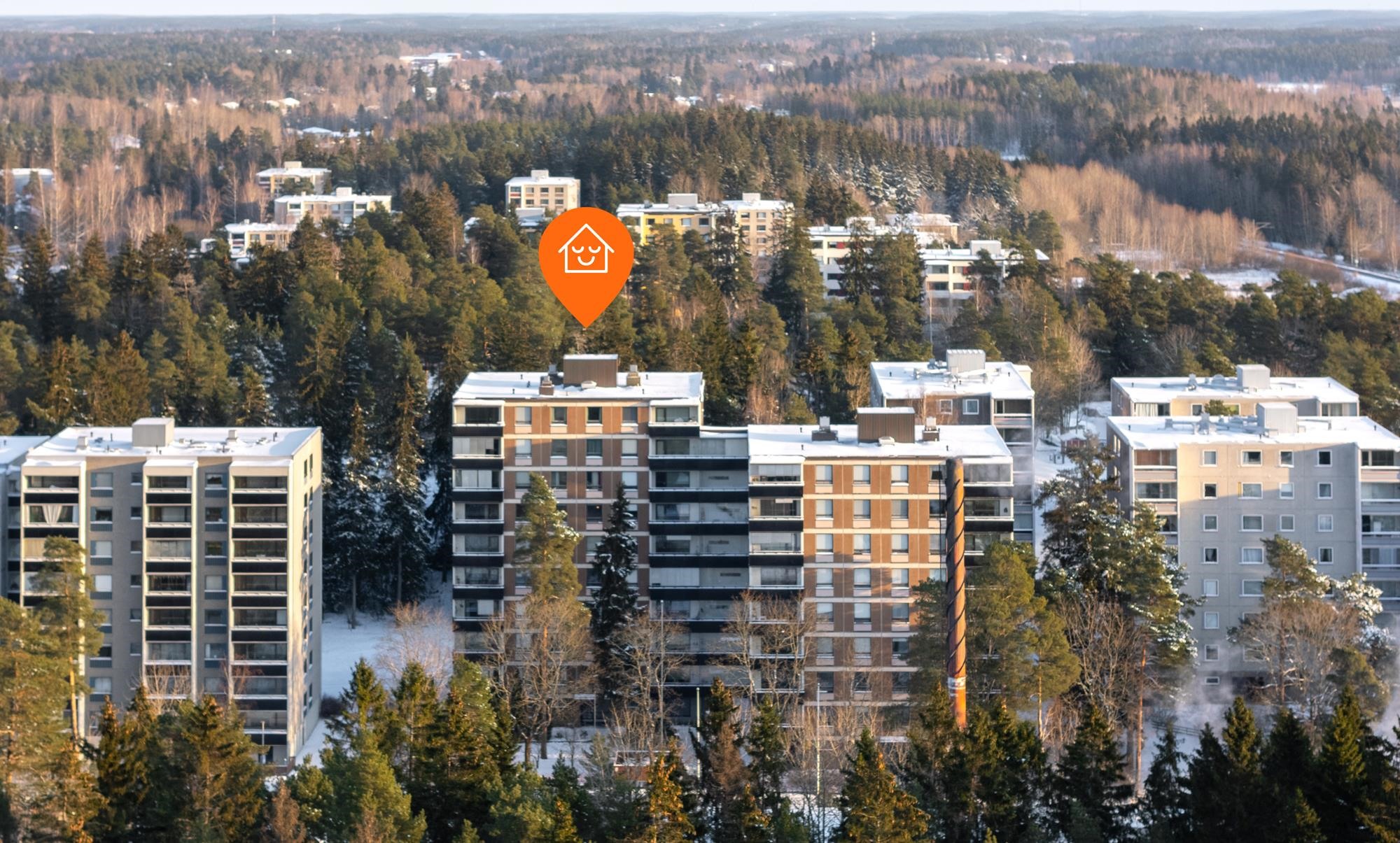 - Ylimmän kerroksen kulmahuoneisto. Ikkunat länteen ja pohjoiseen.
