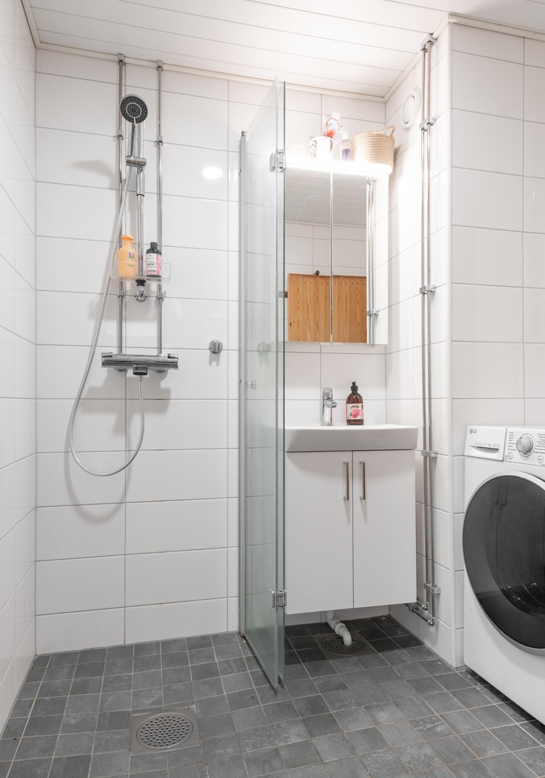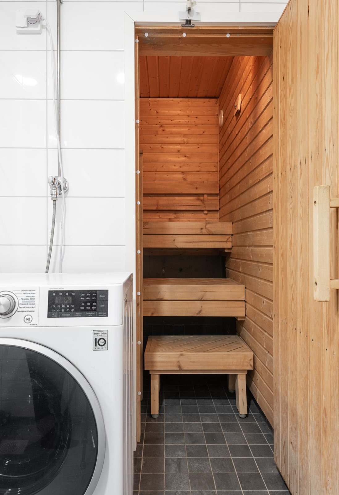 - Sauna, sähkökiuas, kylpyhuone, erillinen wc, suihku, suihkuseinä, peilikaappi, allaskaappi, pesukoneliitäntä kph, lattialämmitys sauna, kiinteät valaisimet.