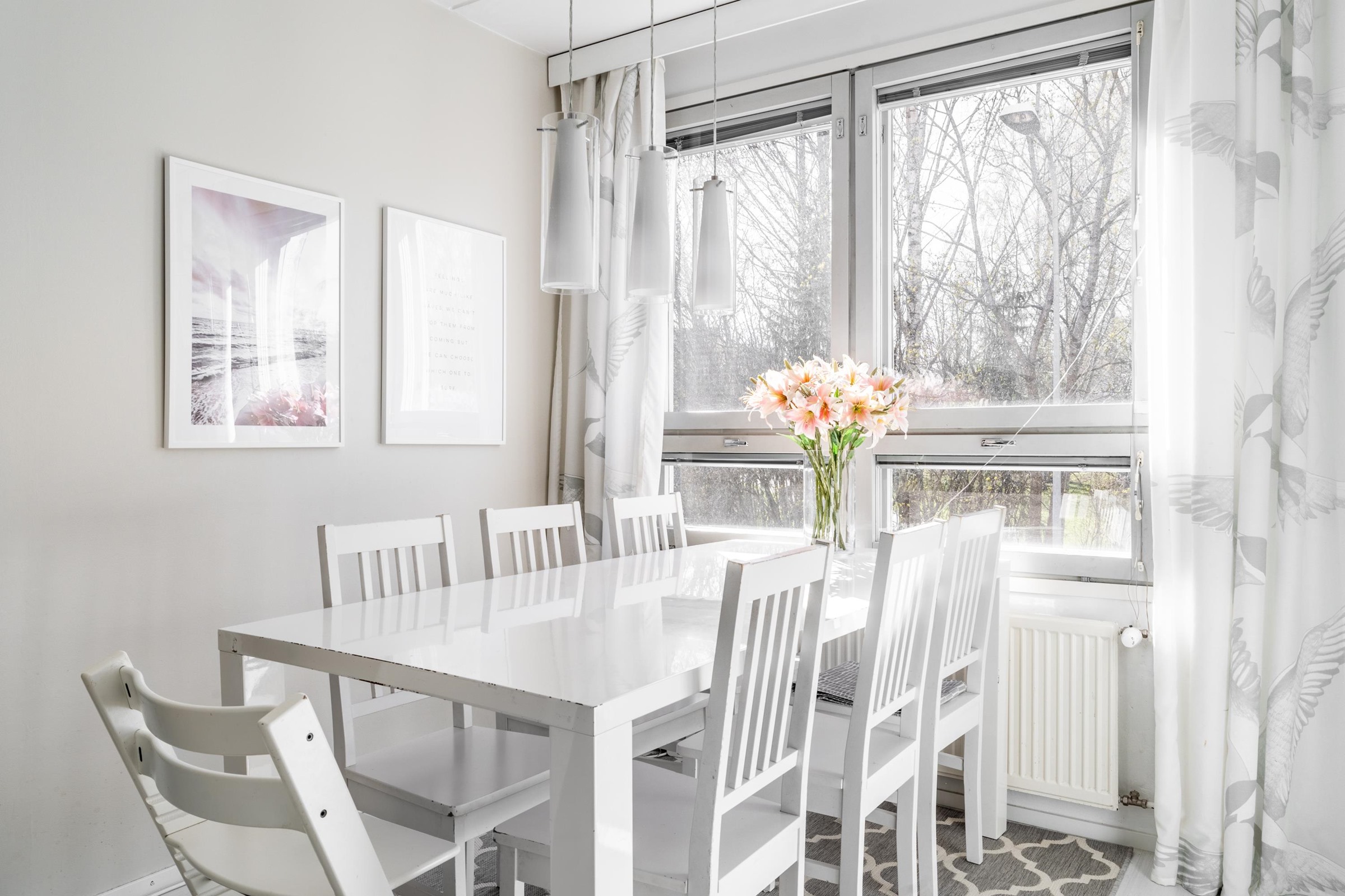 Loistavalla sijainnilla sijaitseva perheasunto. Valoisa ja avara pohjaratkaisu yhdessä kerroksessa lisää asumismukavuutta. Puistomaiset näkymät, ei toista asuinrakennusta vastapäätä. Helsingin keskustaan kätevästi junalla 15 min ja lentoasemalle suora junayhteys. Rauhallinen asuinalue, koulu ja päiväkoti sekä palvelut lähellä.