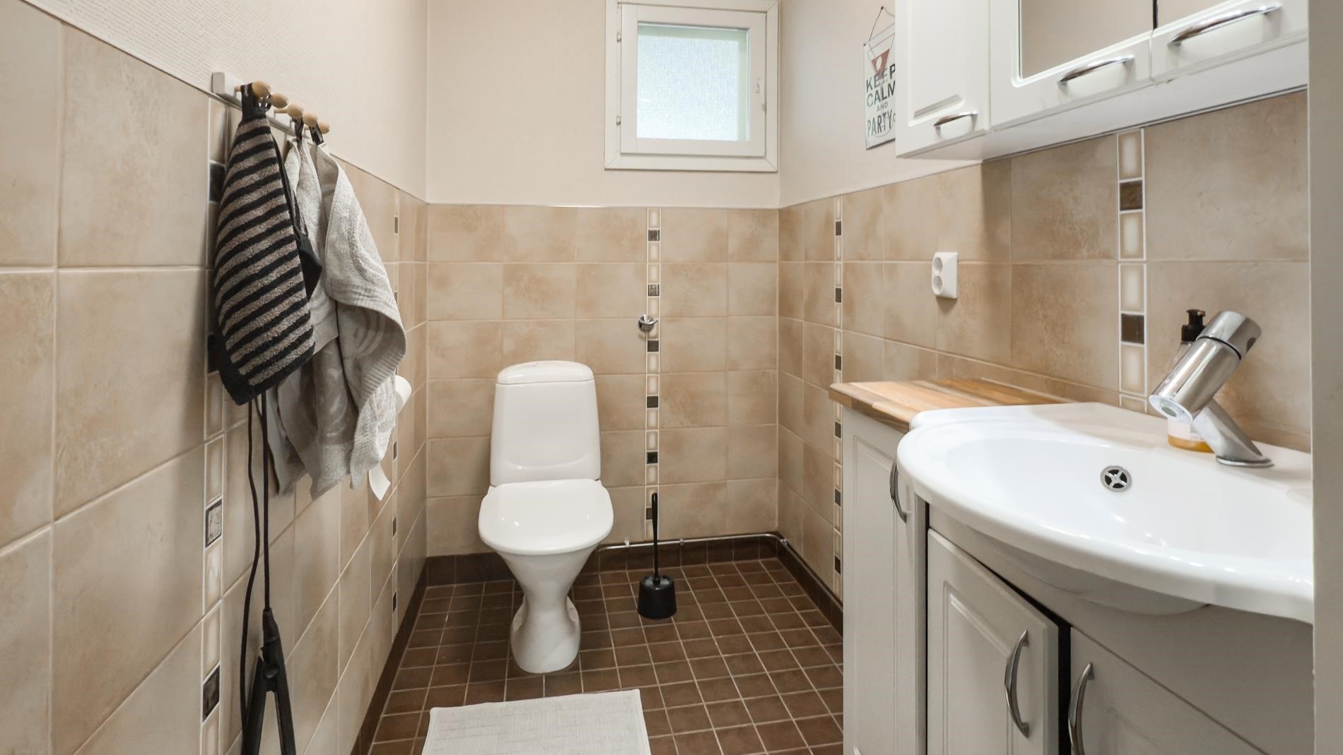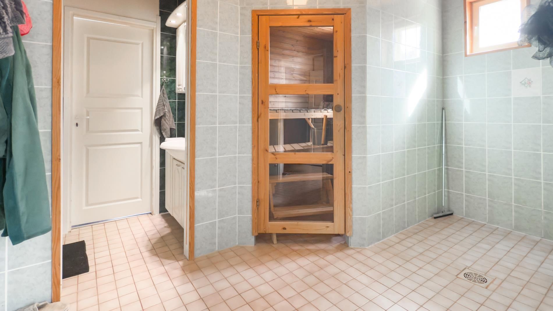 - Sauna, sähkökiuas, kylpyhuone, erillinen wc, suihku, peilikaappi, kaapit, allaskaappi, pesukoneliitäntä, lattialämmitys, kiinteät valaisimet.