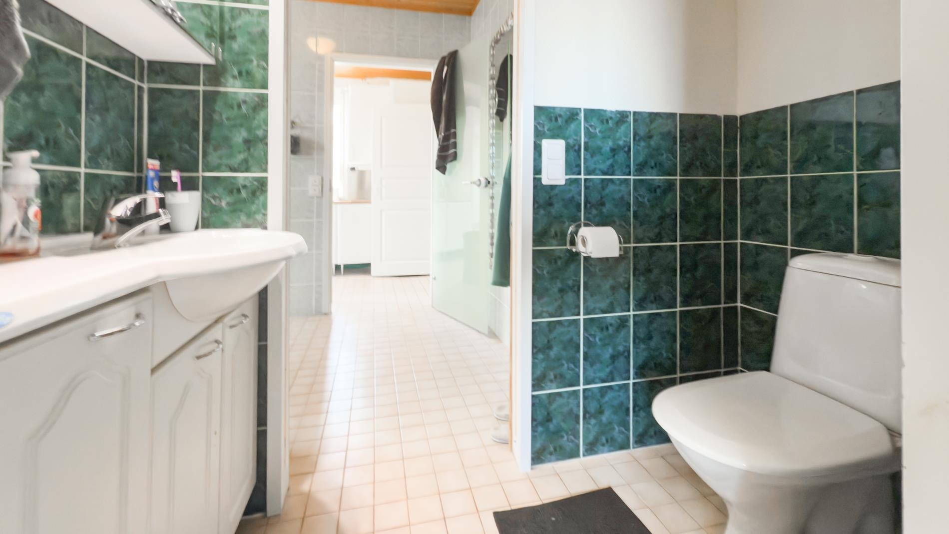 Talosta löytyy myös kaksi wc:tä ja hyvä kodinhoitohuone perhearjen pyörittämiseen. Miellyttävä lattialämmitys sähköllä, jonka lisäksi varaava takka/leivinuuni ja ilmalämpöpumppu. Talon yhteydessä myös hyvät varastotilat.