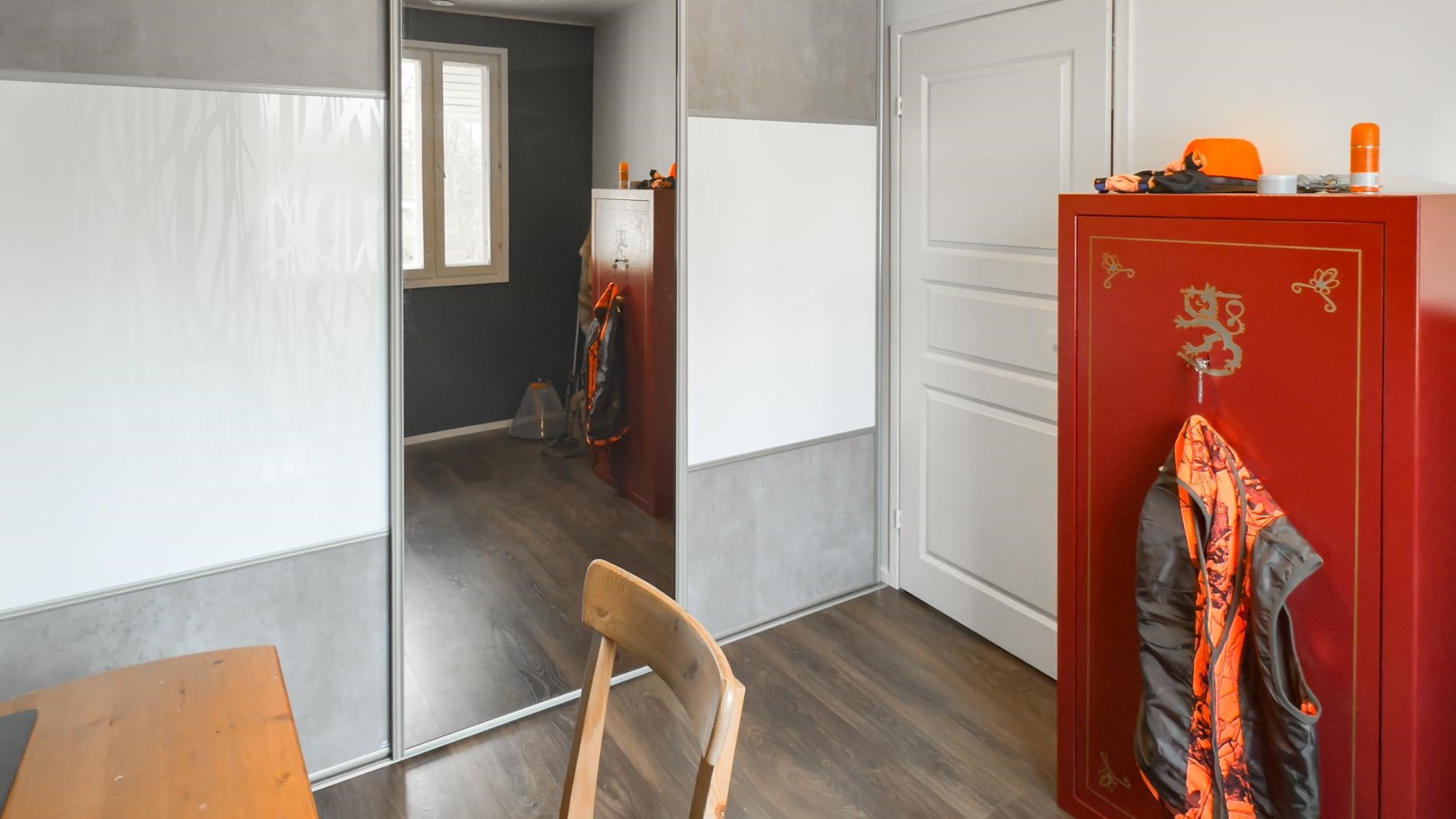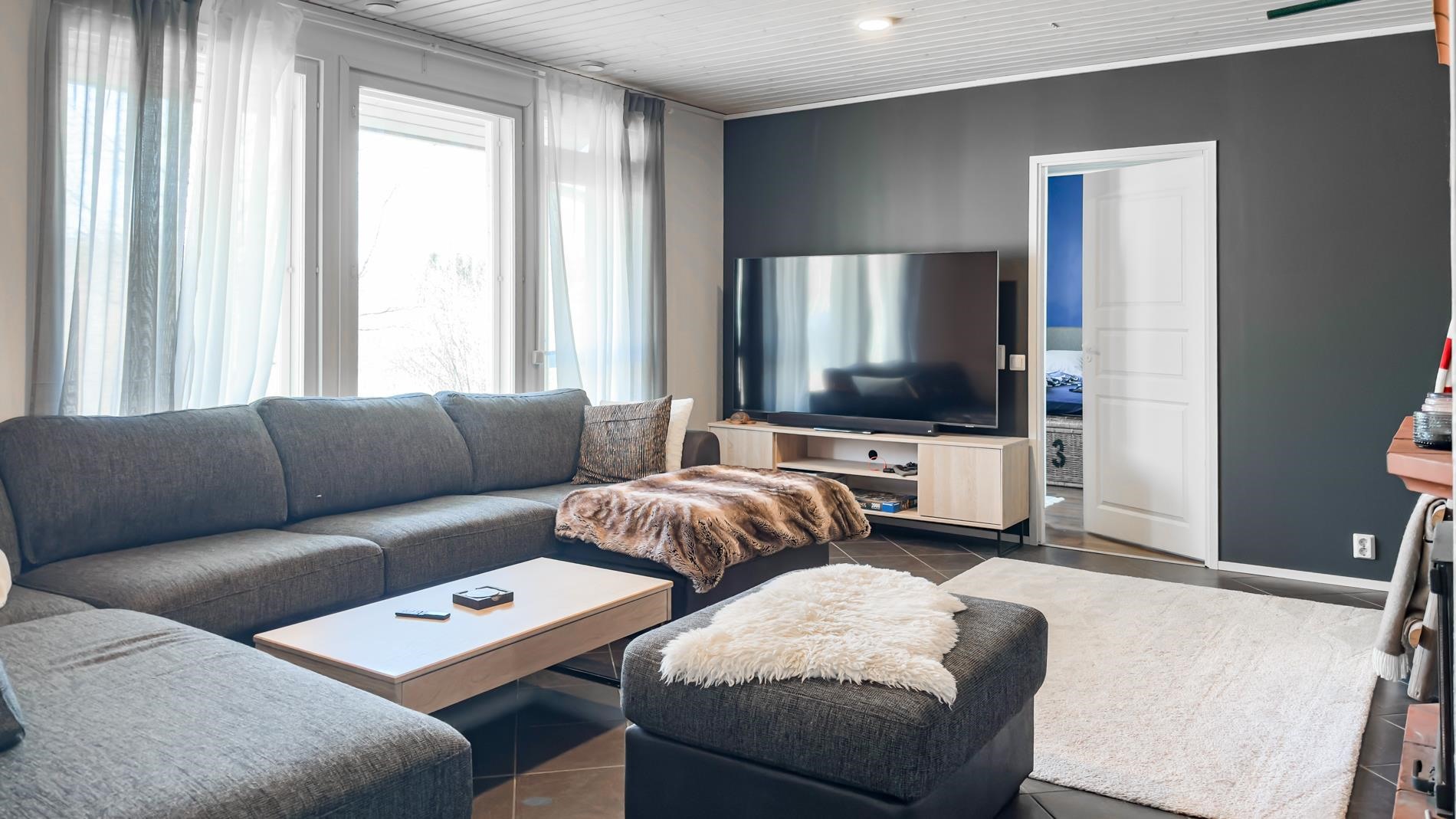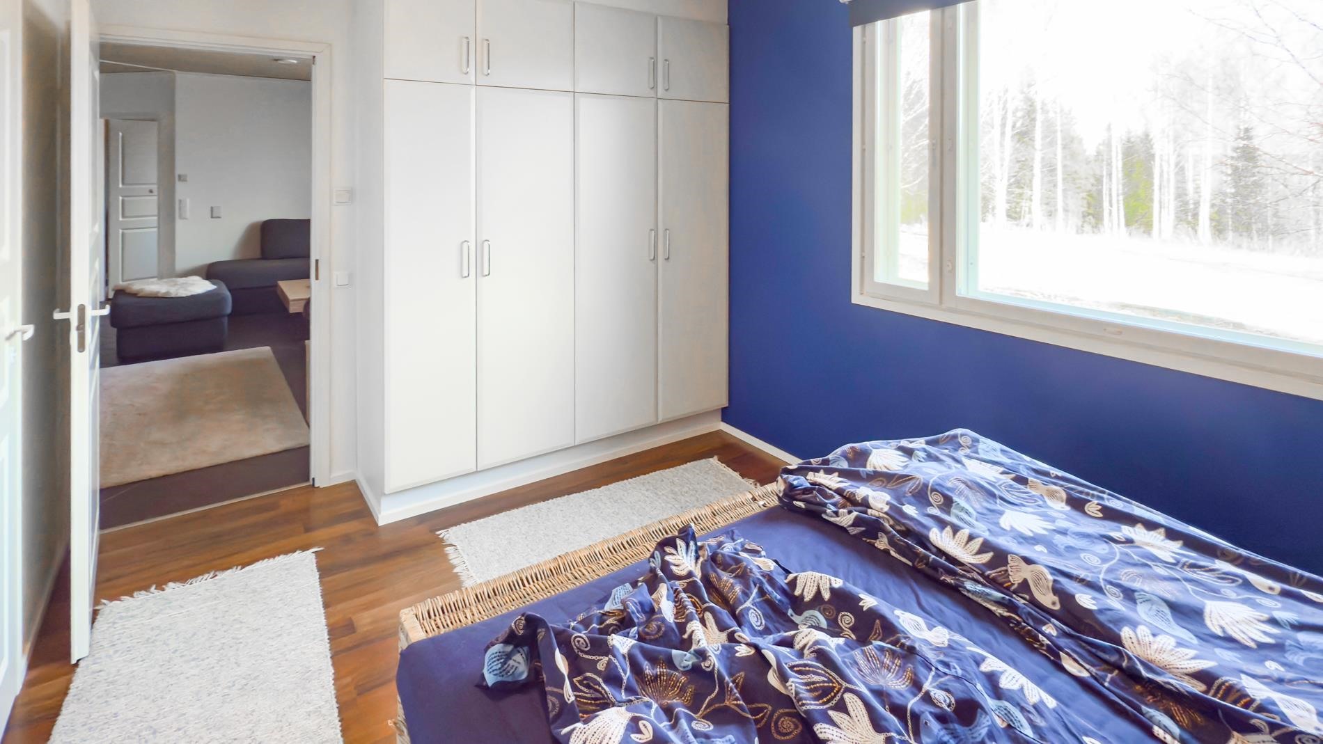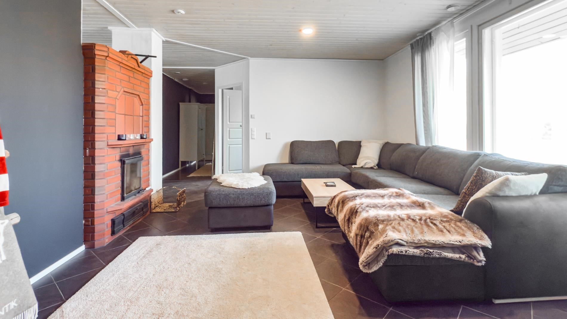 Keittiö: Laatta / maalattu. Olohuone: Laatta / maalattu. Makuuhuone 1: Laminaatti / maalattu. Makuuhuone 2: Laminaatti / maalattu. Makuuhuone 3: Laminaatti / maalattu. Kodinhoitohuone: Laatta / laatta. Sauna: Laatta / paneeli. Kylpyhuone: Laatta / laatta. Wc: Laatta / laatta.