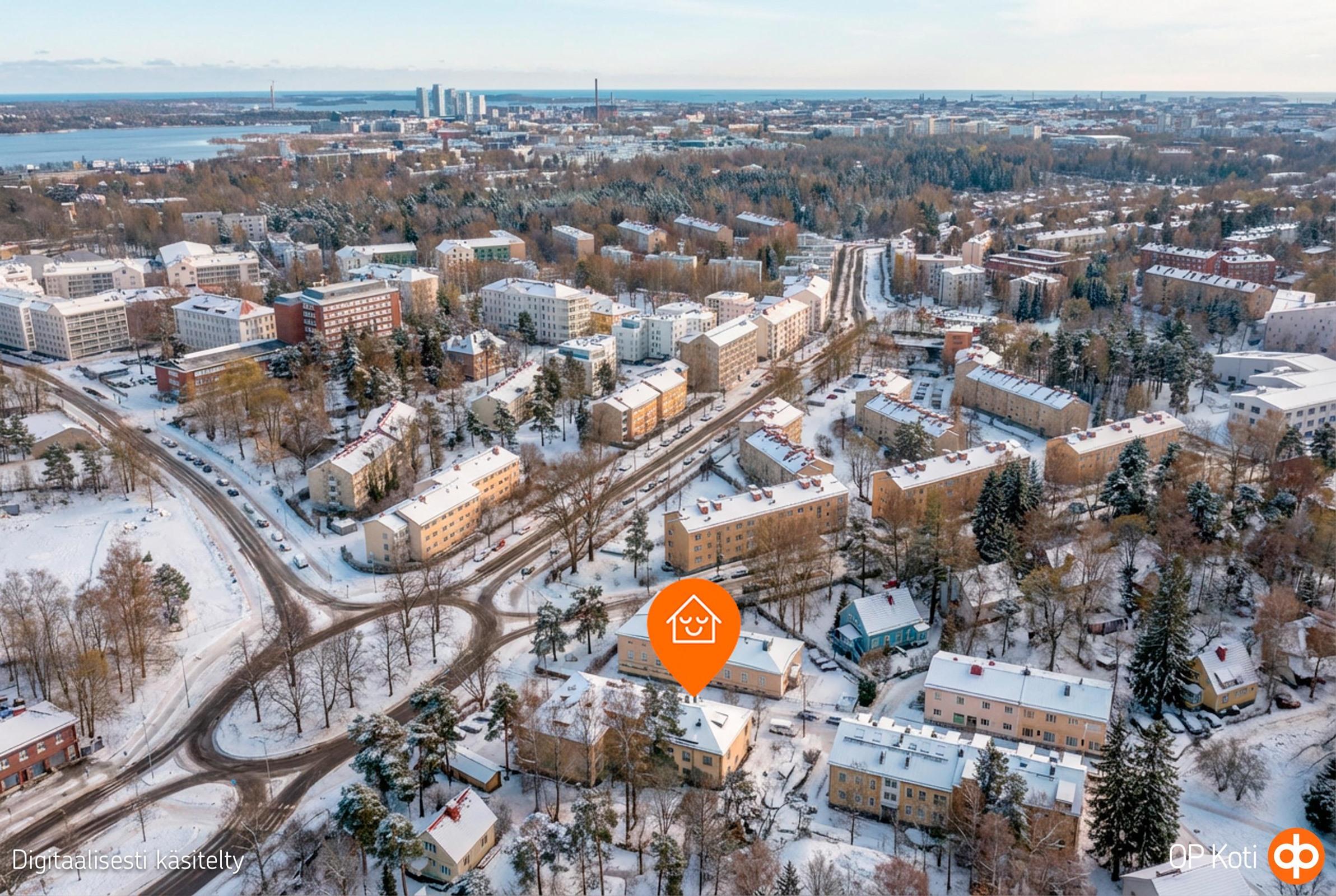 Tervetuloa ihastumaan tähän hurmaavaan kotiin, joka sijaitsee vuonna 1938 valmistuneessa pienkerrostalossa aivan Taivaskallion puiston kupeessa. Talon lämminhenkinen tunnelma, yhteisöllinen ilmapiiri ja viihtyisä piha tekevät tästä kodista aidosti erilaisen. Tunnelmallinen porraskäytävä johtaa sinut valoisaan ja pohjaratkaisultaan toimivaan kotiin. Kauniit lautalattiat, harmoninen värimaailma ja vuonna 2019 remontoitu keittiö yhdistävät sopivassa suhteessa perinteitä ja nykyaikaa. Kahdeksan huoneiston yhtiössä putkisaneeraus on tehty vuonna 2005 ja sähköautojen lataus on mahdollista. Yhdessä hoidetaan mutkattomasti niin kesän pihahommat kuin talven lumityöt. Erinomaiset joukkoliikenneyhteydet kävelyetäisyyksien päässä. Lähimmälle bussipysäkille vain muutama sata metriä ja juna-asemalle kävelet reilussa 10 minuutissa. Taivaskallionpuiston lisäksi ulottuvillasi ovat Vanhankaupunginkoski, Lammassaaren pitkospuut ja upeat ulkoilumaastot sekä Kumpulan maauimala, jossa vietät lämpimän kesäpäivän auringosta ja uinnista nauttien. Tässä kodissa on jotain erityistä - lämpöä, tarinaa ja aikaa kestävää tunnelmaa. Ole minuun yhteydessä ja lähdetään ensitreffeille uuden kotisi kanssa. Tiina Korpinen, tiina.korpinen@op.fi tai 0407755277.