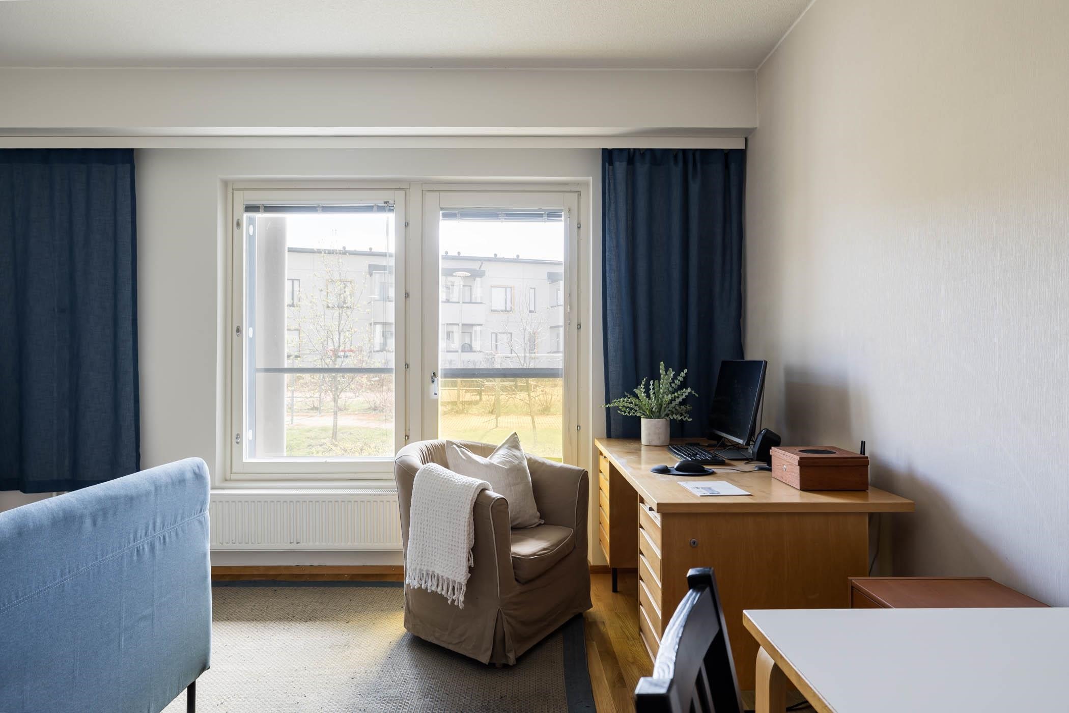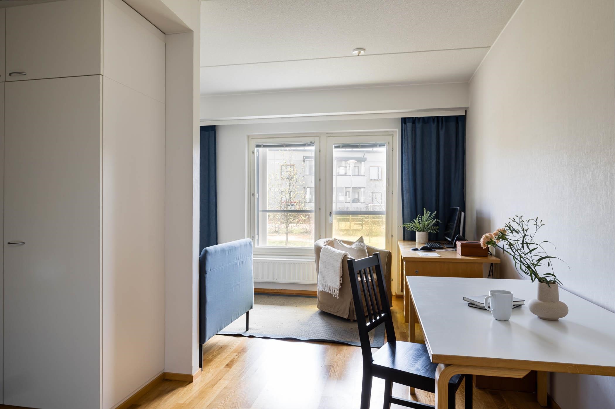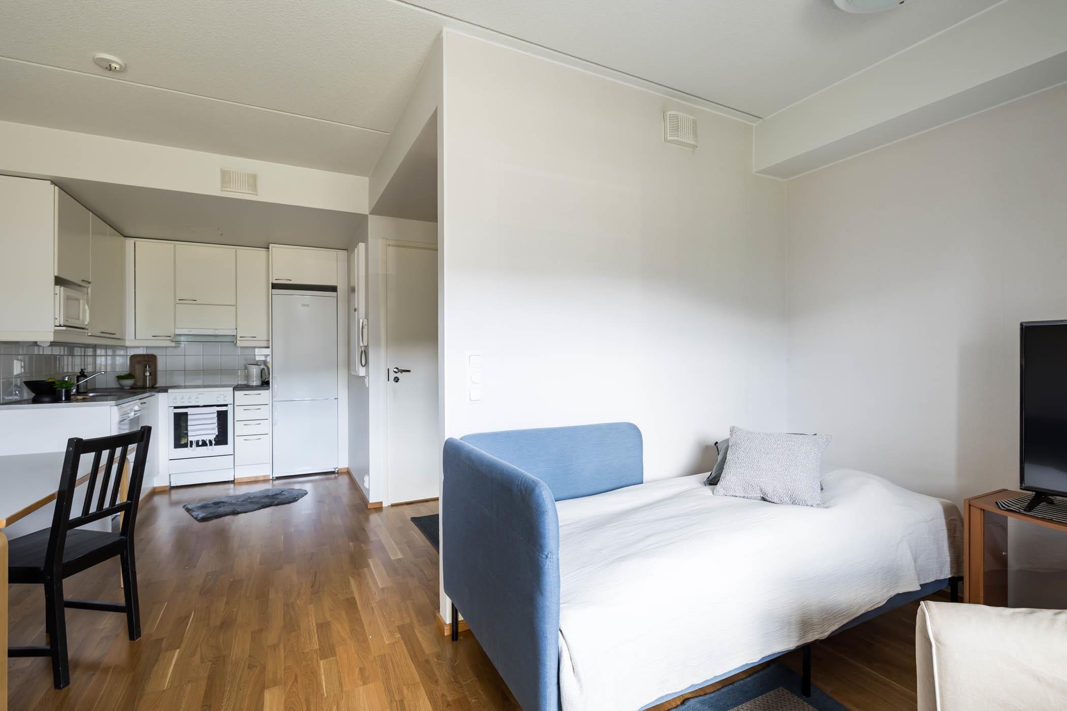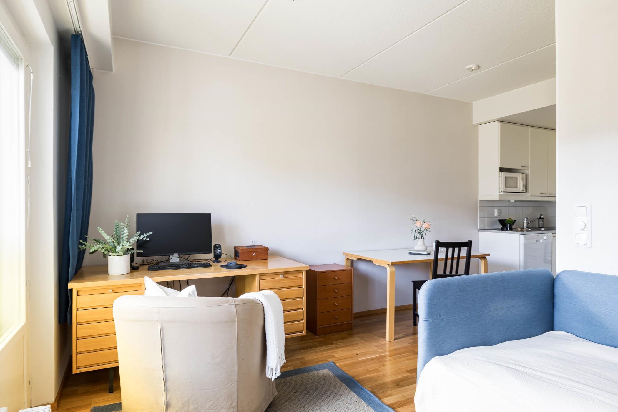 Asunnossa on 29 m², joka sisältää tilavan huoneen, näppärän keittiön ja ranskalaisen parvekkeen, joka tuo ripauksen luksusta arkeen. Säilytystilat löytyvät kellarista, joten ylimääräinen tavara on helppo säilöä pois silmistä. Asumismukavuutta lisää koneellinen tulo-/poistoilmanvaihto, joka pitää sisäilman raikkaana vuoden ympäri.