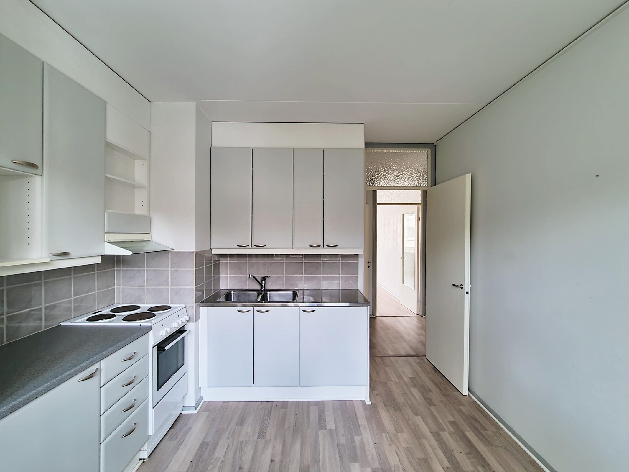 Asunnossa on tilava olohuone, keittiö, kaksi makuuhuonetta ja parveke etelään. Tyylikäs puukuvioinen laminaattilattia ja vaaleat seinät luovat modernin ilmeen. Keittiössä on runsaasti kaappitilaa ja jääkaappipakastin, sekä tilaa ruokapöydälle. Makuuhuoneissa on vaatekaapit ja vaatehuone, mikä tekee arjesta sujuvaa.
