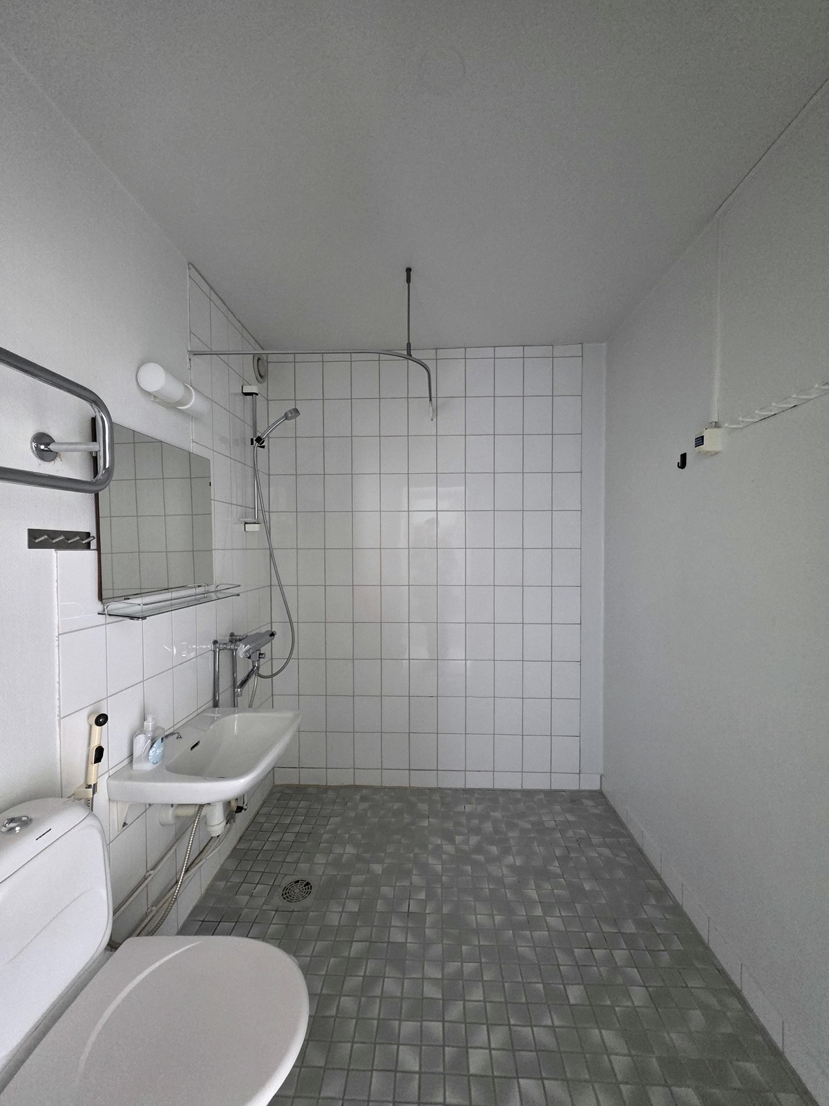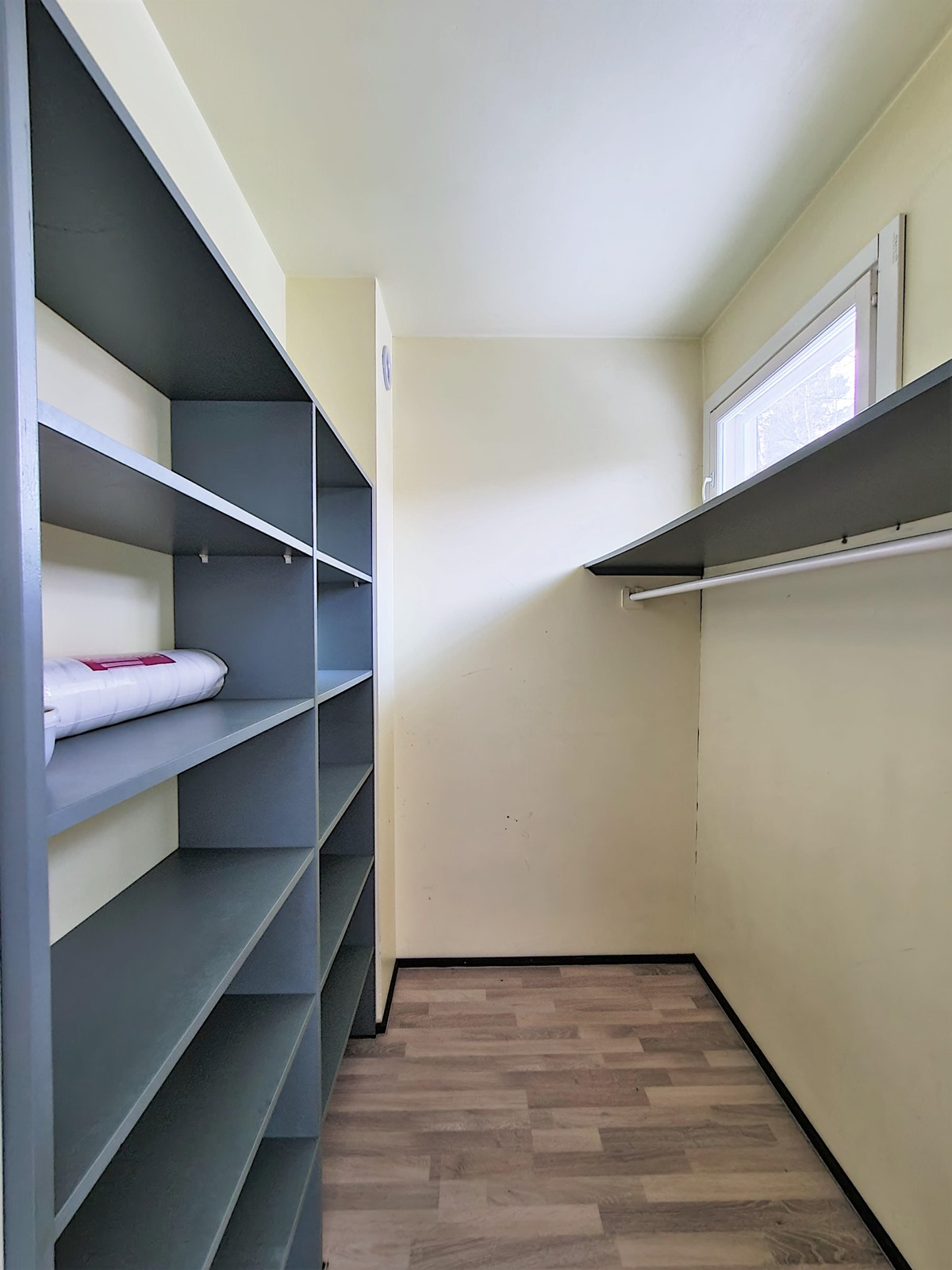 - lattia: tyylikäs harmaa puukuvioinen laminaatti. seinät: maalattu.