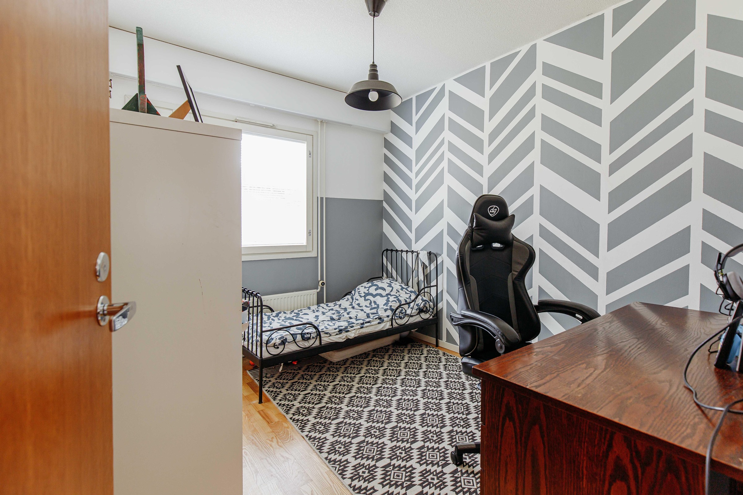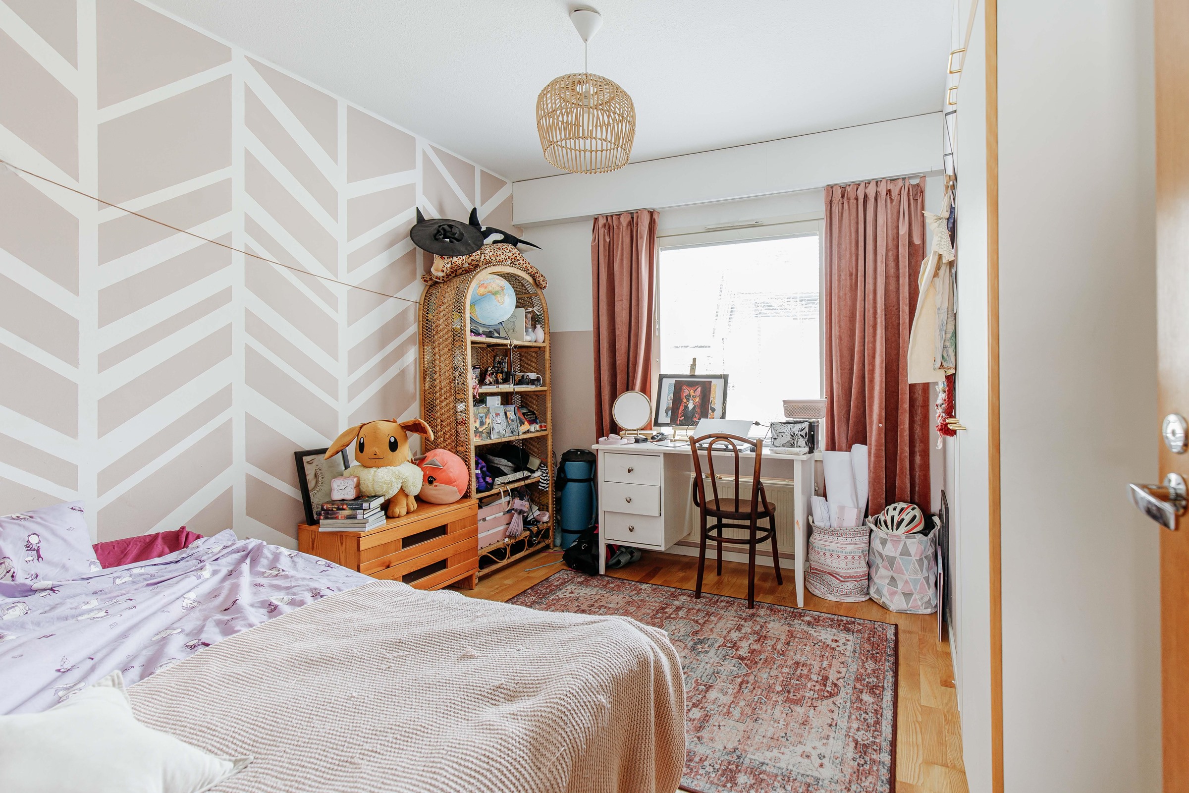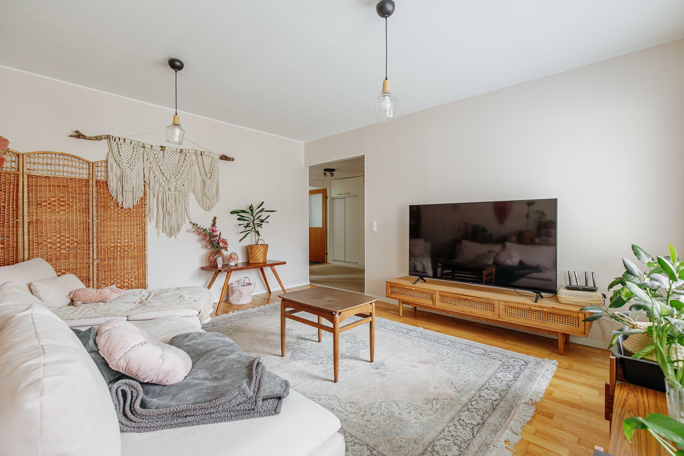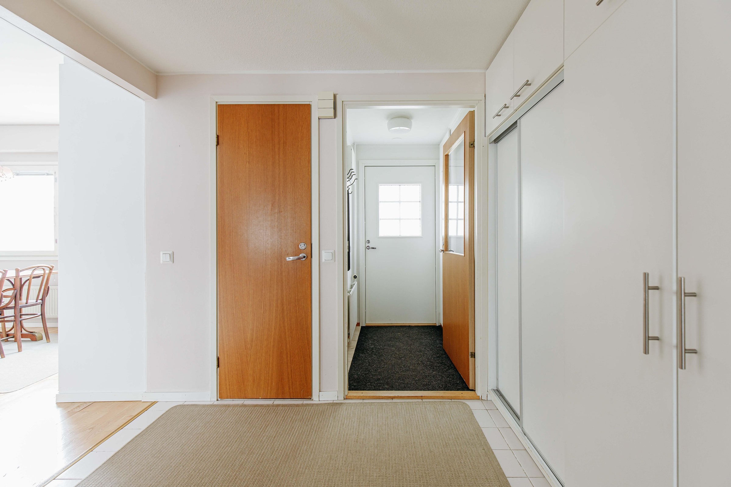 Neliöidensä ansiosta asunto sopii erinomaisesti myös perheelle. Koti on siistissä kunnossa, ja sen pintoja on jonkin verran päivitetty vuosien varrella. Keittiö on valoisa ja sisustettu nykyaikaisin sävyin. Asunnossa on erillinen kodinhoitohuone, jota tuo käytännöllisyyttä ja helpotusta arkeen. Takapihalla on suojainen katettu terassi, joka tarjoaa mukavasti oleskelutilaa kesäiltoihin.