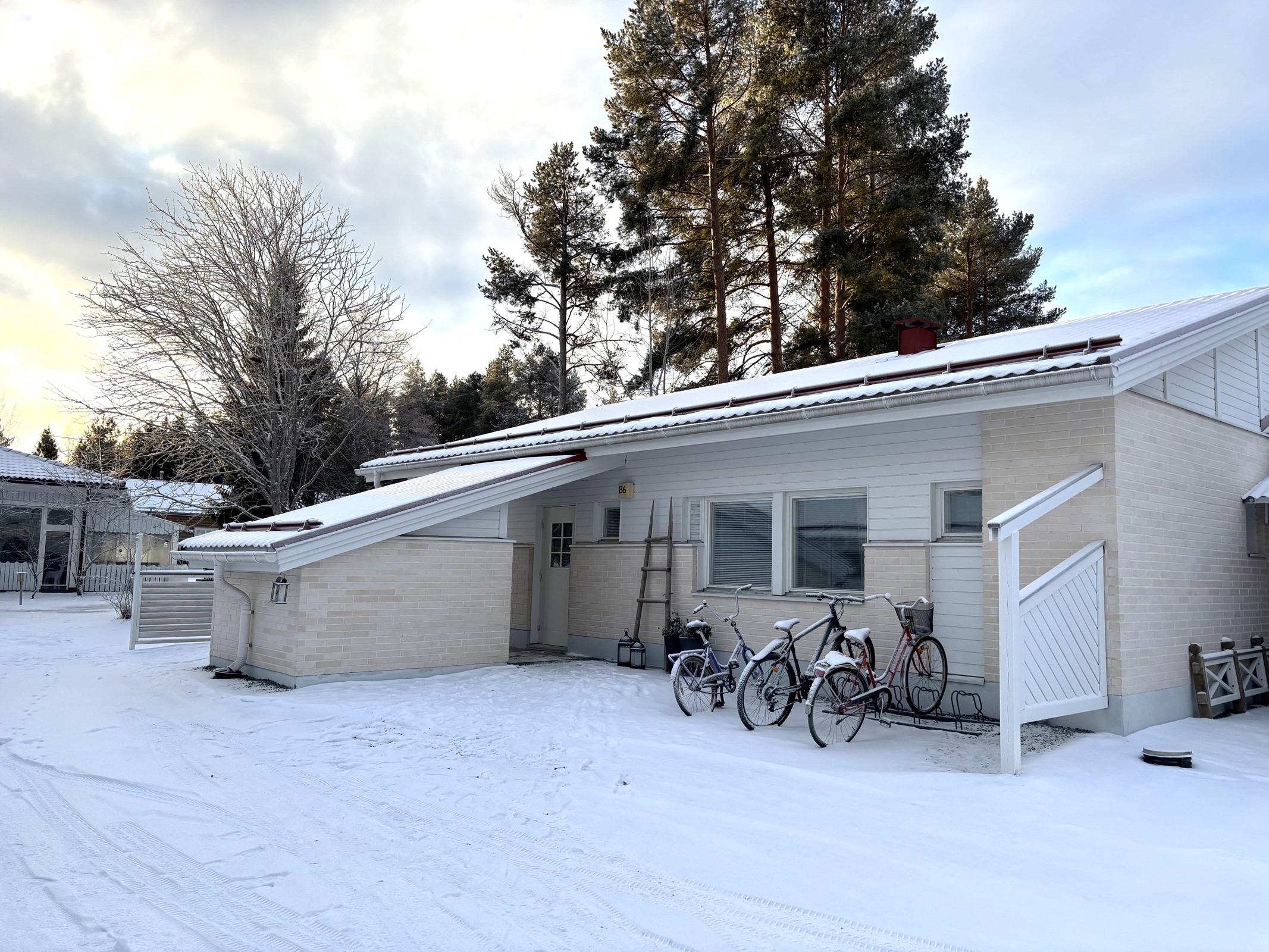 Autokatospaikka sisältyy hintaan. Sisäänkäynnin yhteydessä on ulkovarasto, mikä tarjoaa huoneistolle lisäsäilytystilaa.