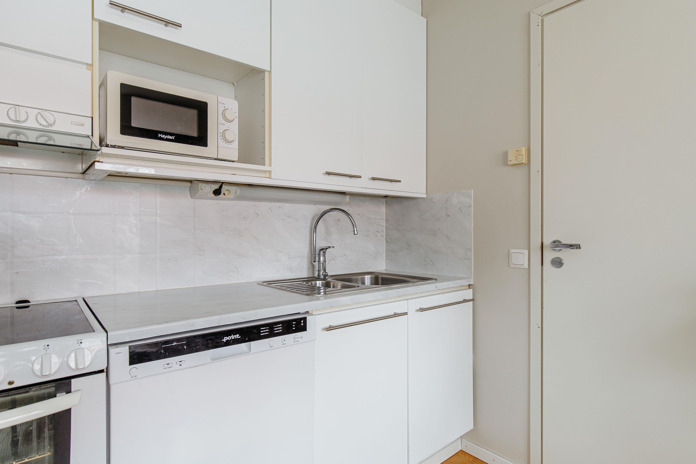 - Jääkaappi, pakastekaappi, lattialiesi, astianpesukone, kaapistot, kiinteät valaisimet.