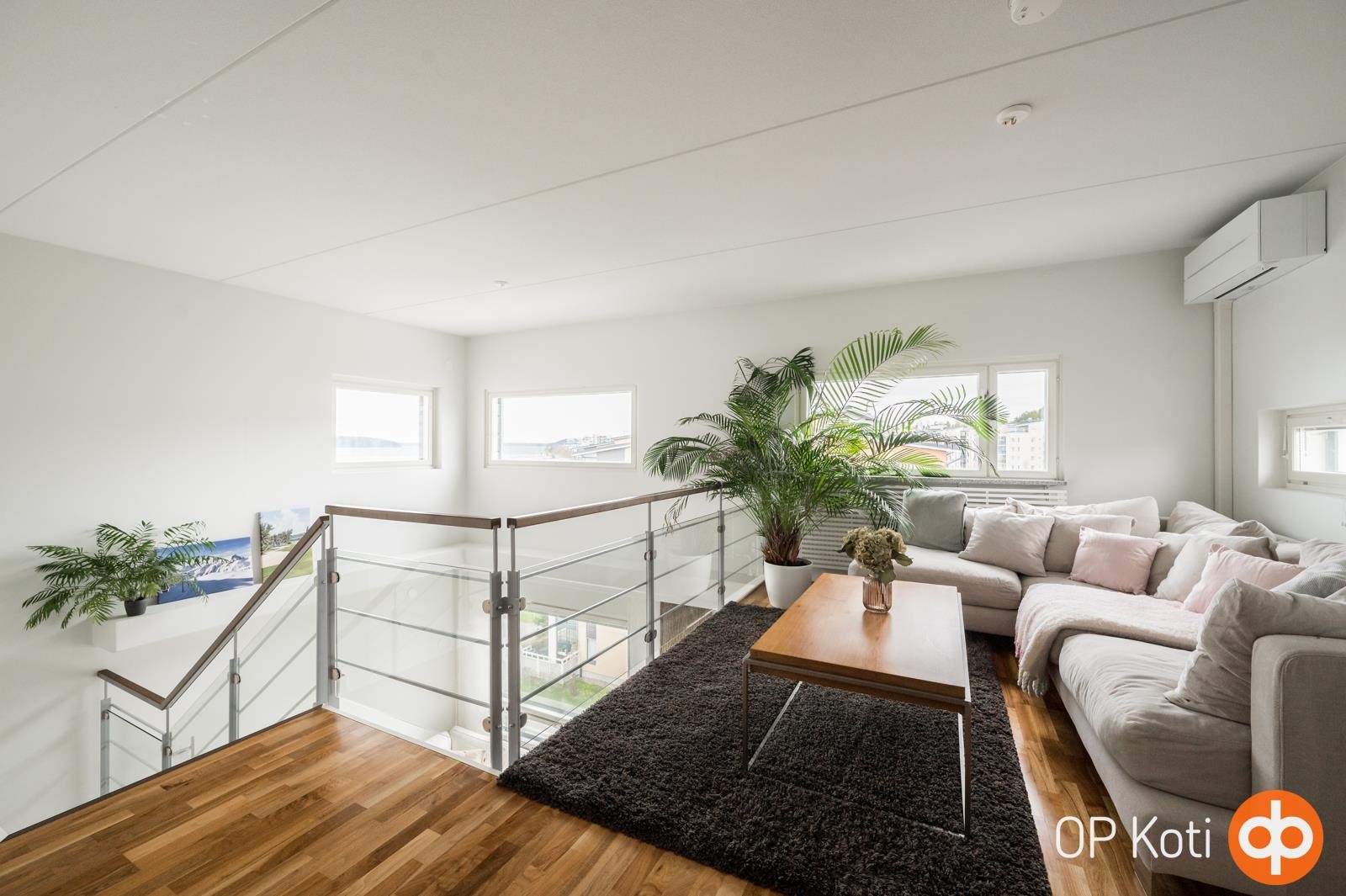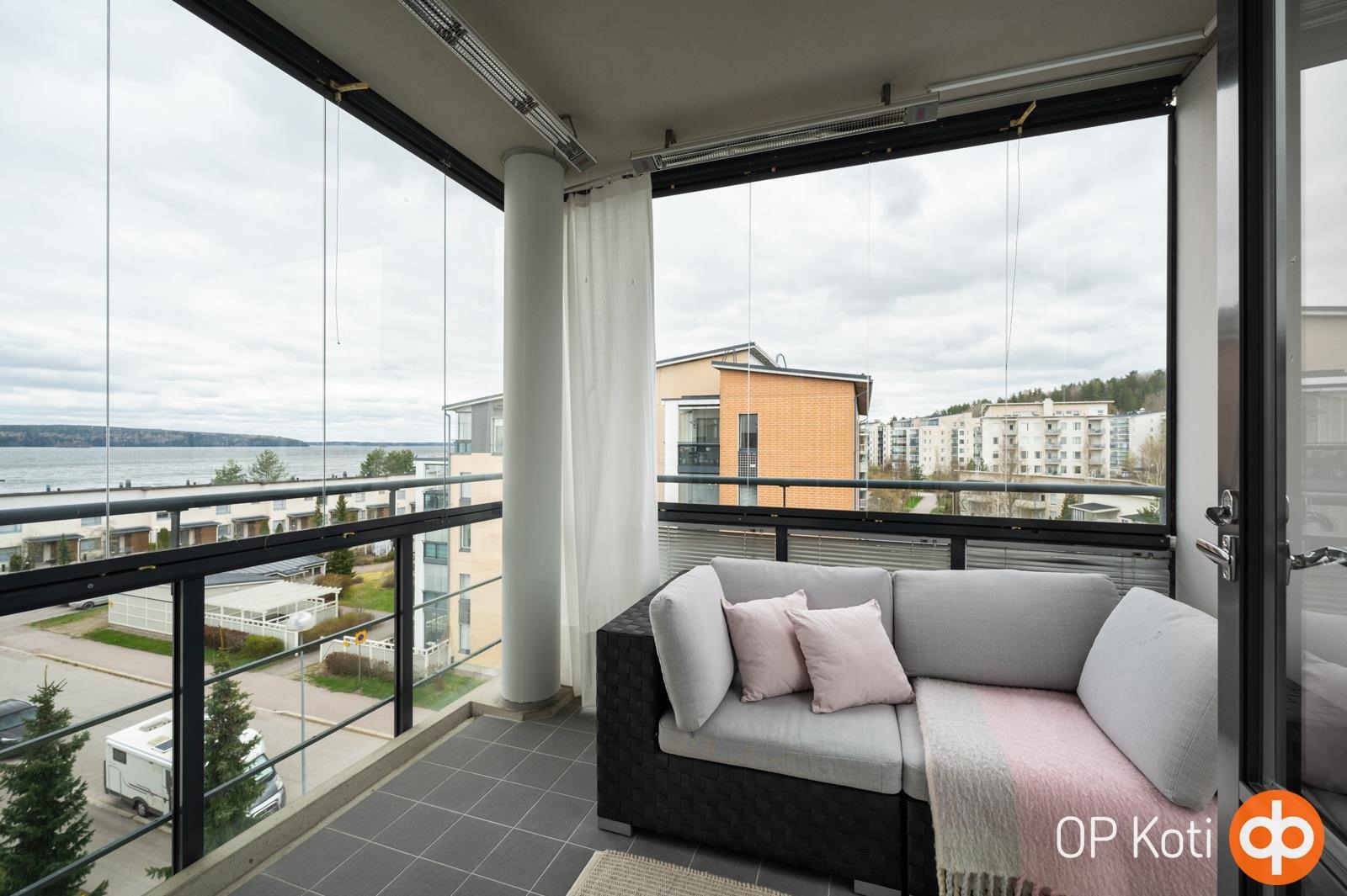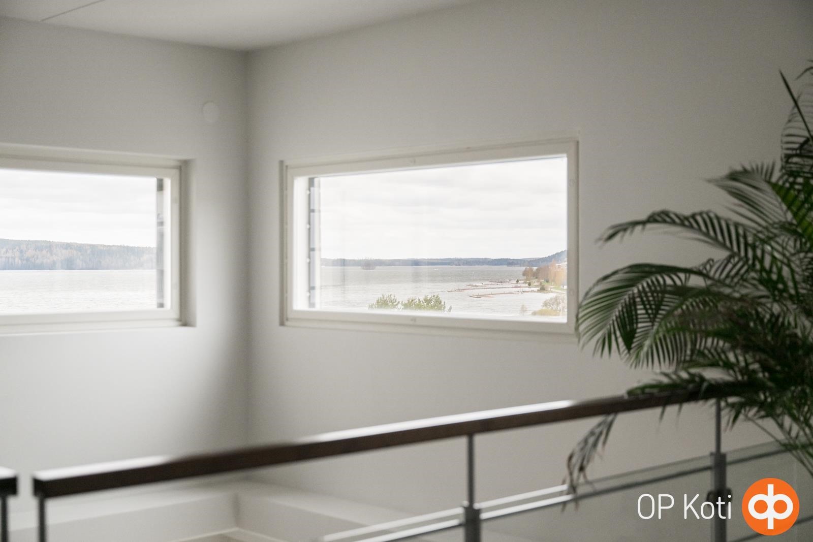 Asunnossa on kolme huonetta, keittiö, kylpyhuone/wc sekä vaikuttava parvi, jossa sijaitsee saunaosasto sekä tunnelmallinen oleskelutila, täydellinen paikka rentoutumiseen tai edustamiseen. Suuret ikkunat ja parvelta avautuvat näkymät Vesijärvelle tekevät tästä kodista erityisen.