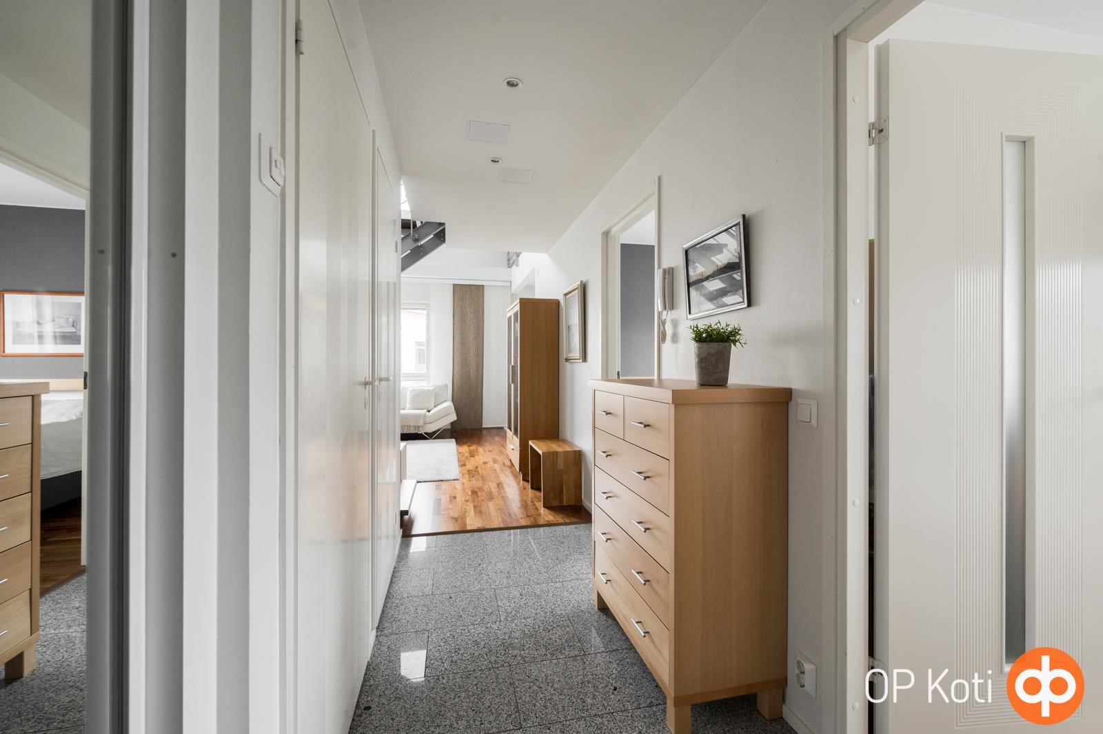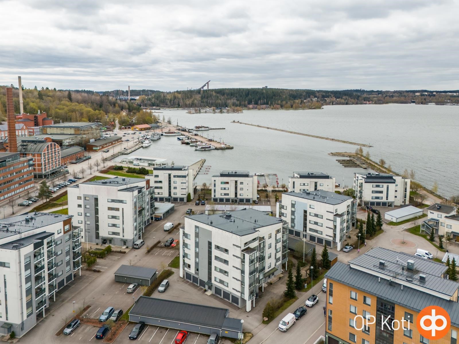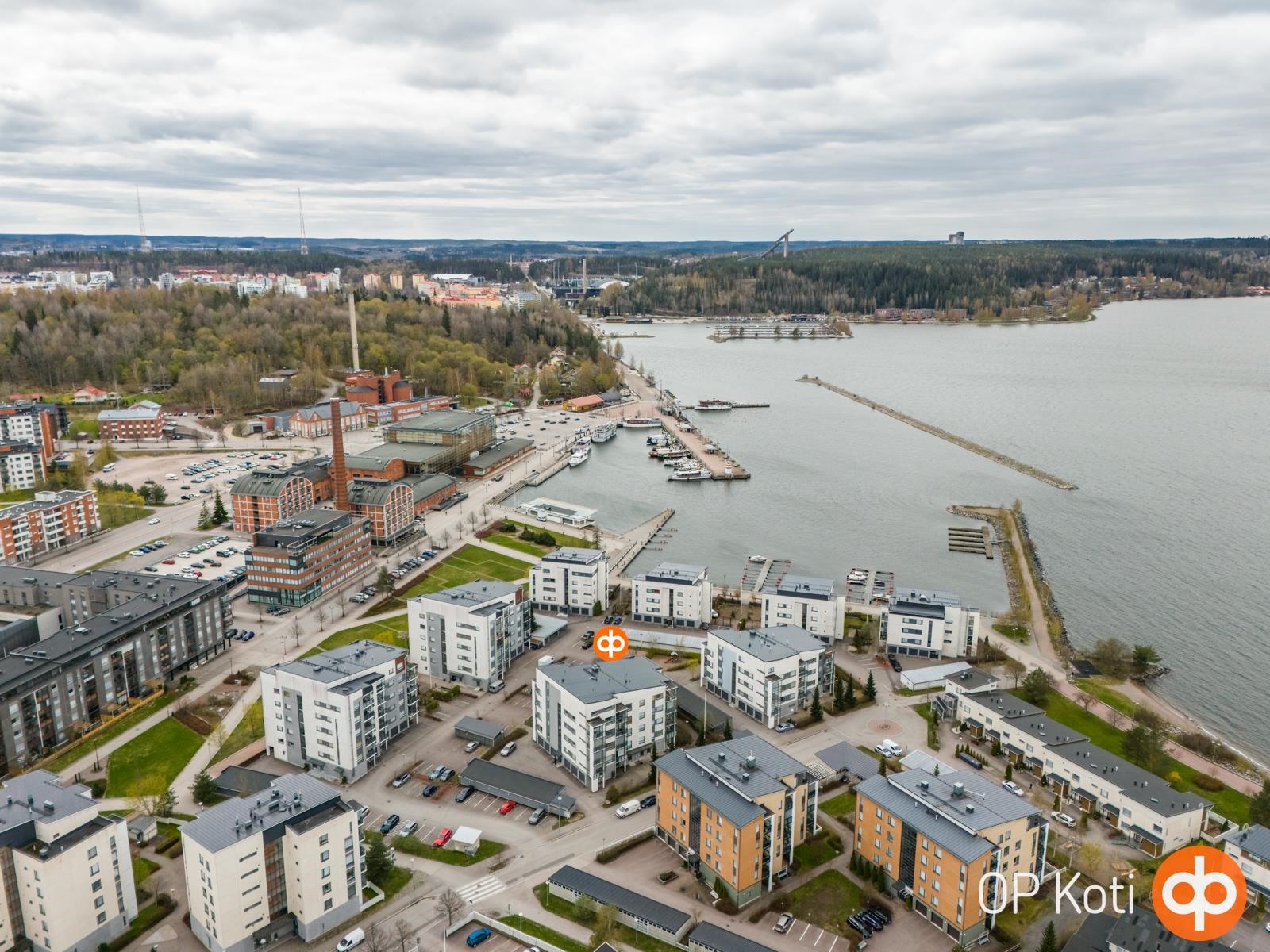 Asunnossa on kolme huonetta, keittiö, kylpyhuone/wc sekä vaikuttava parvi, jossa sijaitsee saunaosasto sekä tunnelmallinen oleskelutila, täydellinen paikka rentoutumiseen tai edustamiseen. Suuret ikkunat ja parvelta avautuvat näkymät Vesijärvelle tekevät tästä kodista erityisen.