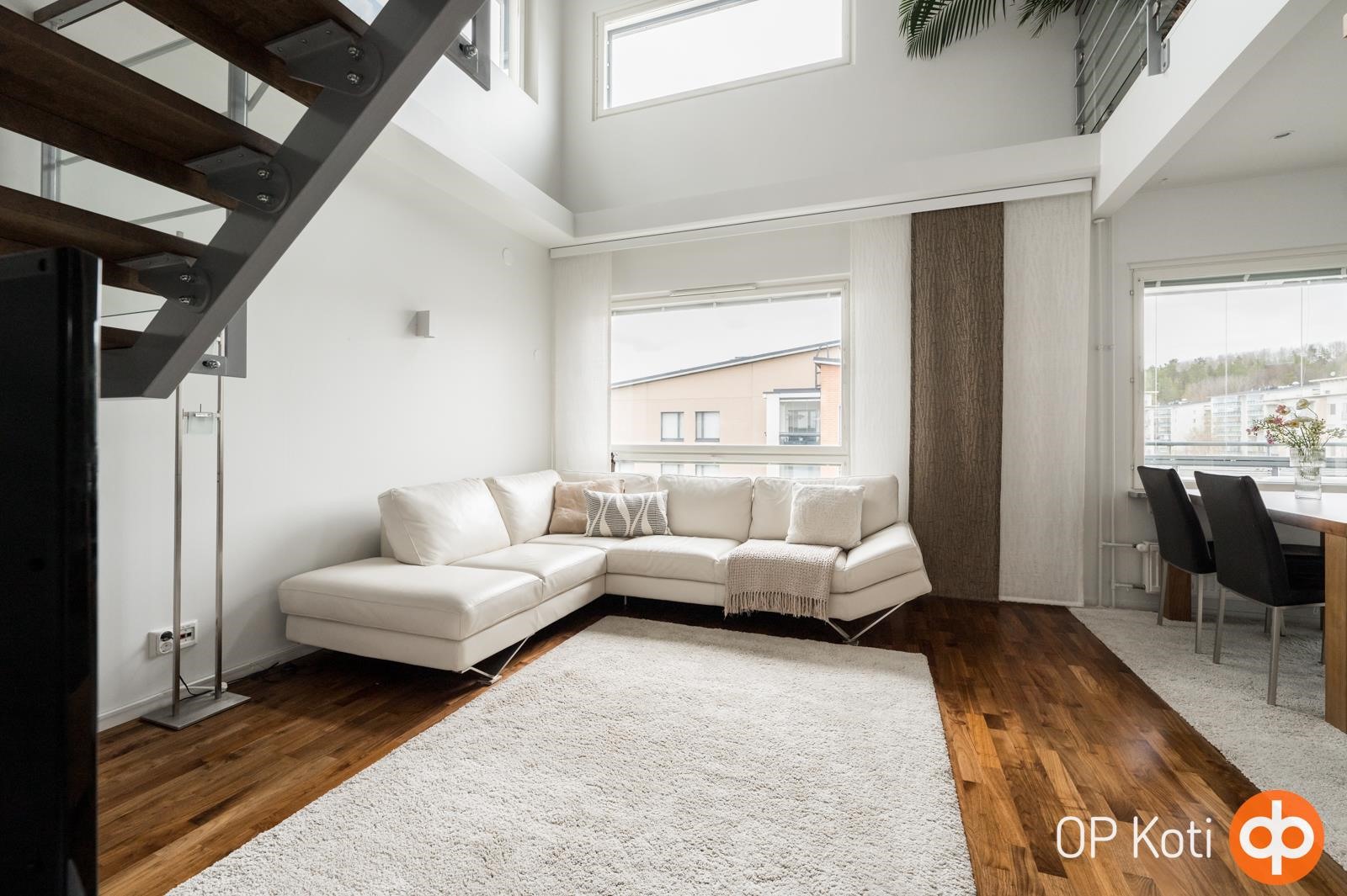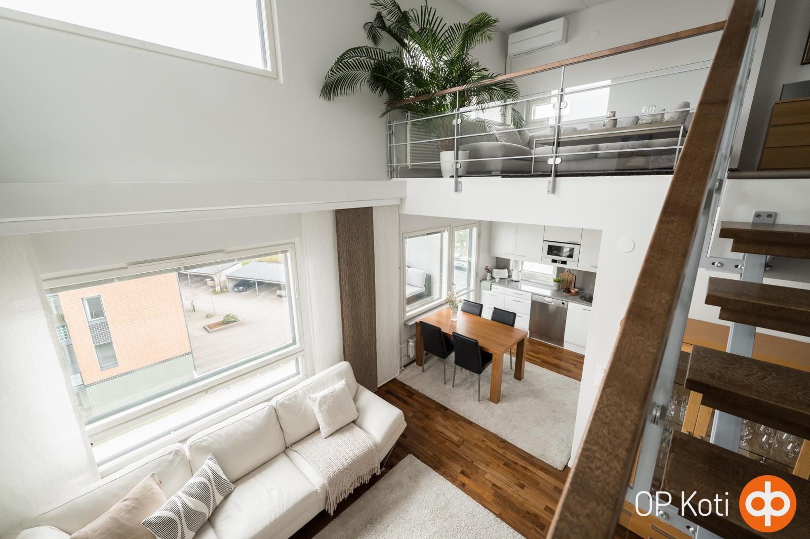 Korkea huonekorkeus, modernit pinnat ja laadukkaat materiaalivalinnat yhdistyvät harmonisesti tässä uniikissa kokonaisuudessa. Tilat sopivat mainiosti niin perheille kuin edustustilaksi, tule ja ihastu paikan päällä!