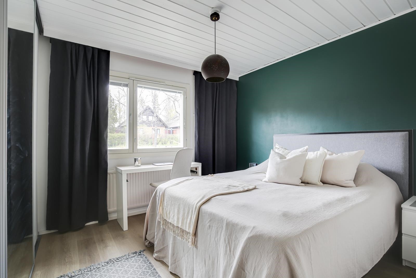 Keittiö: Vinyylilankku, seinät maalattu. Olohuone: Vinyylilankku, seinät maalattu. Makuuhuone 1: Vinyylilankku, seinät maalattu. Makuuhuone 2: Vinyylilankku, seinät maalattu. Makuuhuone 3: Vinyylilankku, seinät maalattu. Kodinhoitohuone: Laattalattia, seinät maalattu. Sauna: Laattalattia, seinät paneloitu. Kylpyhuone: Laattalattia, seinät laatoitettu. Eteinen: Vinyylilankku, seinät maalattu. Wc: Laattalattia, seinät laatoitettu. Tuulikaappi: Laattalattia, seinät maalattu.