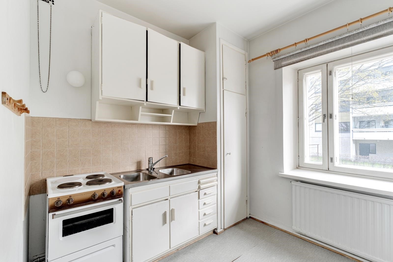 - Jenkkikaappi, lattialiesi, kaapistot, kiinteät valaisimet. Keittiössä alkuperäiset täyspuiset kaapit