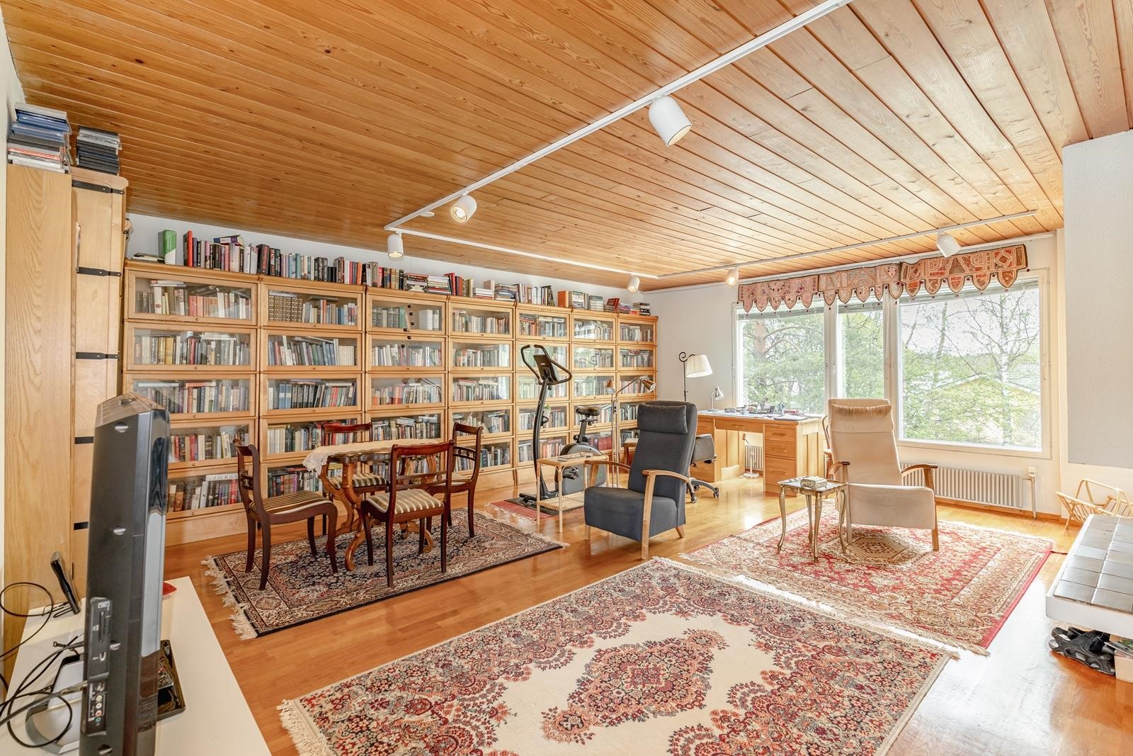 - 260 m2Pinta-alat eivät ilmene rakennuspiirustuksista. Asuintiloihin luetaan eteinen, keittiö, ruokailutila, olohuone, makuuhuoneet, kodinhoitohuone, pesuhuoneet, sauna, takkahuone ja wc:t.