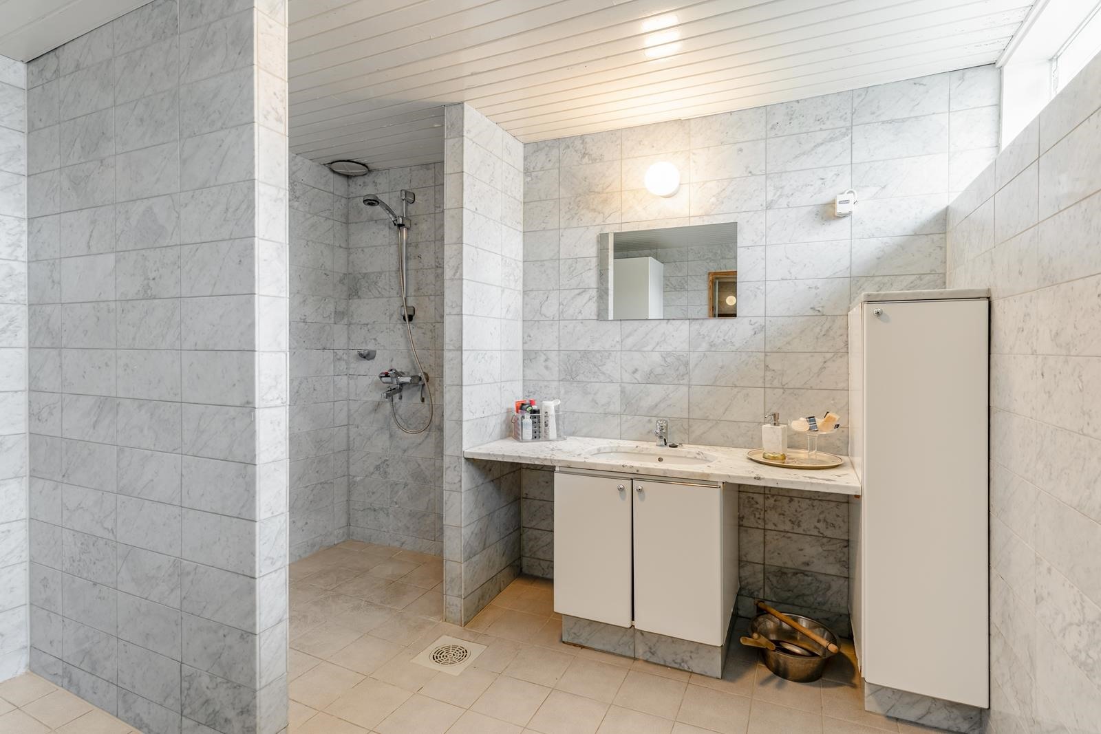 - Sauna, sähkökiuas, kylpyhuone, erillinen wc 3 kpl, suihku, suihkuseinä, peilit, peilikaappi, kaapit, allaskaappi, pesukoneliitäntä, lattialämmitys, kiinteät valaisimet.