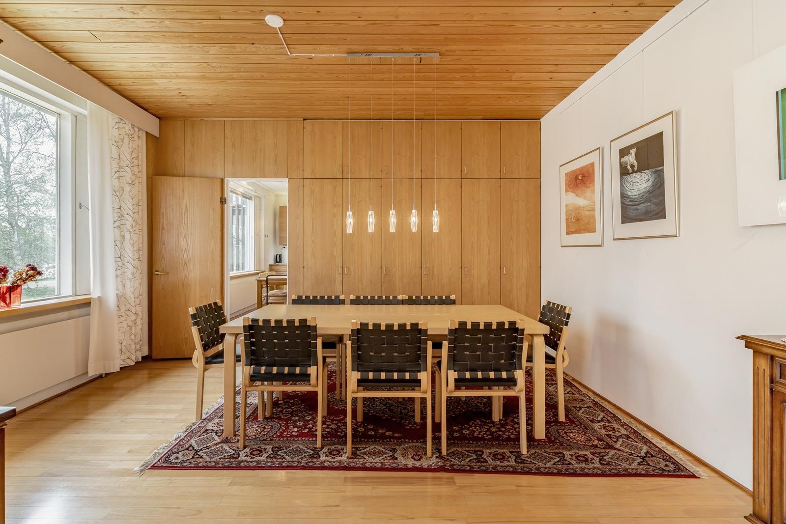 Tervetuloa tutustumaan Villa Sylviaan, arkkitehti Veijo Kerolan suunnittelemaan omakotitaloon, joka tarjoaa ainutlaatuisen tilaisuuden asua Oulujoen läheisyydessä. Vuonna 1966 rakennettu kaksikerroksinen koti hurmaa arkkitehtuurillaan, jossa perinteinen valkoinen väri korostaa talon modernistista tyyliä ja tuo esiin sen selkeät linjat sekä tilavat, valoisat huoneet.