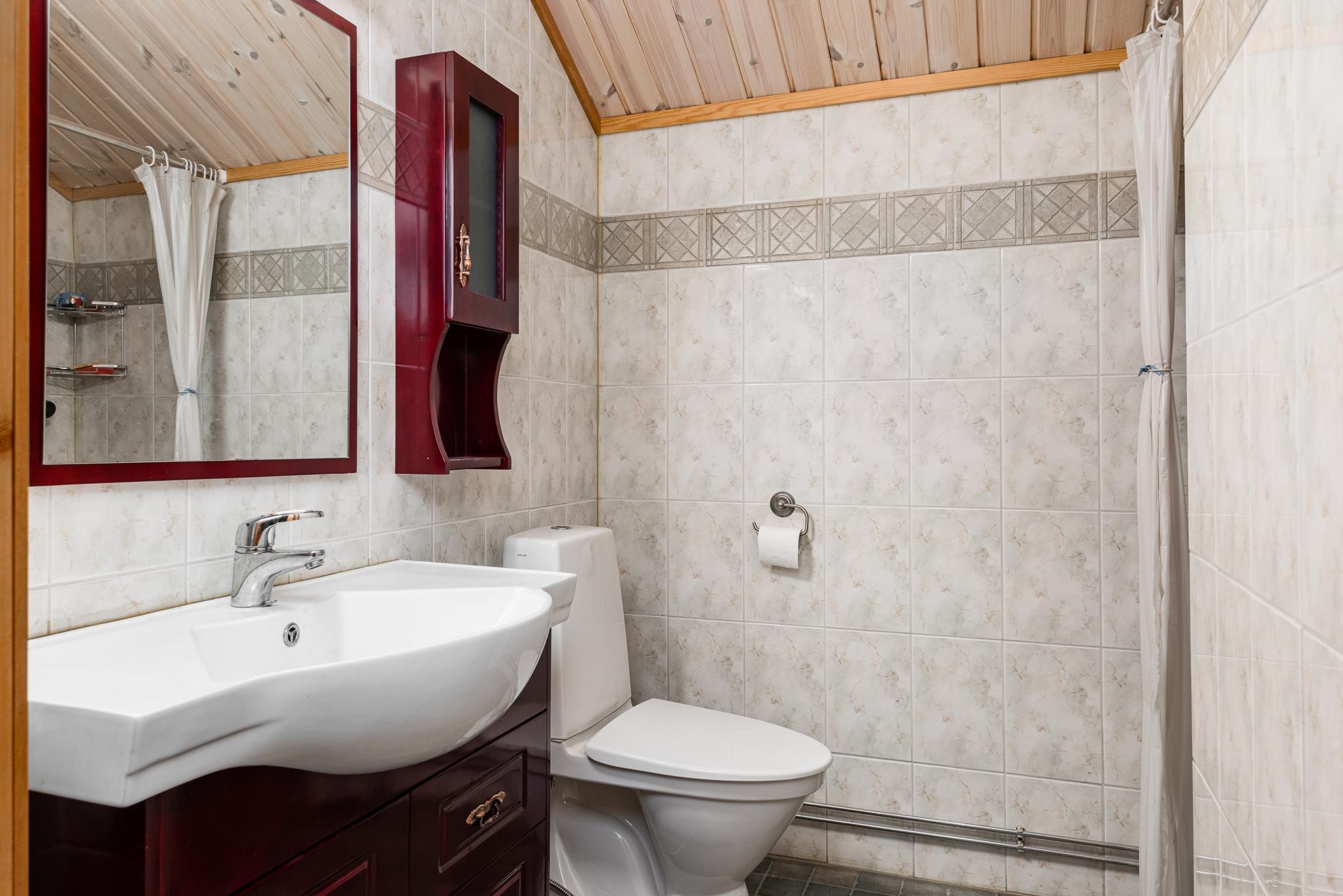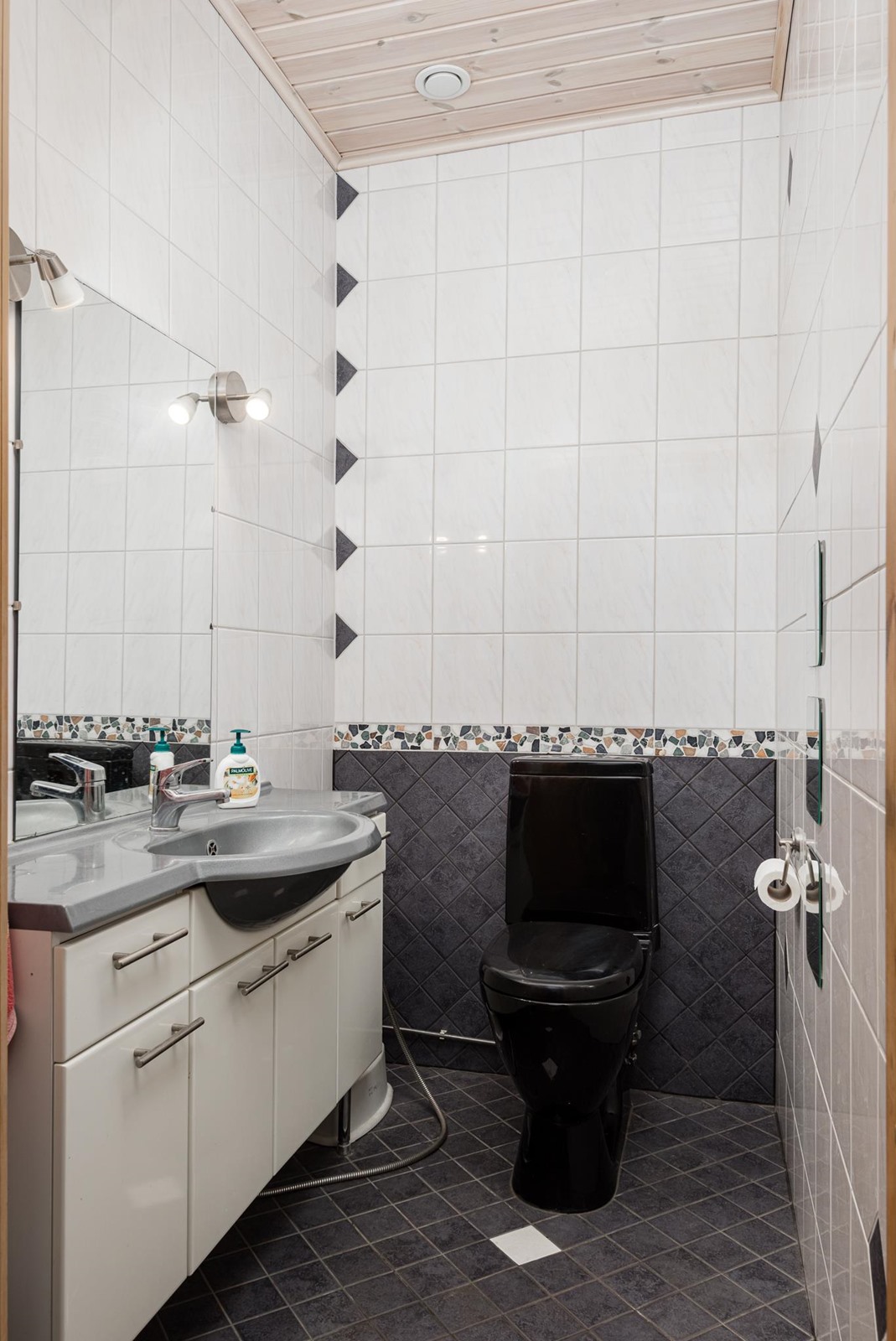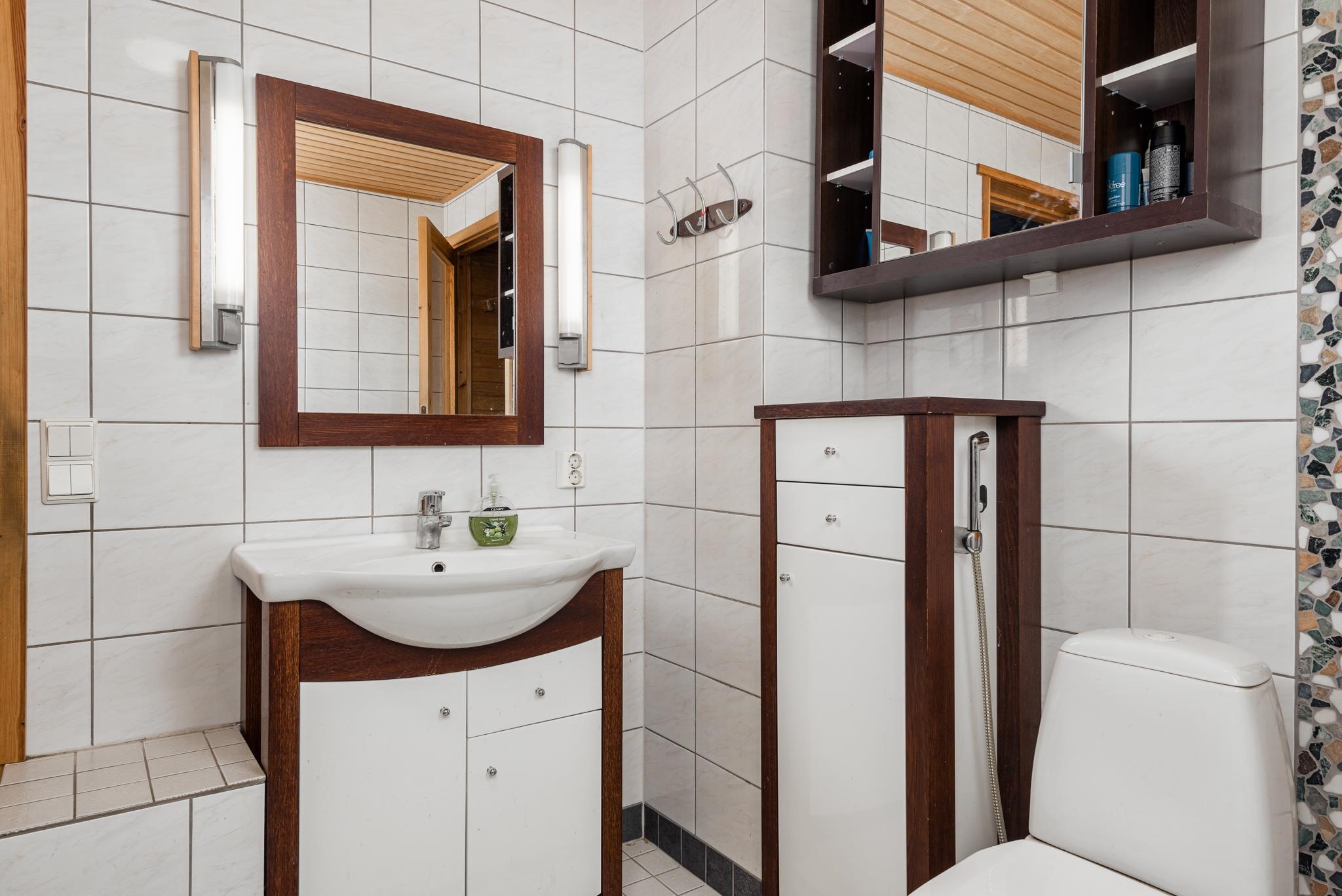 - Sauna, puukiuas, kylpyhuone, erillinen wc 2 kpl, suihku, suihkuseinä, peilit, peilikaappi, allaskaappi, pesukoneliitäntä, lattialämmitys, kiinteät valaisimet.