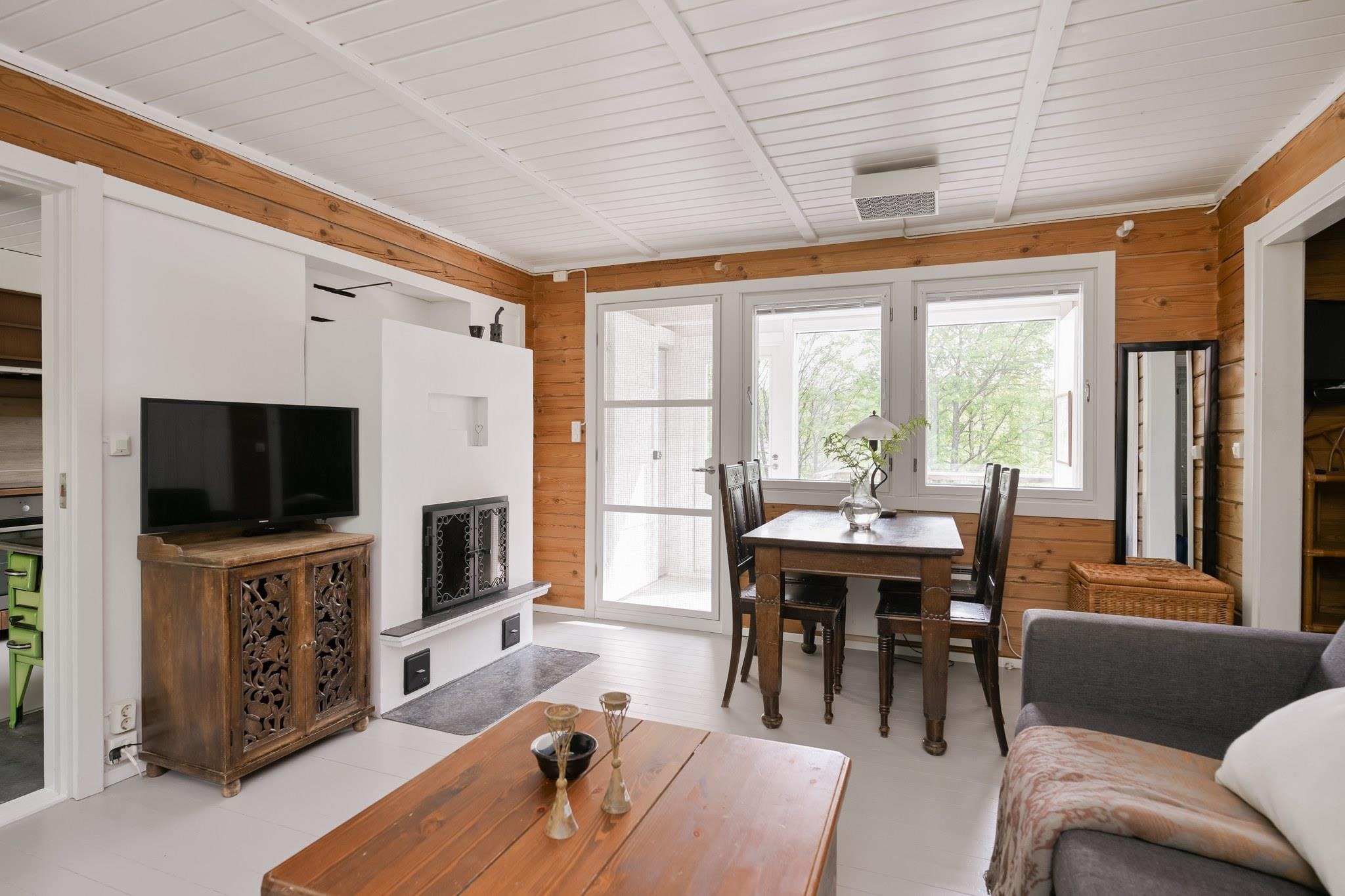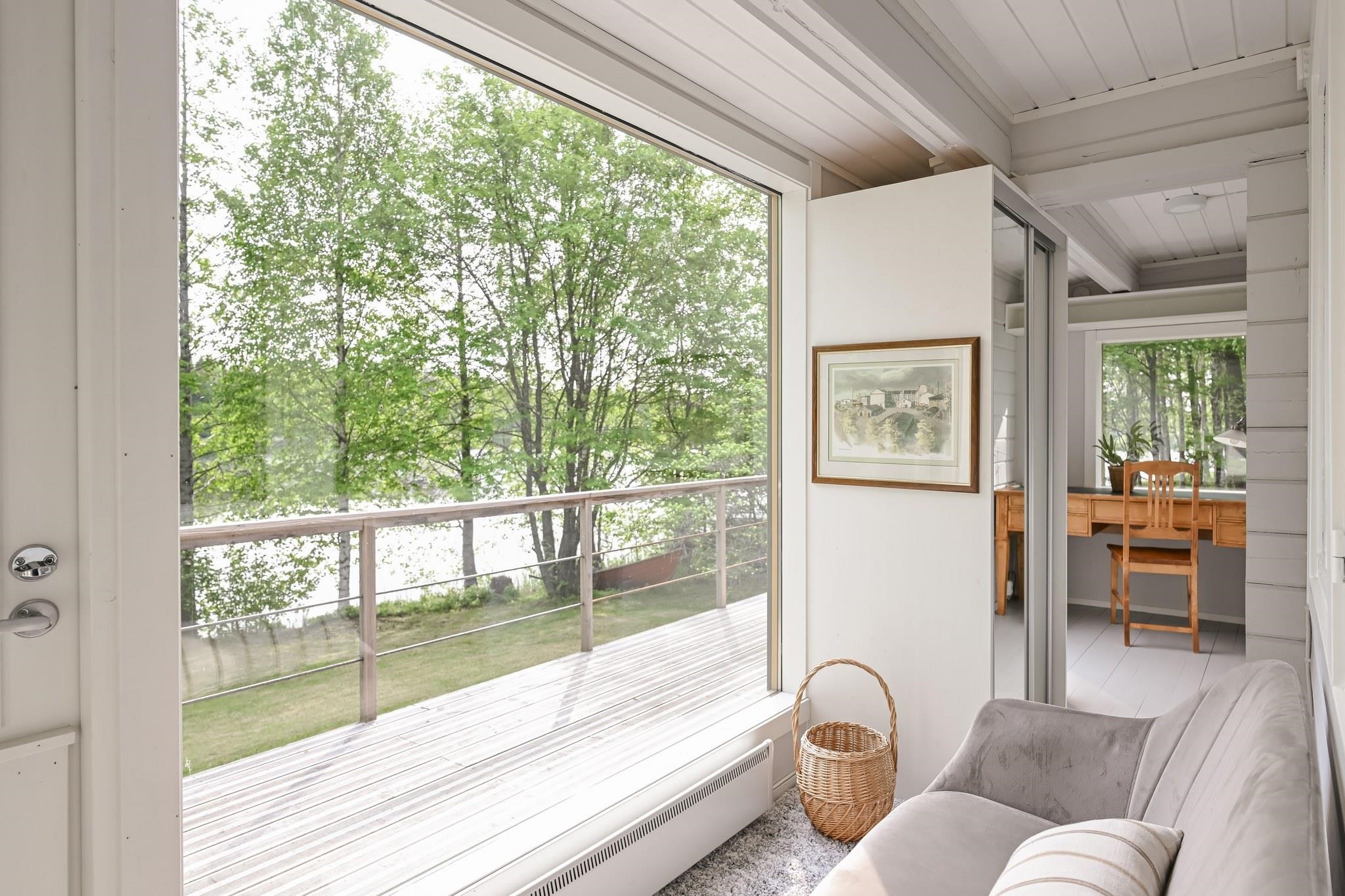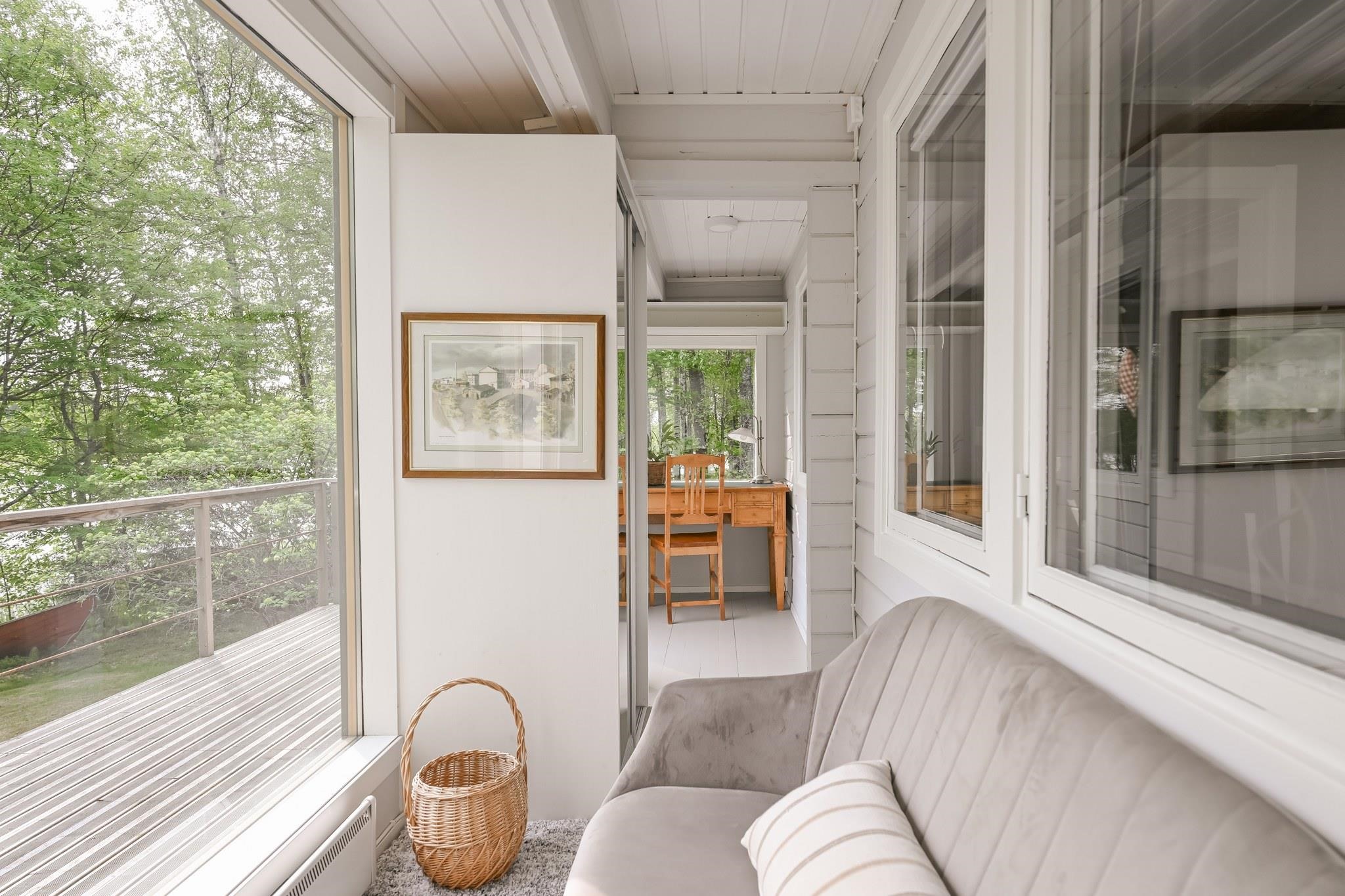 - 8 m2Huone, joka on laajennettu terassista huoneeksi.