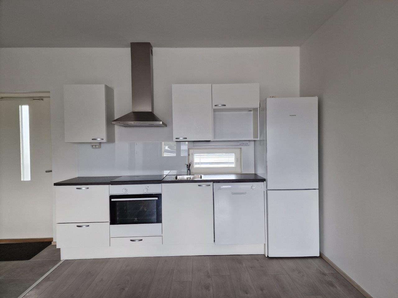 - Jääkaappipakastin, erillisuuni, induktioliesi, liesituuletin, astianpesukone, kaapistot, kiinteät valaisimet.