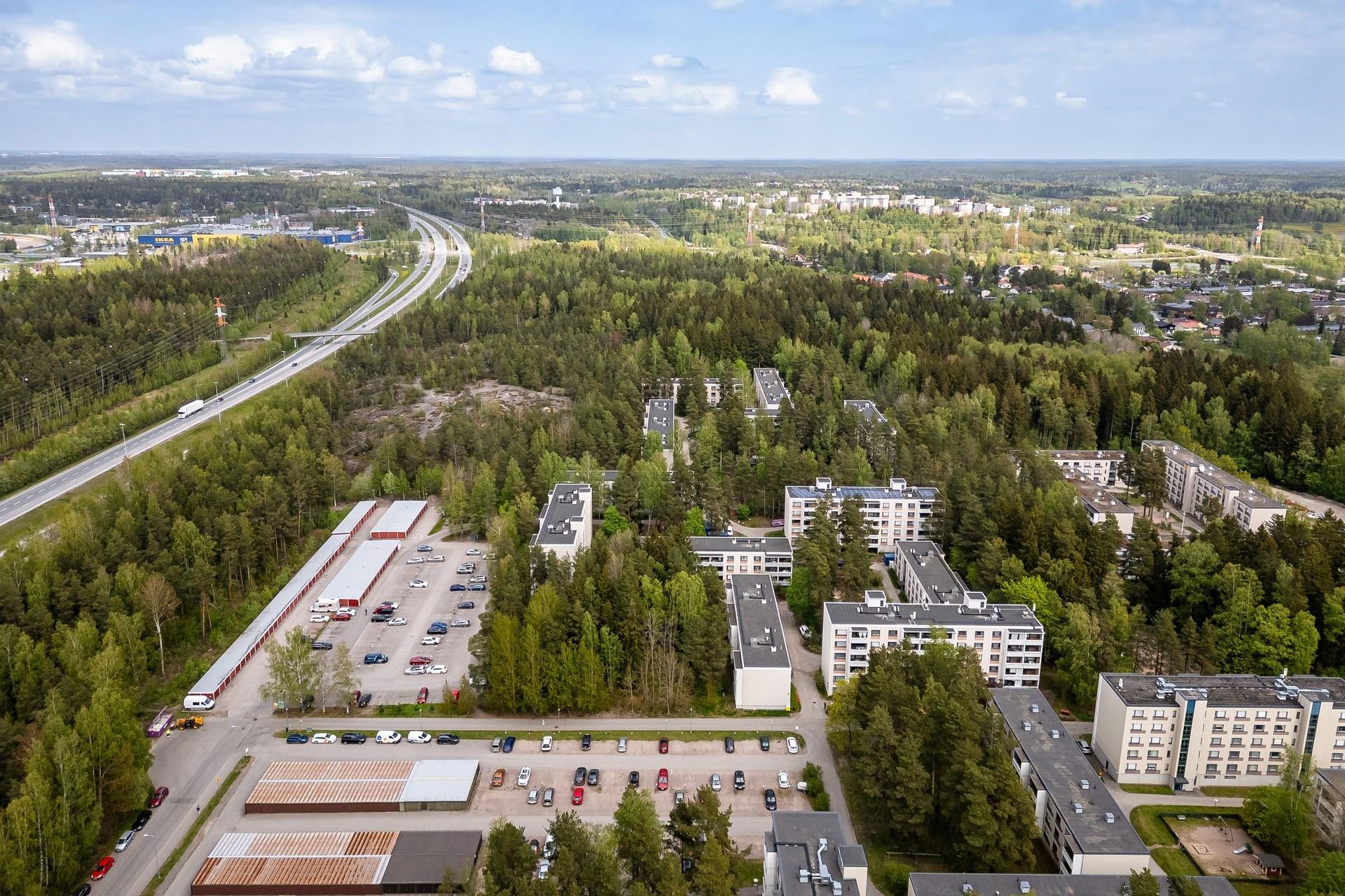 Palvelut: ruokakauppa K-Supermarket, S-Market ja Lidl n. kilometrin päässä. Vantaan Porttipuiston palvelut, mm. Ikea ja Helsinki Outlet n. 2,5km päässä. Koulut: Alueella. Päiväkoti: Alueella. Jakomäen liikuntapuisto, koirapuisto, uimahalli ja kuplahalli noin kilometrin päässä. Liikenneyhteydet: Linja-autopysäkki n. 350 metrin päässä, linja-autolla Helsingin keskustaan n. 40min matka.