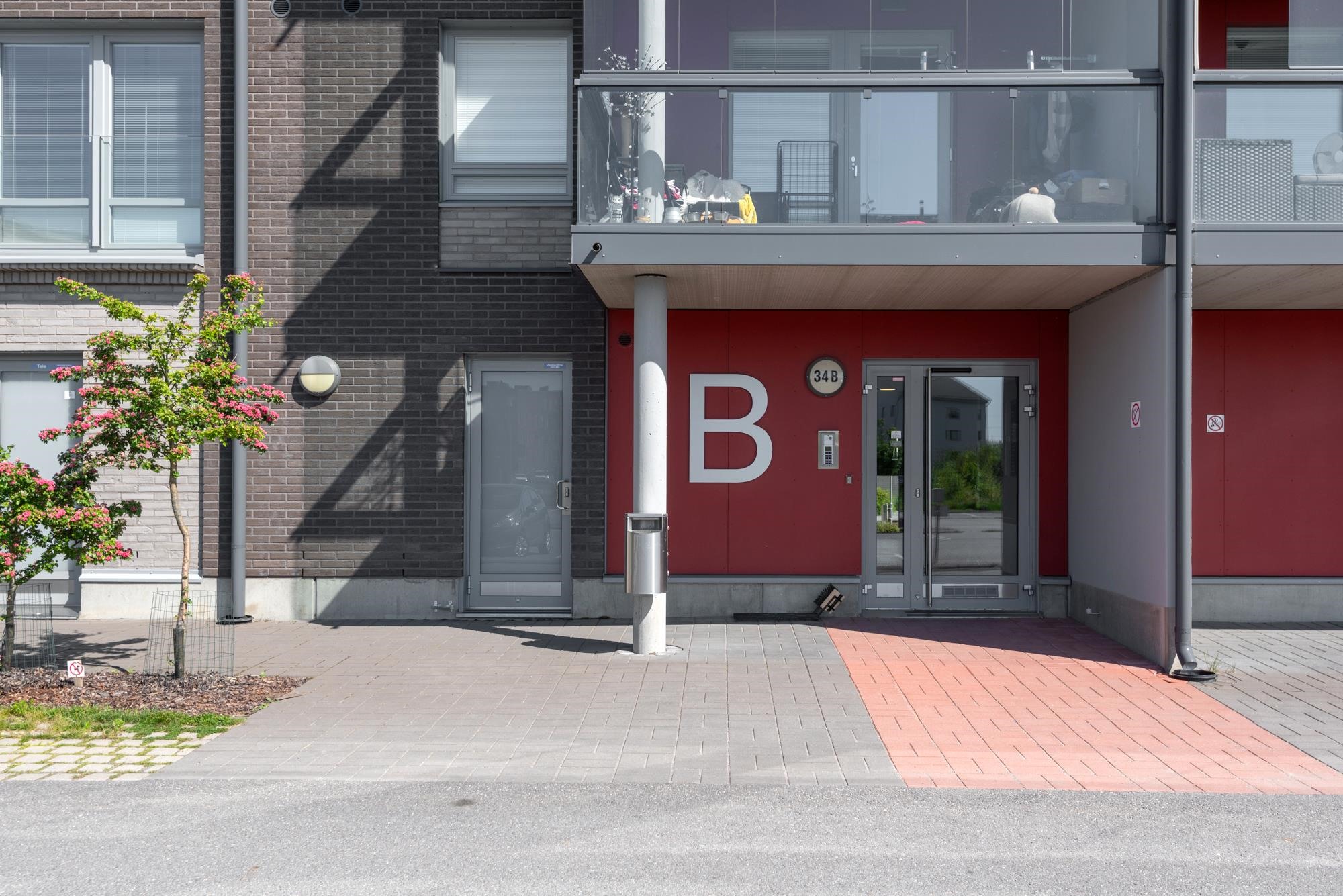 Esteettömyys on huomioitu, rappukäytävään on helppo kulku myös pyörätuolilla.