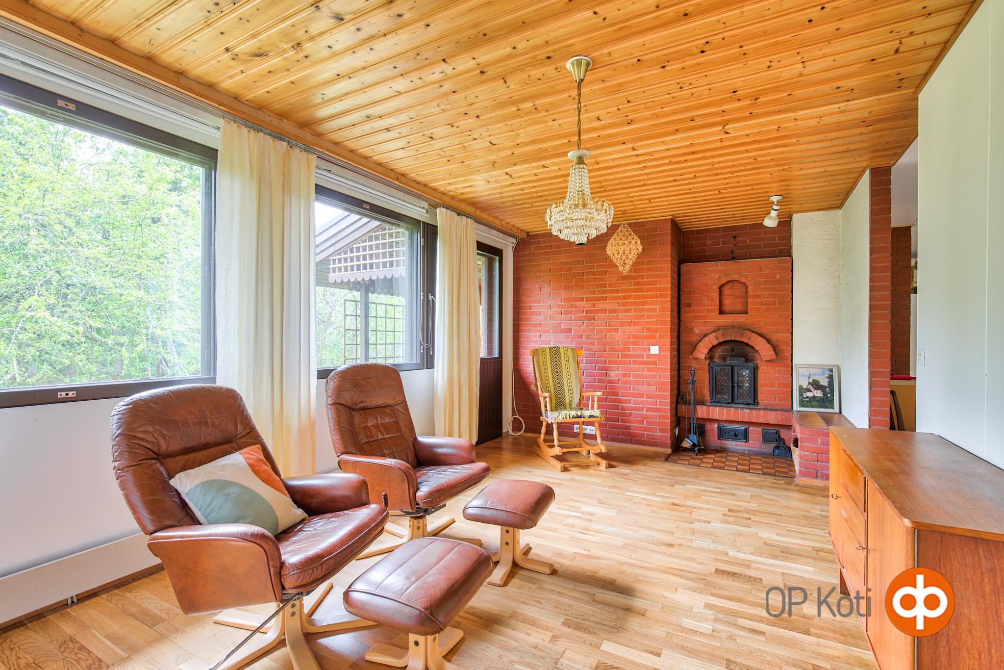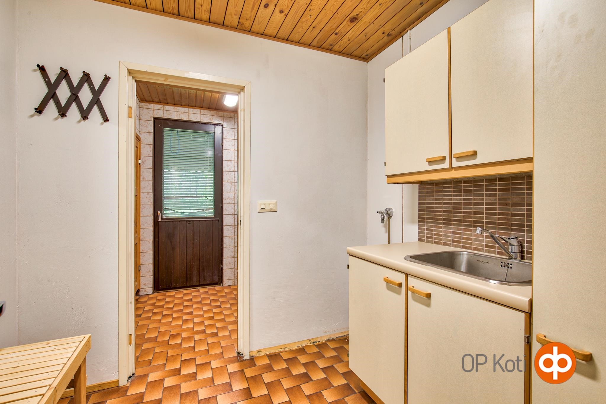 Talon pohja on kompakti ja toimiva. Kaksi makuuhuonetta varustettuna kaappitilalla, tilava olohuone, jossa tunnelmaa luo takka - ihanteellinen paikka rentoutua syksyn ja talven tullen. Ruokailutila löytyy keittiön yhteydestä. Keittiössä on runsaasti kaappitilaa sekä puuhella. Keittiöstä kuljetaan kodinhoitohuoneeseen, josta päästään kylpyhuoneeseen ja perinteiseen. Terassilta avautuvat näkymät takapihan rauhaan, jonne pääsee niin kylpyhuoneesta kuin olohuoneestakin. Talon yhteydessä on myös autotalli, jonka yhteydestä myös löytyy varastotilaa.