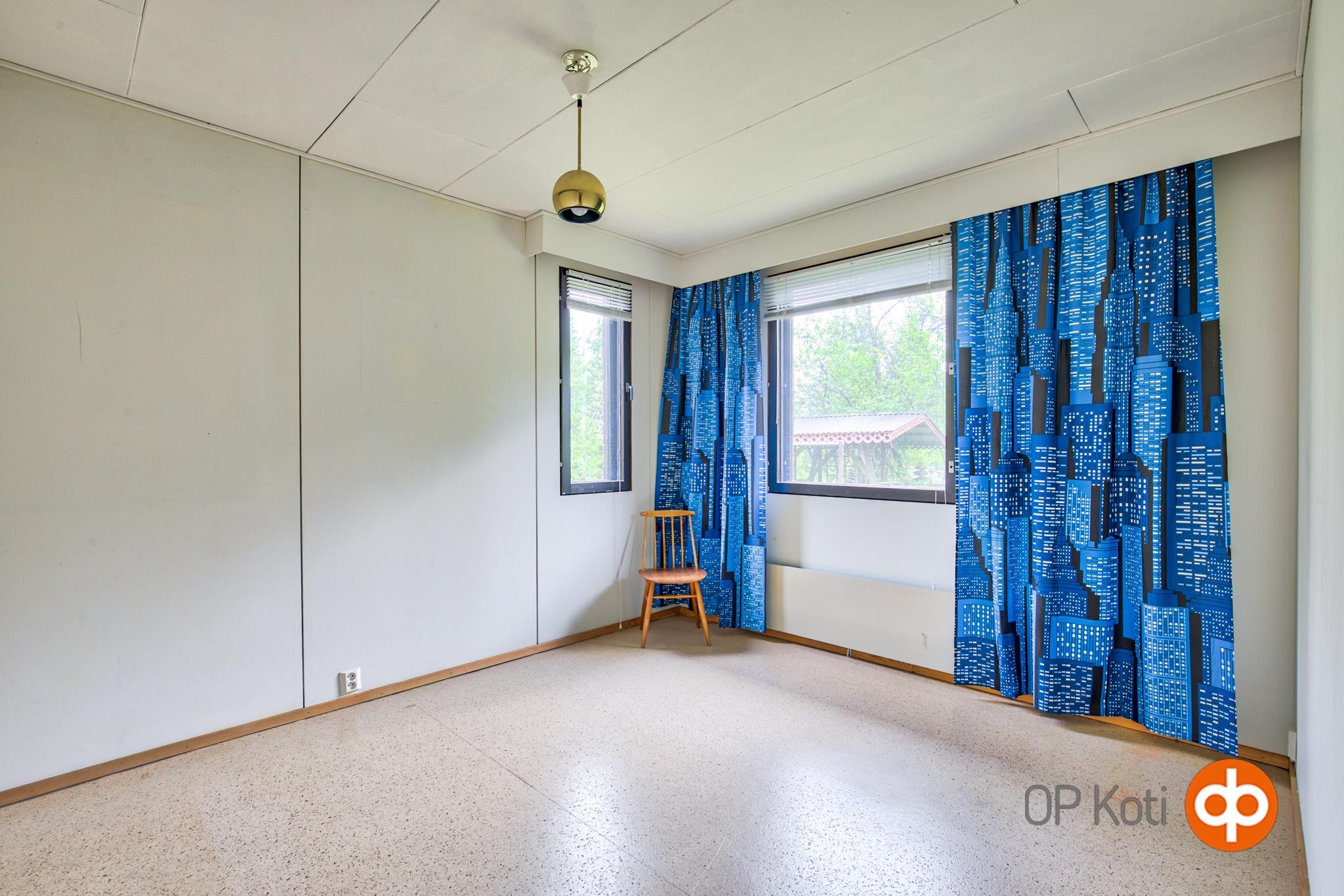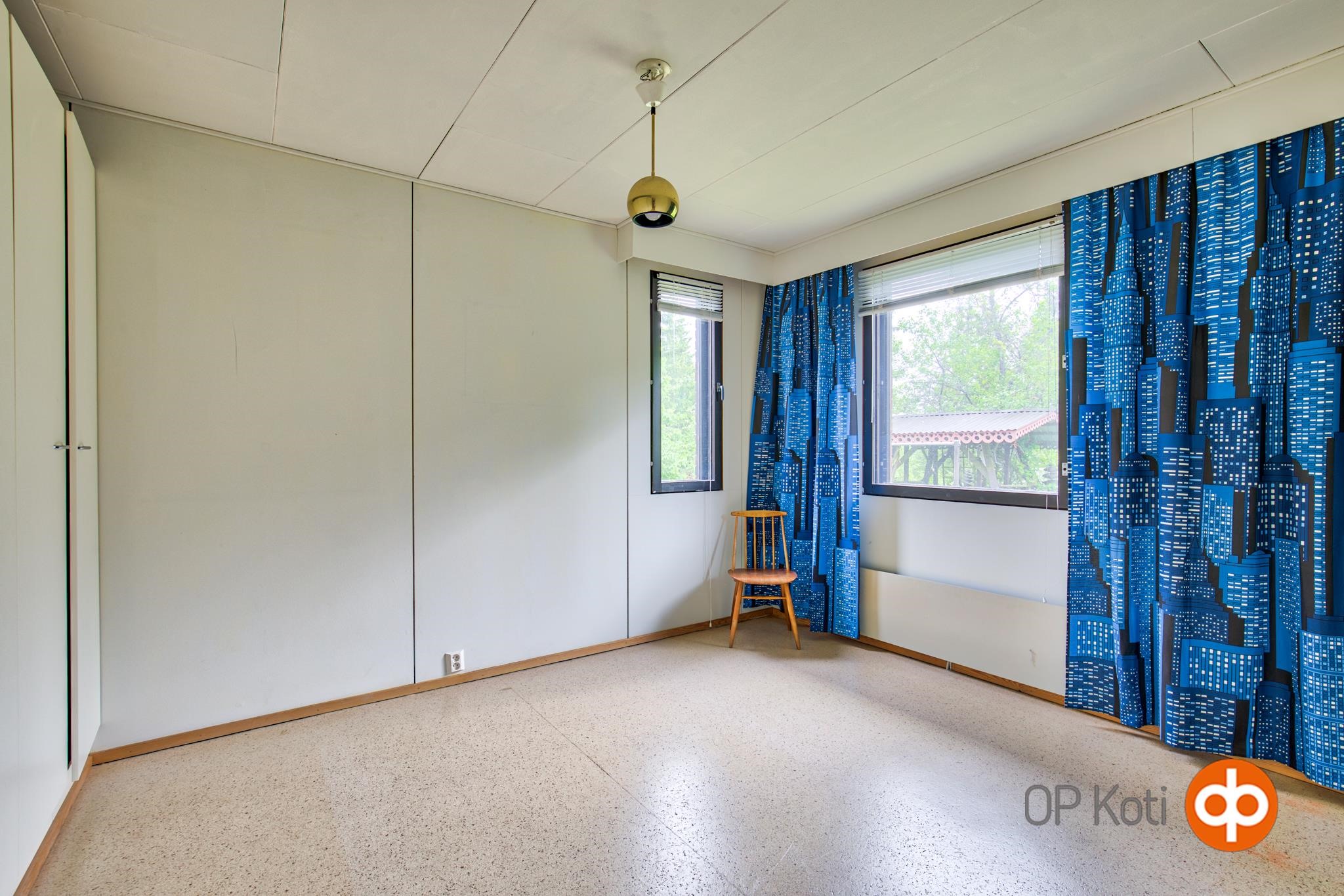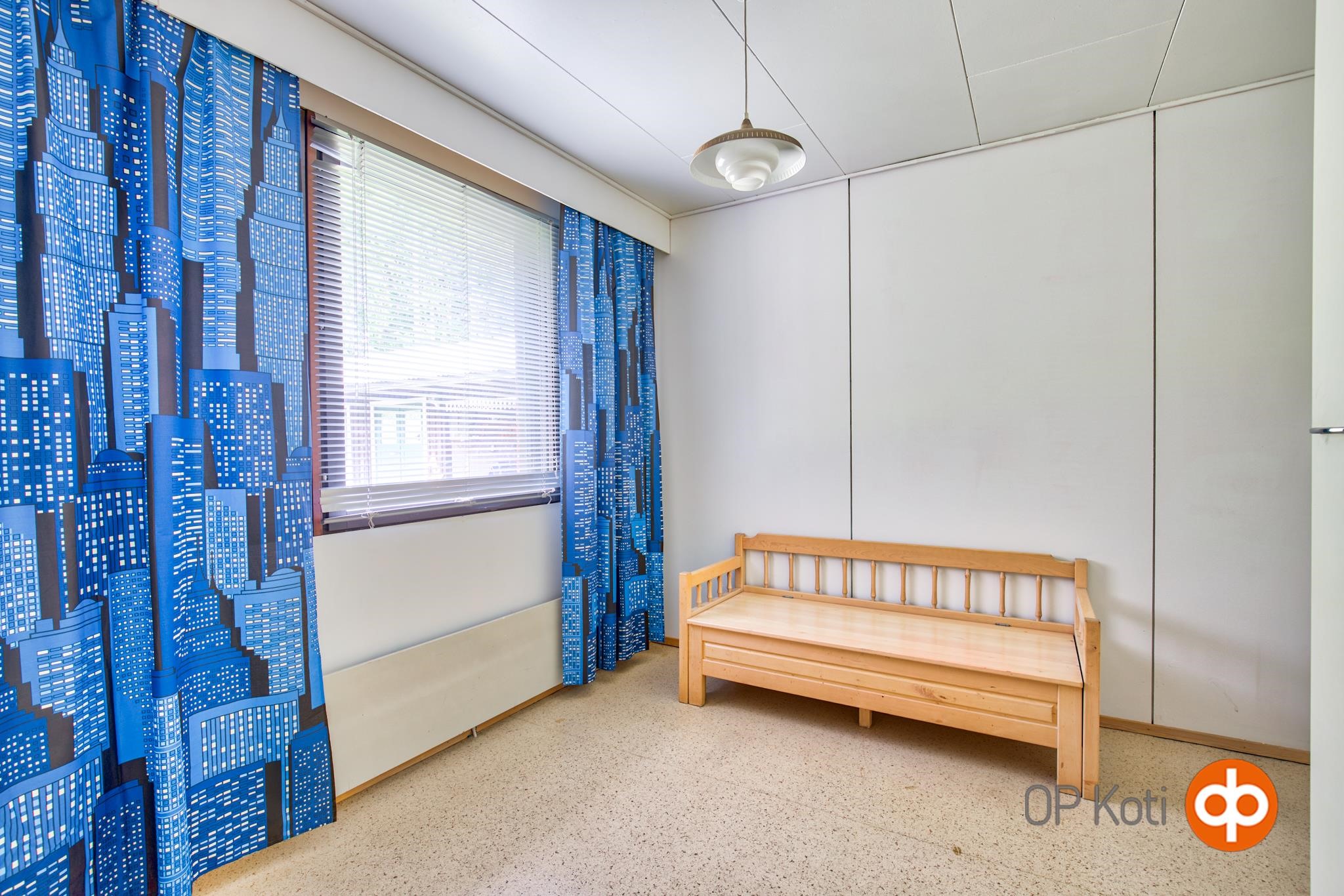 Keittiö: seinät maalattu, muovimatto. Olohuone: seinät maalattu, parkettilattia. Makuuhuone 1: maalattu, muovimatto. Makuuhuone 2: maalattu, muovimatto. Kodinhoitohuone: seinät maalattu/laatta, laattalattia. Sauna: paneeliseinät, laattalattia. Kylpyhuone: laattaseinät, laattalattia. Wc: seinät maalattu/tapetti, muovimatto.