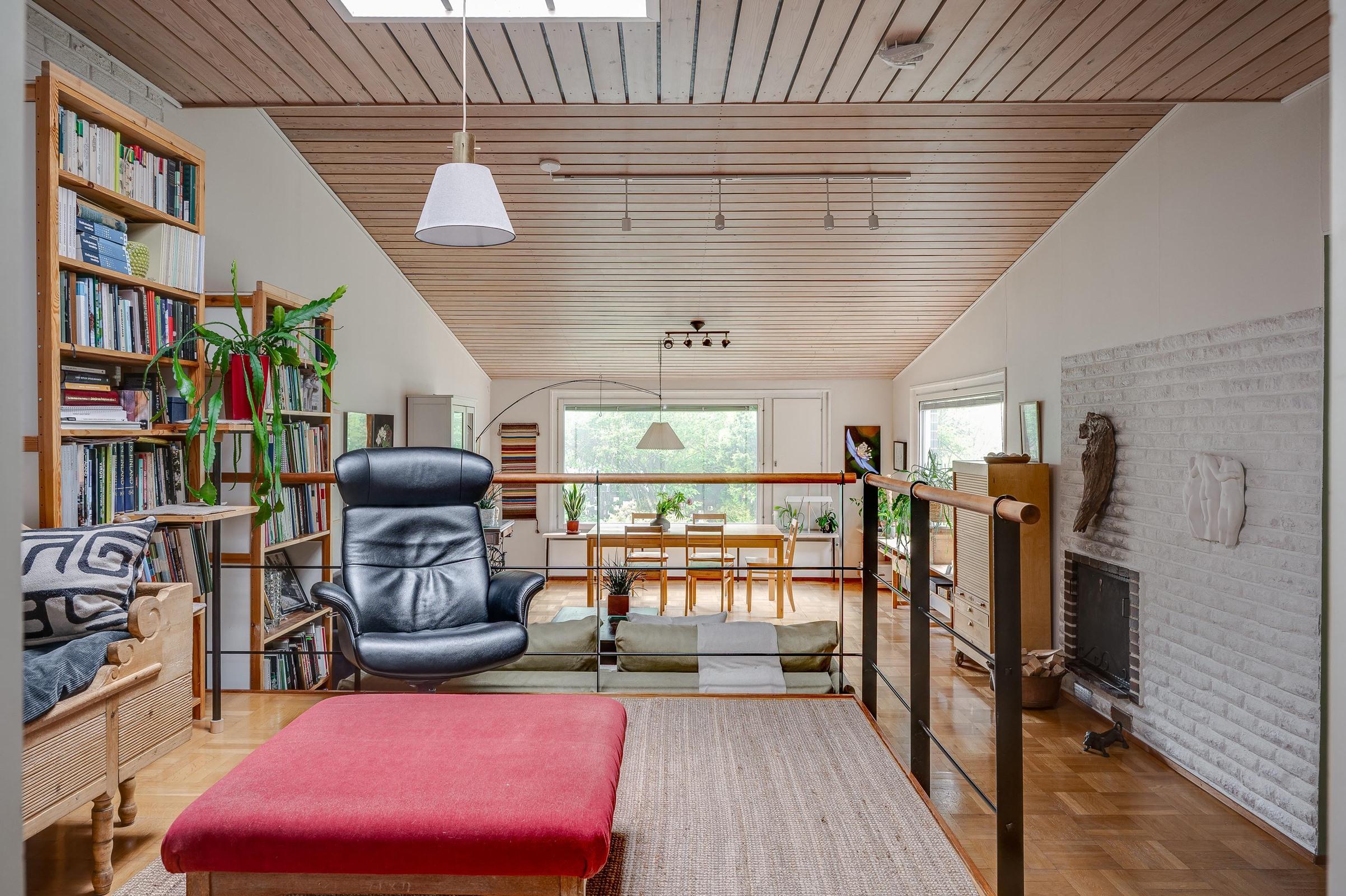 Korkea huonekorkeus, isot ikkunat ja avara pohjaratkaisu tekevät olohuoneesta kodin sydämen valoa tulviva tila, jossa elämä saa virrata vapaasti. Täysin uusittu sauna- ja kylpyhuoneosasto (2015) tarjoaa rentoutumista, ja tilava vaatehuone lisää arjen toimivuutta.