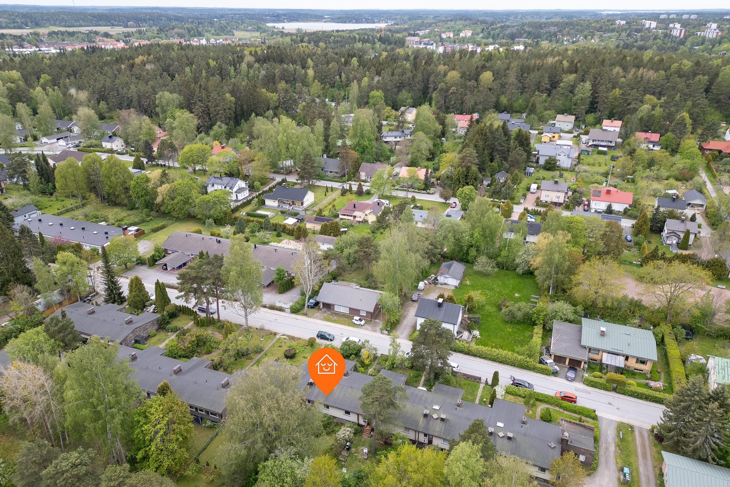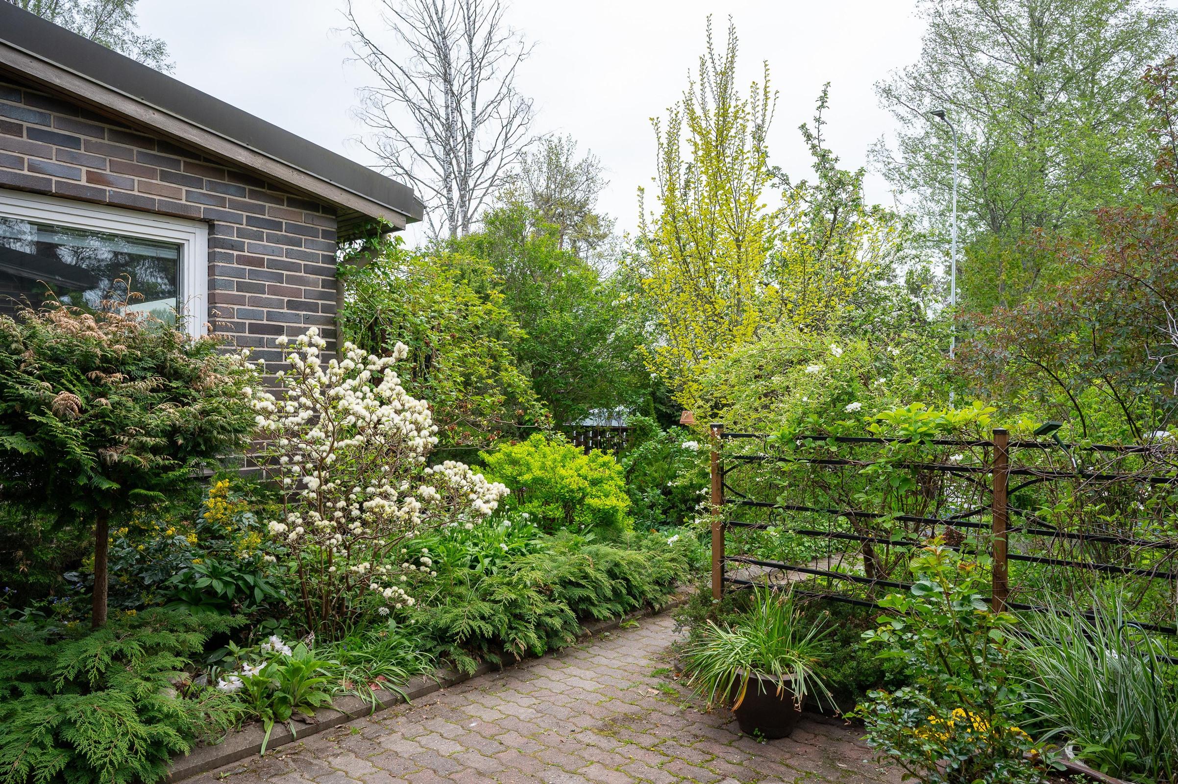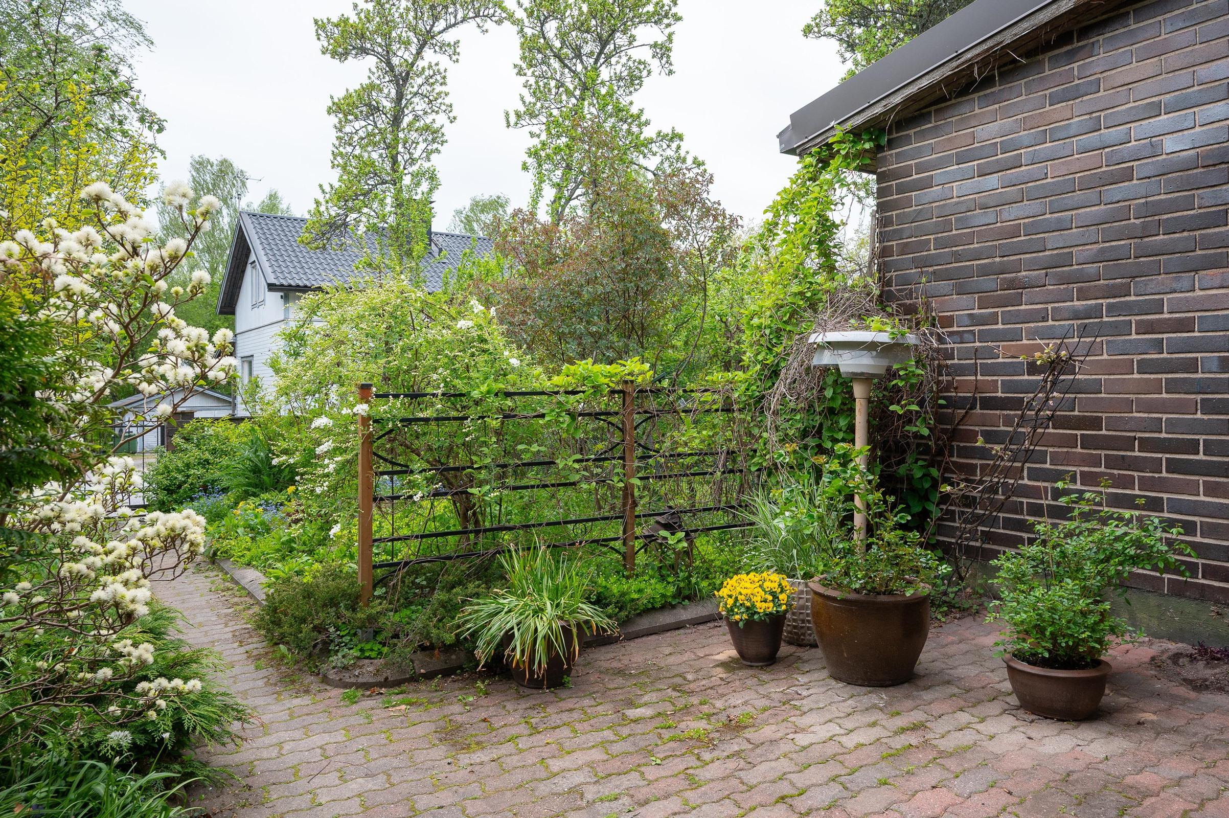 Tämä koti on erityisen ihanteellinen viherpeukalolle: etelänpuoleinen suojaisa etupiha ja vehreä takapiha istutuksineen tarjoavat rauhallisen keitaan keskellä Koivulaa. Yhtiössä on päätetty myös pihaparannuksista takapihojen rappujen laatoitus ja etupihojen muurien korjaus lisäävät viihtyisyyttä entisestään.