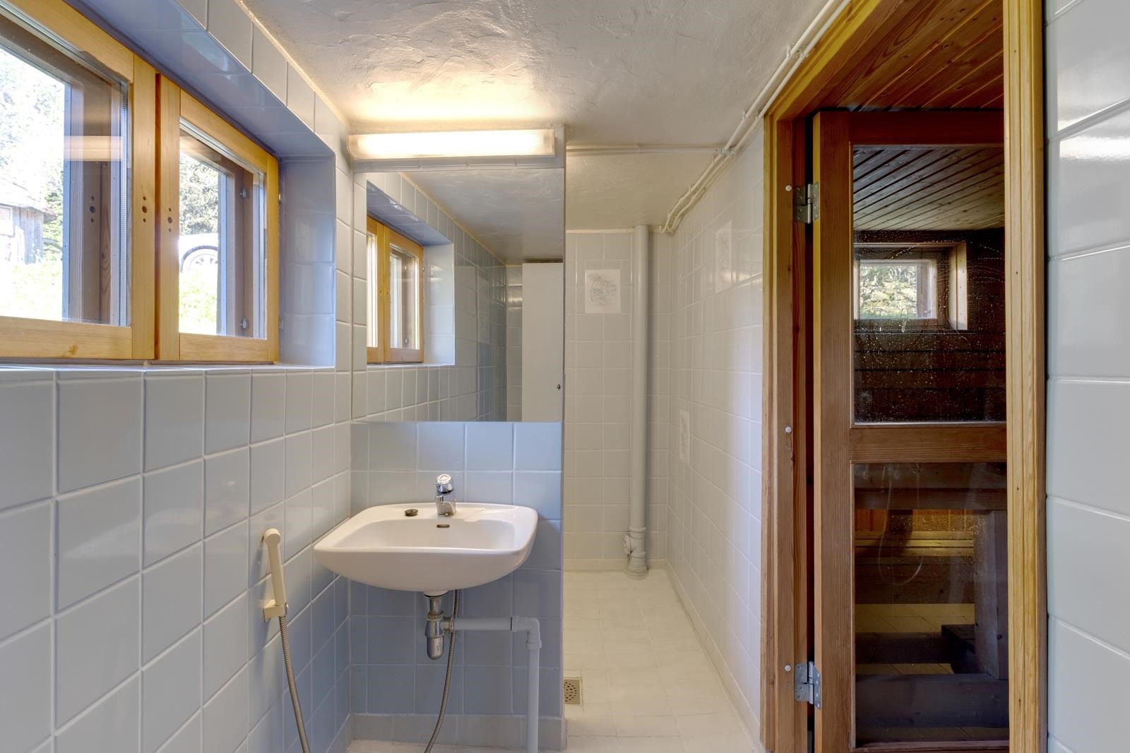 - Sauna, puukiuas, kylpyhuone, erillinen wc x2, suihku, amme, peilit, allaskaappi, pesukoneliitäntä, lattialämmitys vesikiertoinen, ph, khh, yläkerran wc/kph, kiinteät valaisimet.