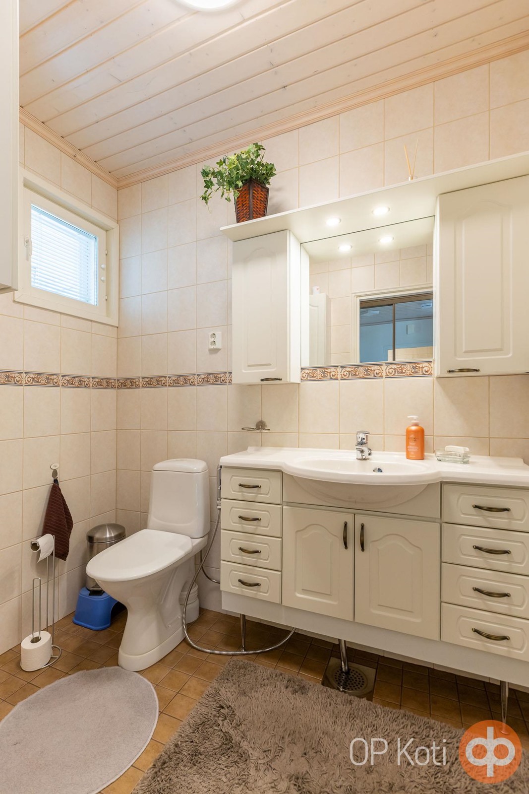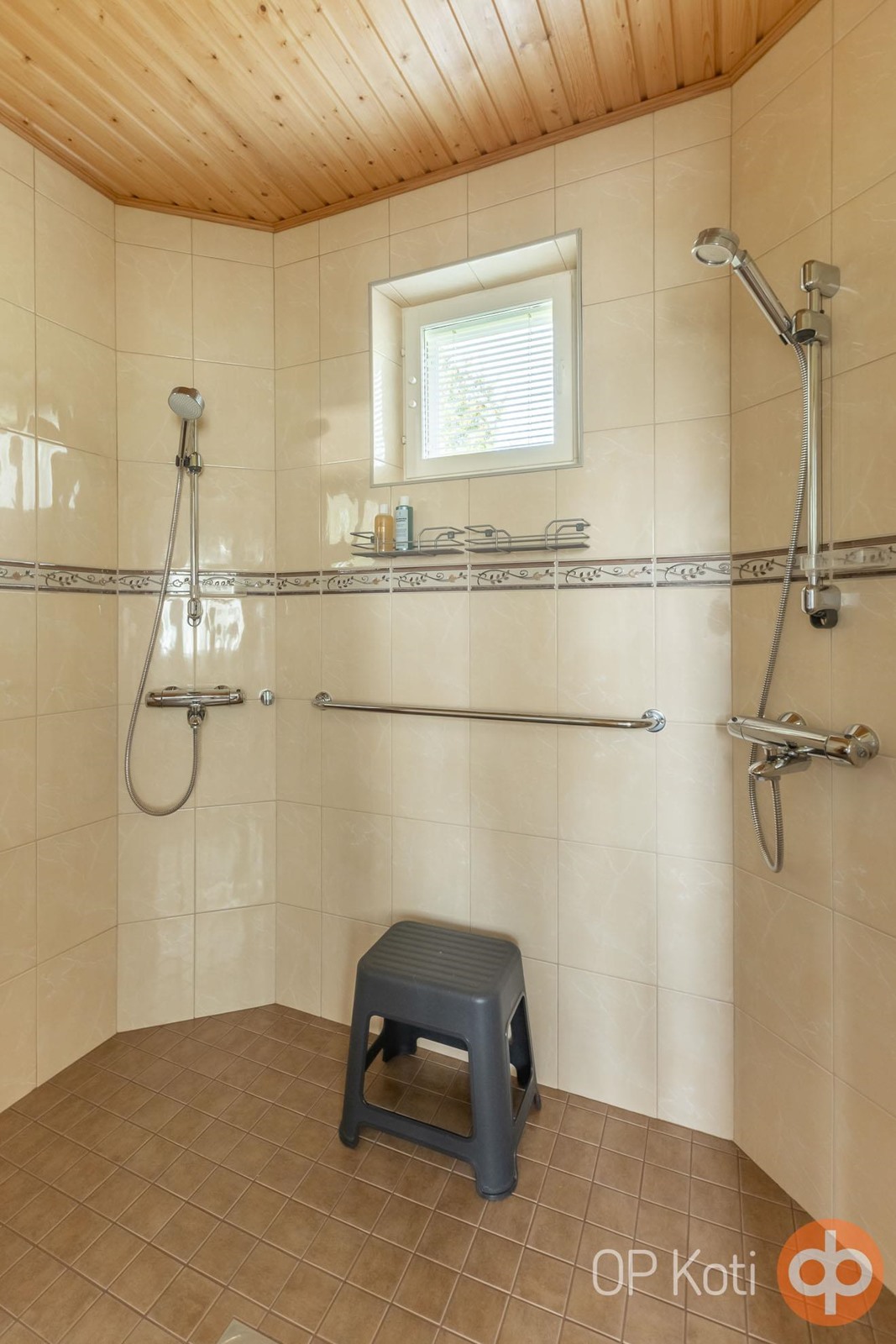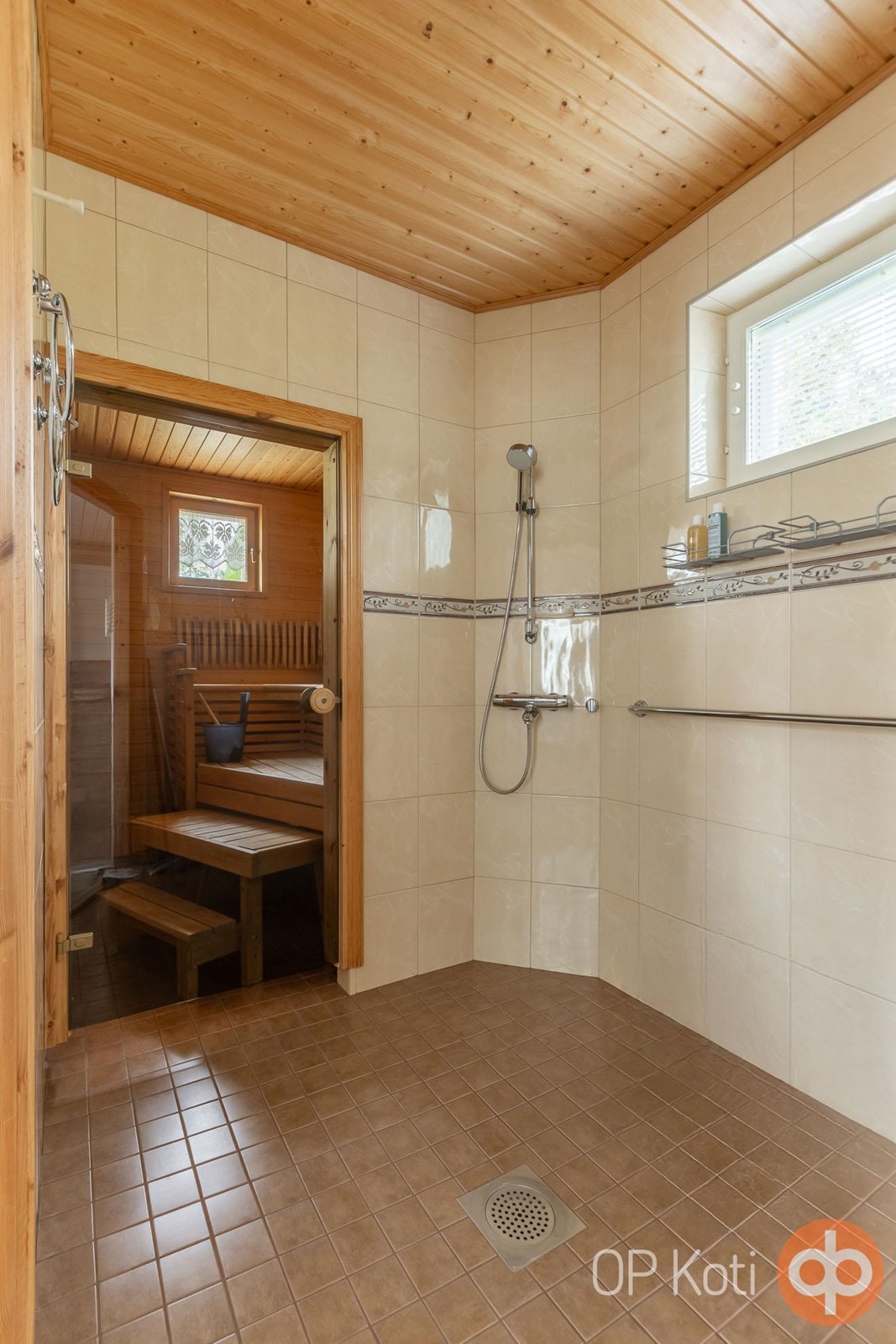 - Sauna, sähkökiuas, kylpyhuone, erillinen wc 2 kpl, suihku 2 kpl, peilikaappi, allaskaappi, pesukoneliitäntä, lattialämmitys, kiinteät valaisimet.