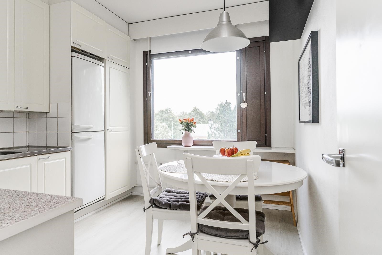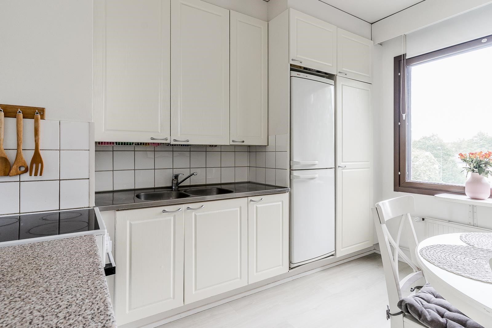 - Jääkaappipakastin, keraaminen liesi 2018, kaapistot, kiinteät valaisimet. Keittiön ovet uusittu joskus 2000-luvun alussa