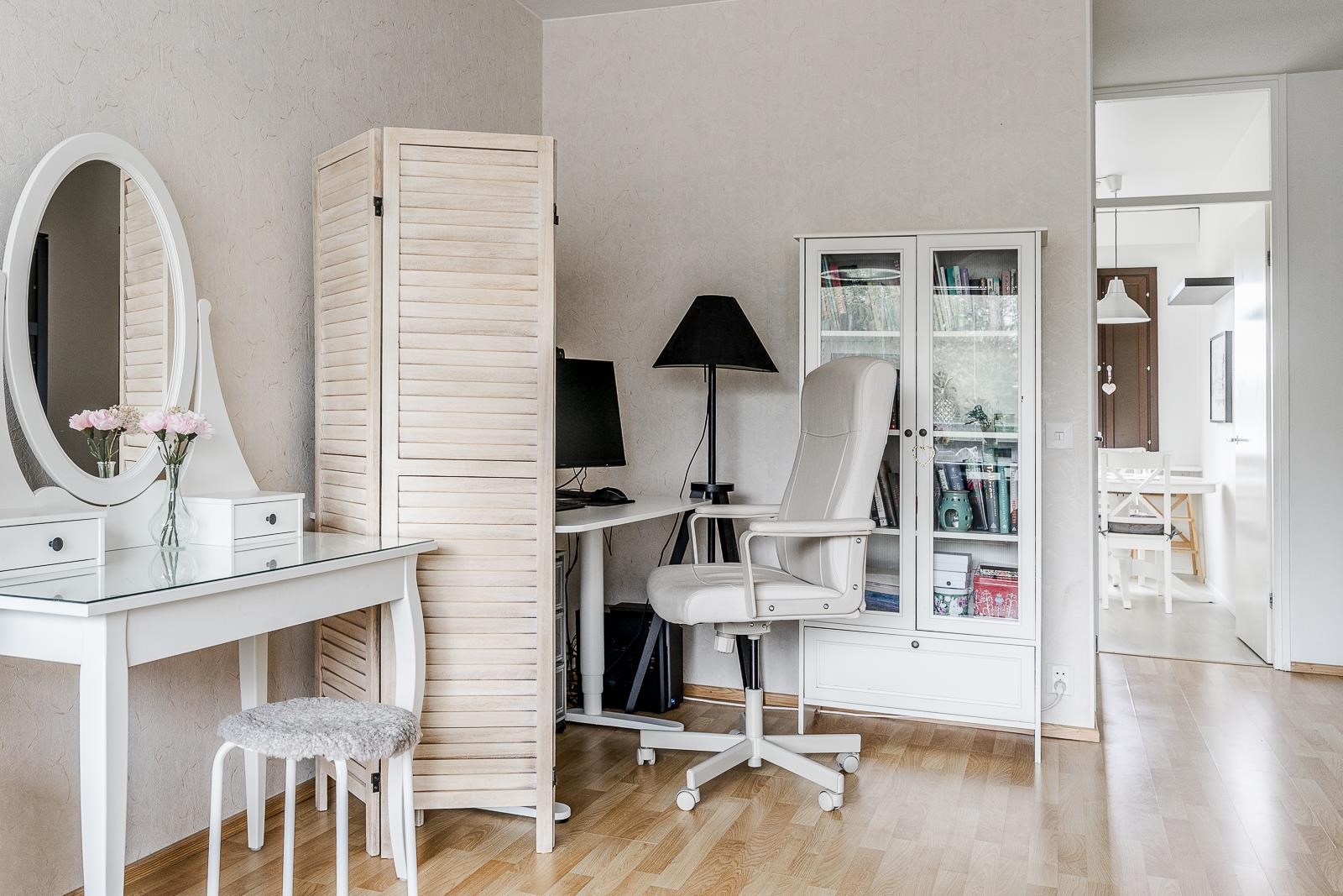 - Keittiö: laminaatti/maali. Olohuone: parketti/tapetti. Makuuhuone 1: parketti/tapetti. Kylpyhuone: laatta/kaakeli.