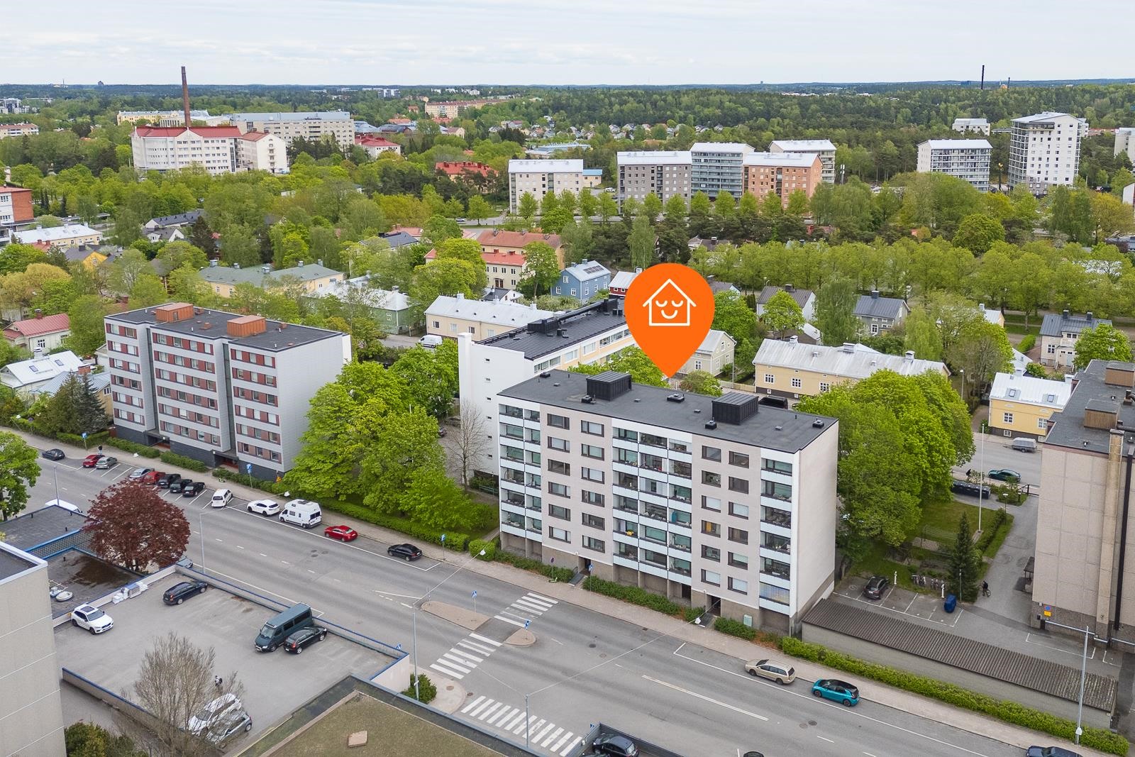 Sijainti Itäisessä keskustassa tuo mukanaan kaikki kaupungin parhaat palvelut käden ulottuville. Ruokakaupat, ravintolat ja muut palvelut ovat aivan vieressä, joten voit nauttia elämän mukavuuksista ilman pitkiä matkoja. Turun Urheilupuisto tarjoaa erinomaiset liikuntamahdollisuudet kaikenikäisille ja -tasoisille liikkujille. Alueelta löytyy lenkkipolkuja, ulkokuntoilulaitteita sekä frisbeegolfrata luonnon helmassa. Pallopeleihin on tarjolla tenniskenttiä, koripallo- ja lentopallokentät sekä jalkapallokenttä. Talvisin puistossa voi nauttia luistelukentästä, joka tuo liikunnan iloa myös kylmempinä kuukausina. Urheilupuisto sijaitsee aivan asunnon vieressä, joten monipuoliset ulkoilu- ja harrastusmahdollisuudet ovat vain muutaman askeleen päässä. Sisäpihalta löytyy tilava parkkialue, joka tarjoaa hyvin pysäköintitilaa asukkaille.