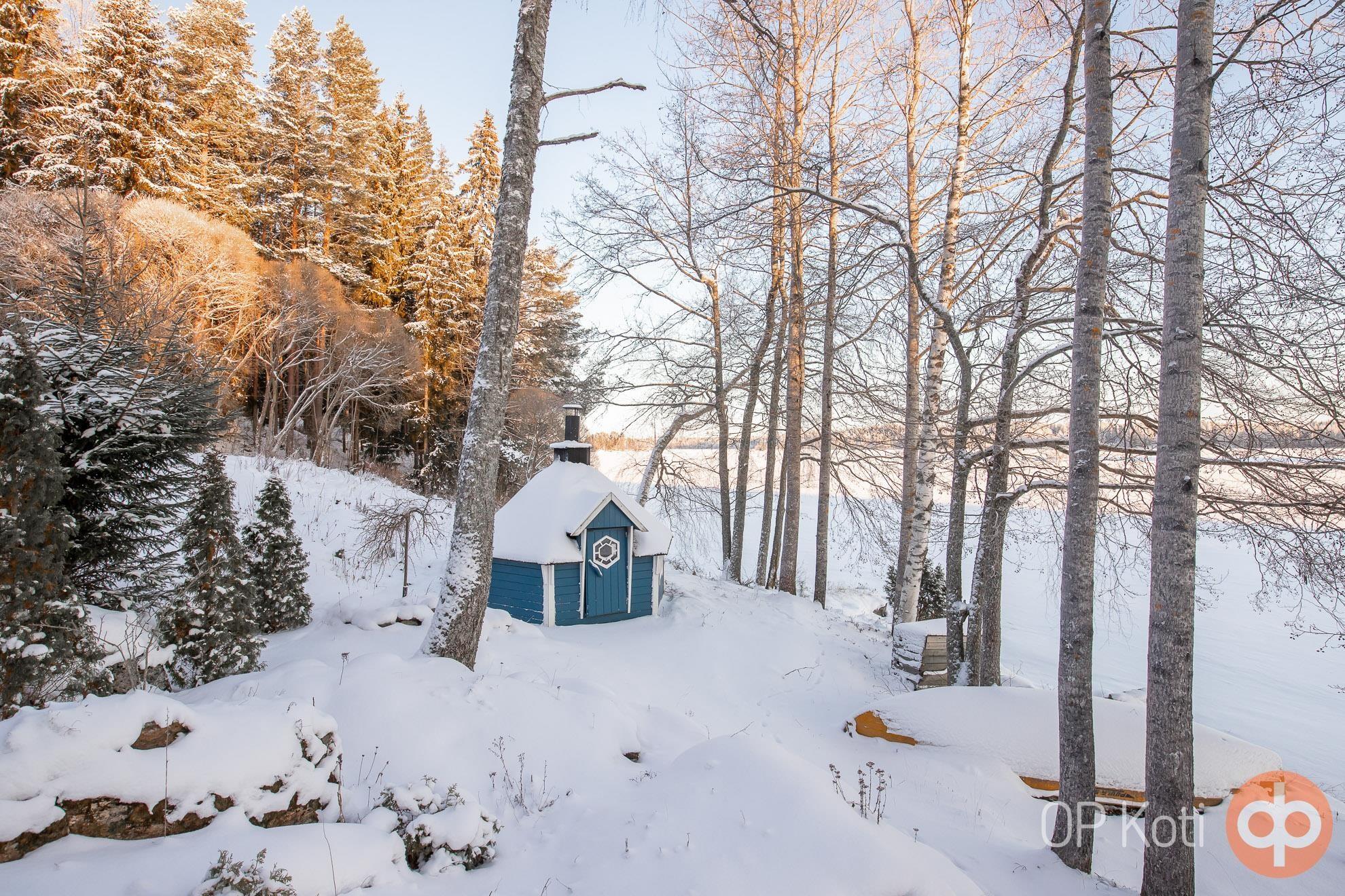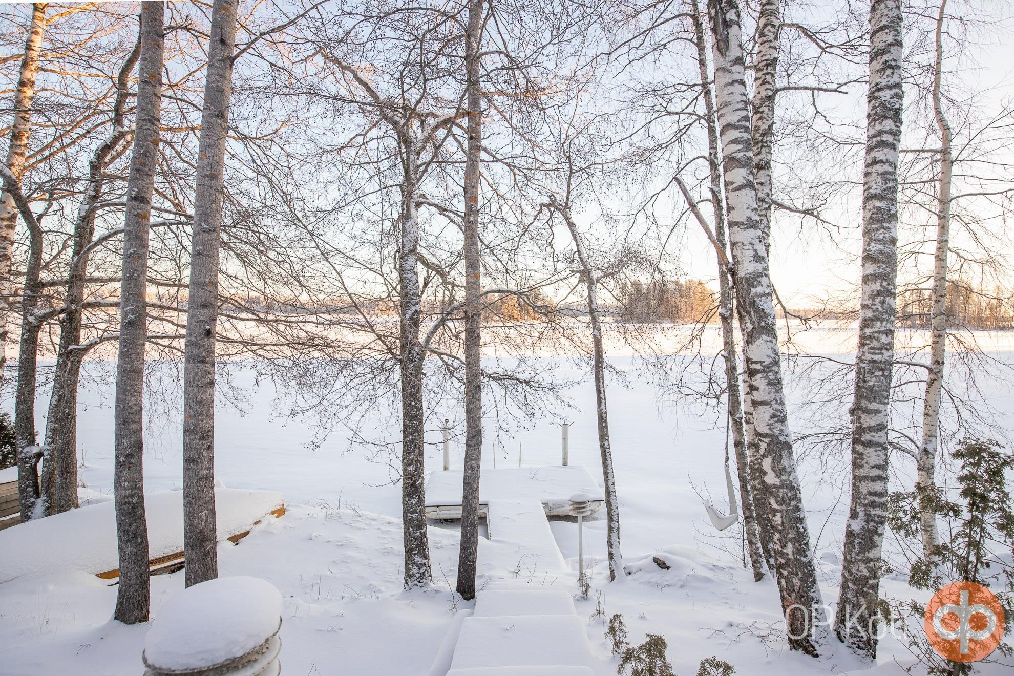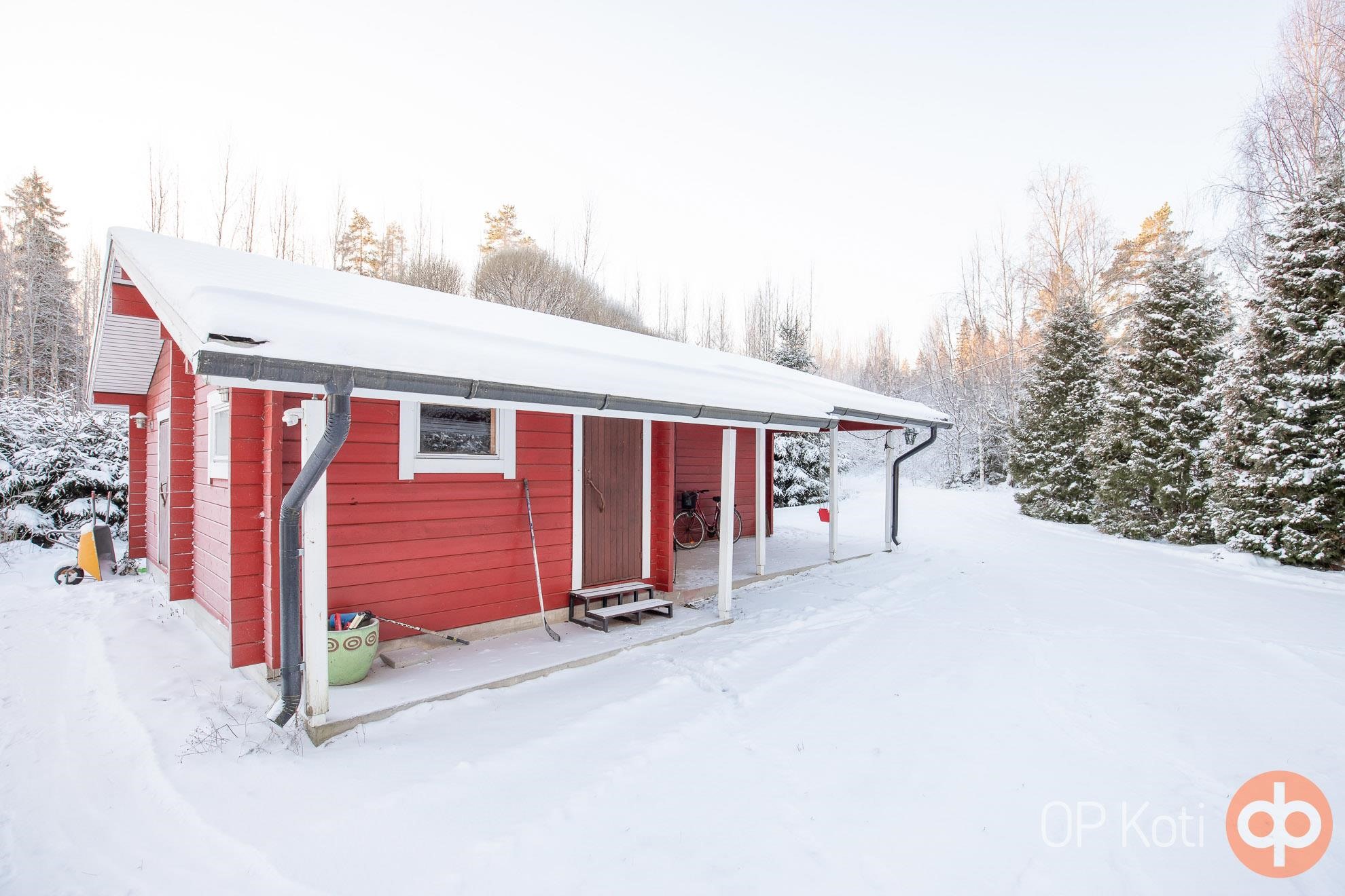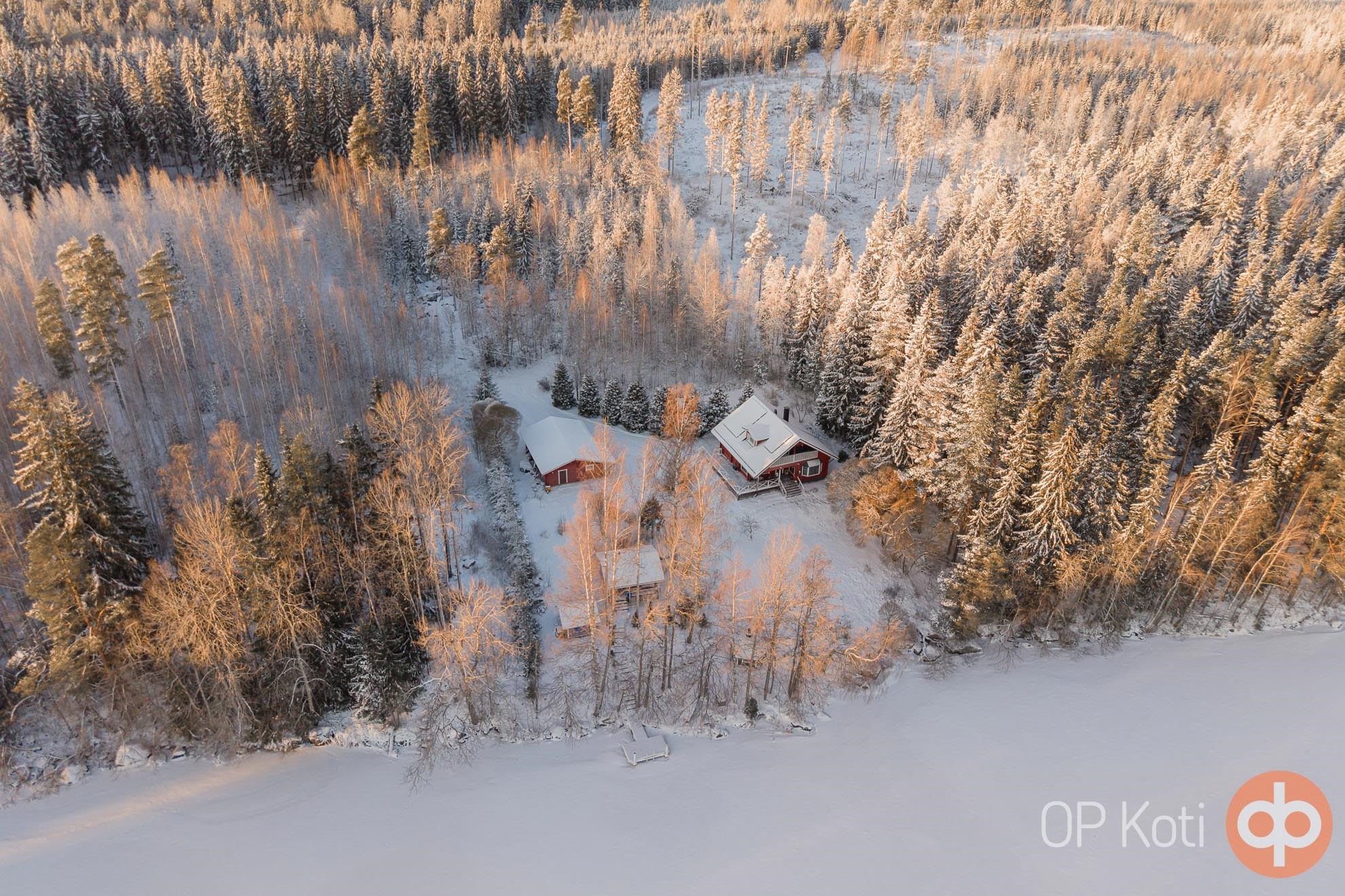 Hirsinen omakotitalo on valmistunut vuonna 1996 ja tiloina toimii 2 makuuhuonetta, keittiö, olohuone, wc, kylpyhuone, sauna ja eteinen sekä tekninen tila. Yläkerran parvekkeelta maisema aukeaa kauniisti järvelle. Lämmitysjärjestelmänä puu/sähkö ja aurinkopaneelitkin on asennettu katolle. Talousrakennuksina toimii autotalli/katos/varasto/liiteri ja rannan tuntumasta löydät grillikodan, liiteri ja rantasaunan. Rantasaunassa on tupa, pukuhuone ja itse sauna.