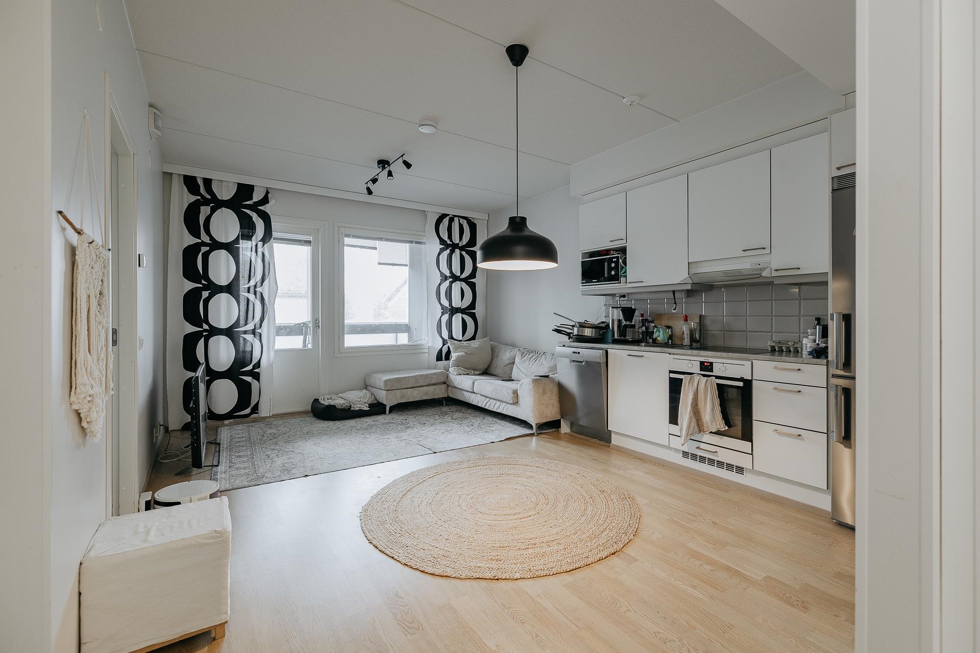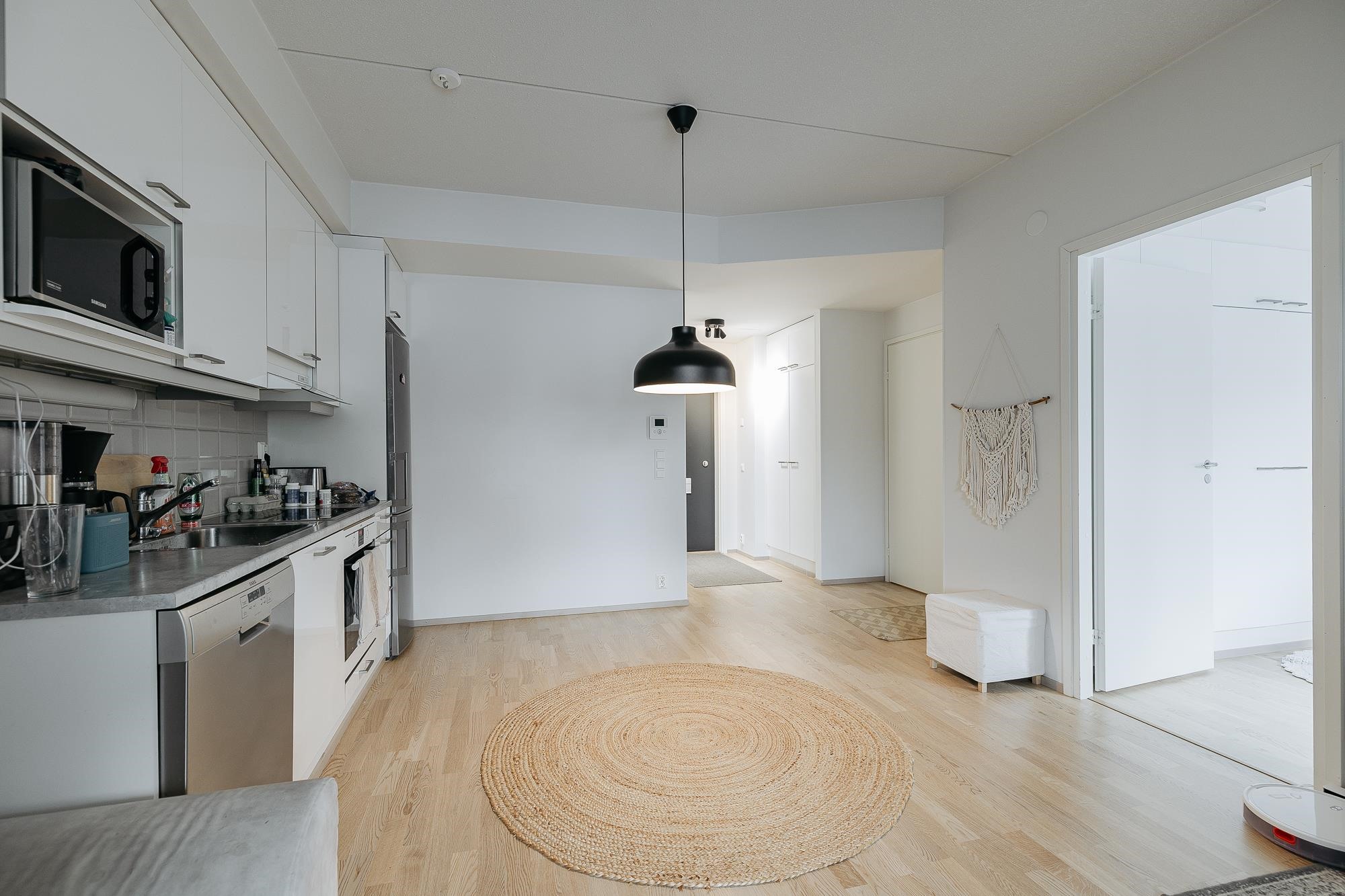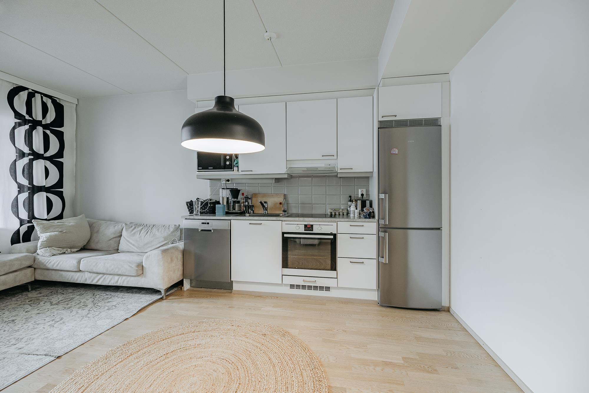 - Jääkaappipakastin, erillisuuni, liesitaso, liesituuletin, astianpesukone, kiinteät valaisimet.