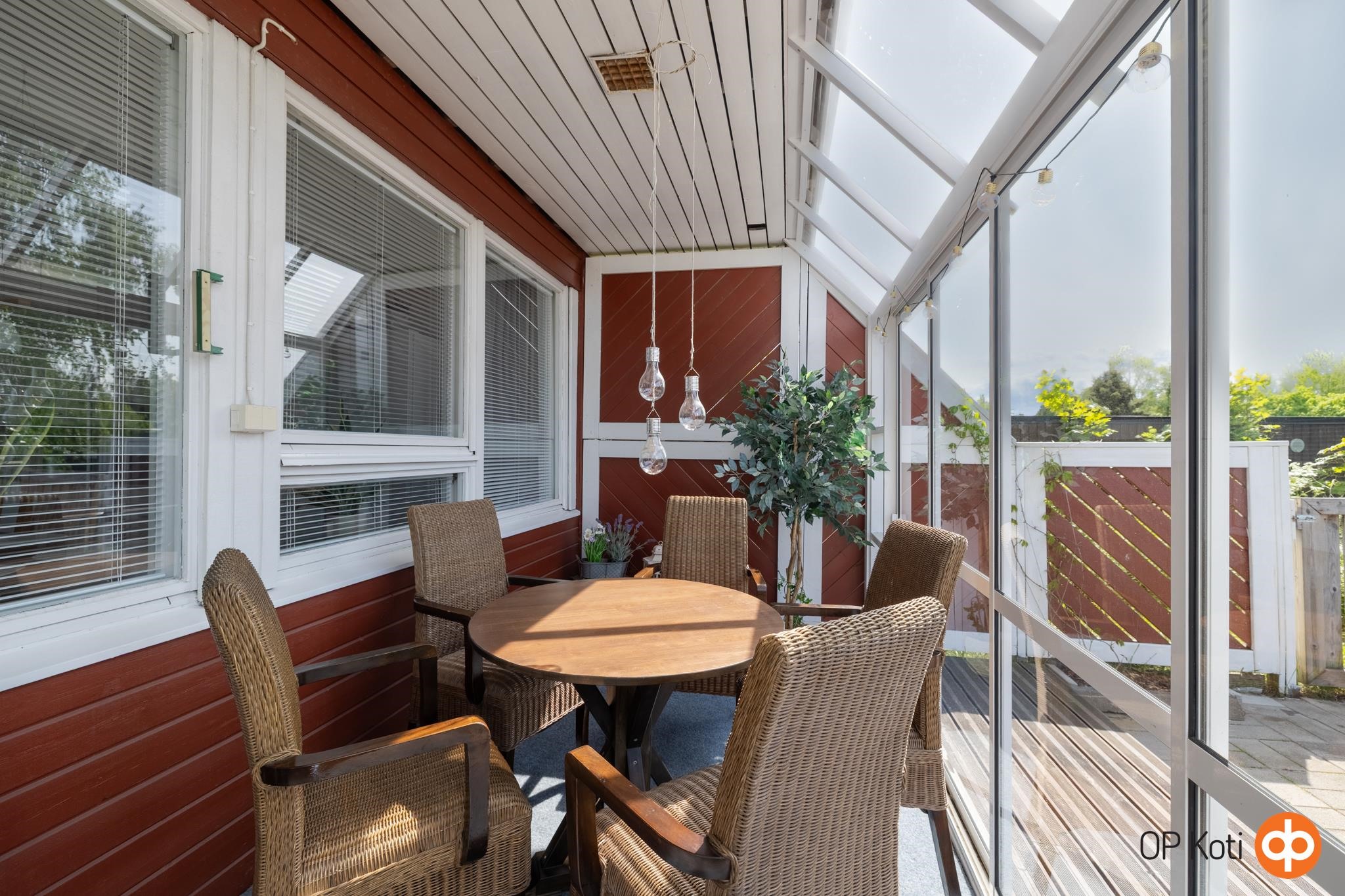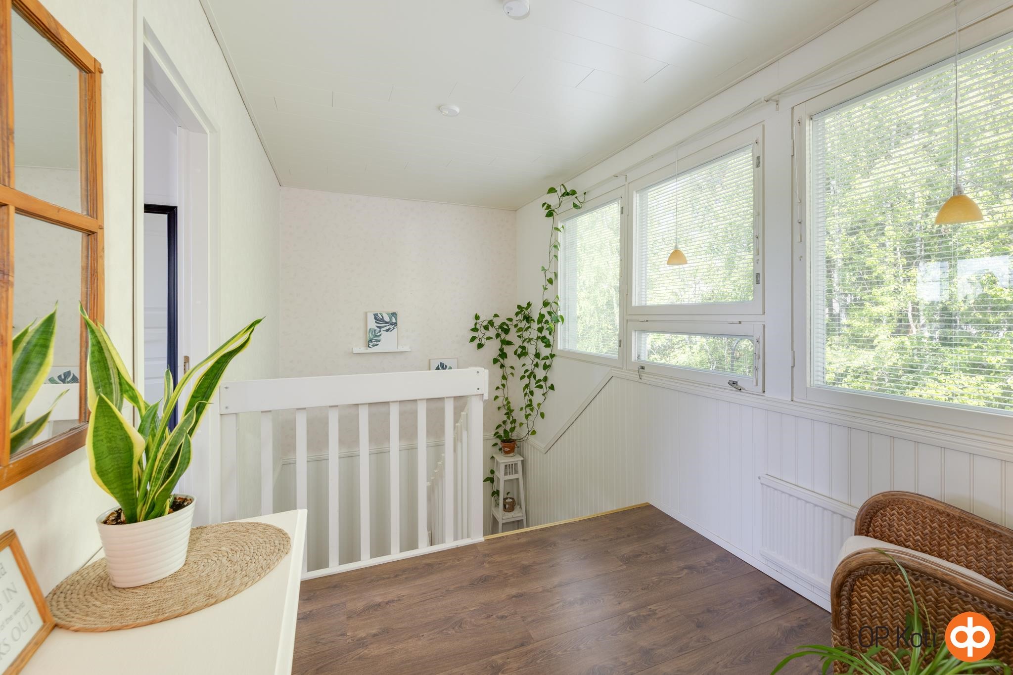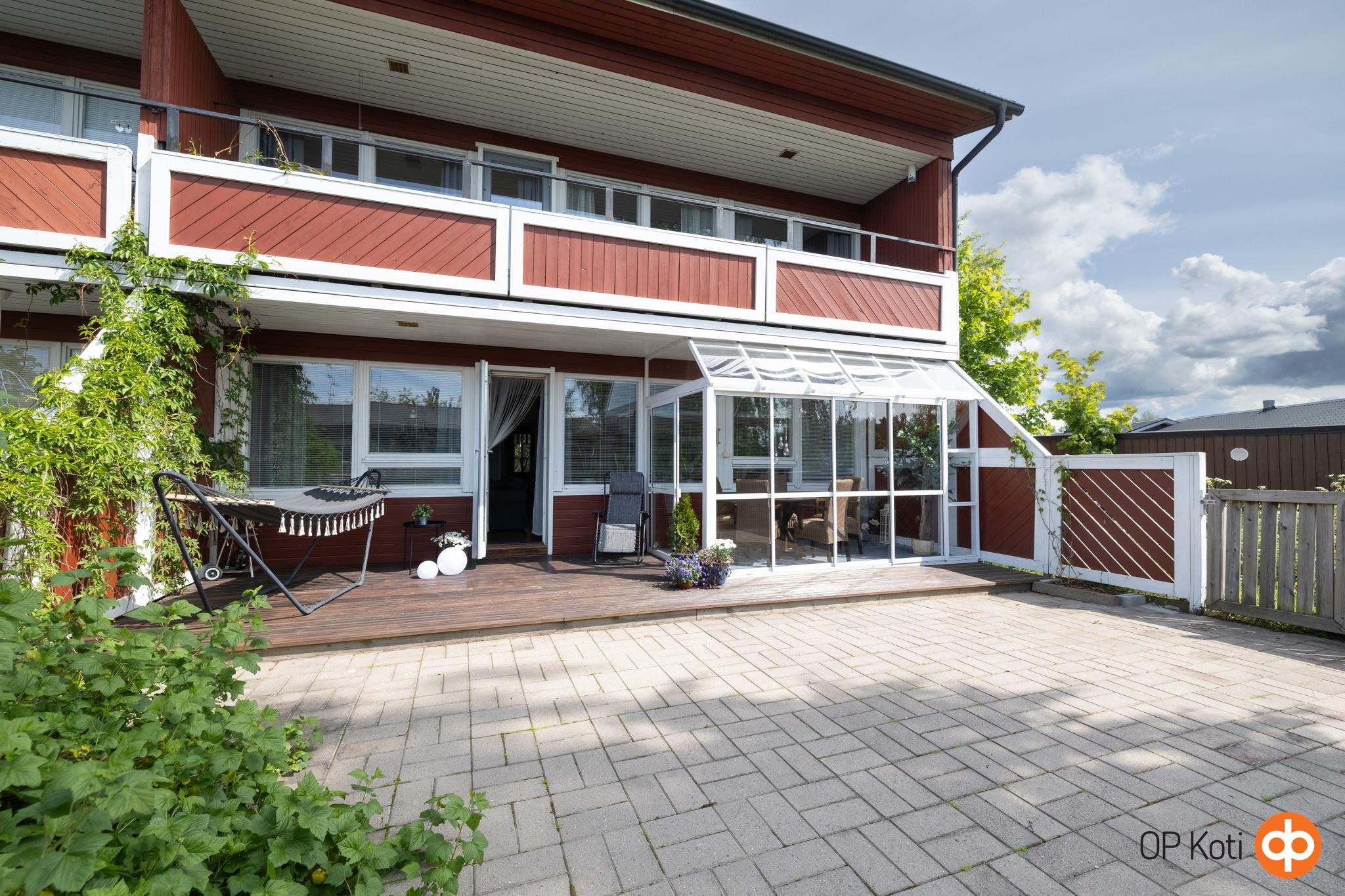 Tämä kaunis ja hyväkuntoinen kaksikerroksinen rivitalon päätyasunto tarjoaa täydellisen yhdistelmän rauhallista asumista ja mukavuutta. Korkealla tontilla sijaitseva huoneisto tarjoaa upeat näkymät, ja iso terassi, josta osta lasitettu, kutsuu nauttimaan ulkoilmasta ympäri vuoden. Kodin sydän, valoisa olohuone, avautuu keittiöstä, luoden avaran ja viihtyisän tilan yhteiseen ajanviettoon.