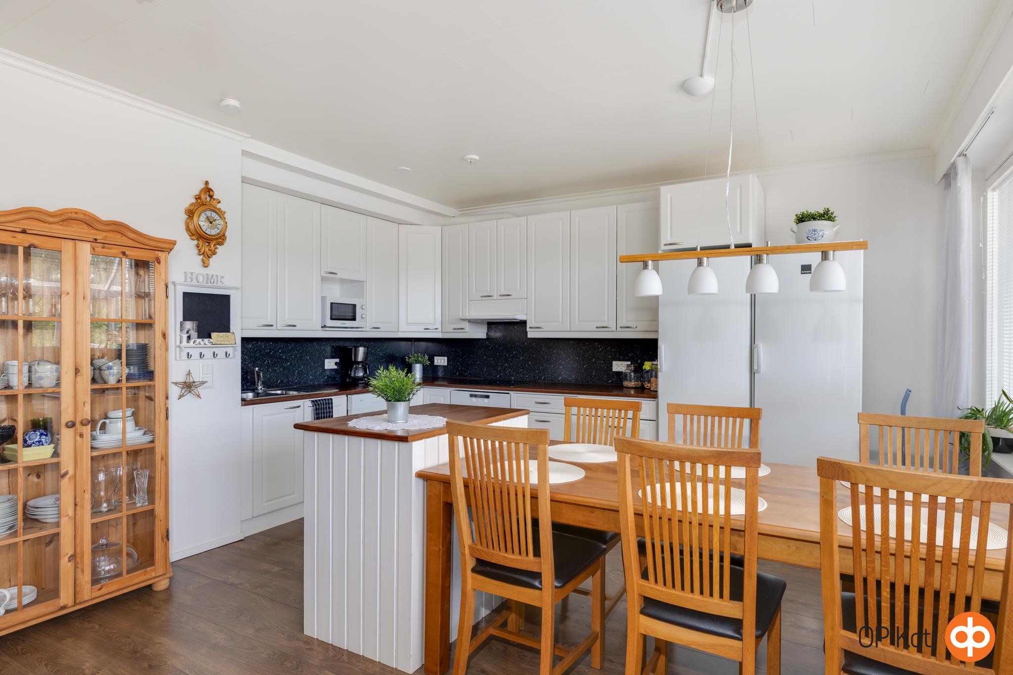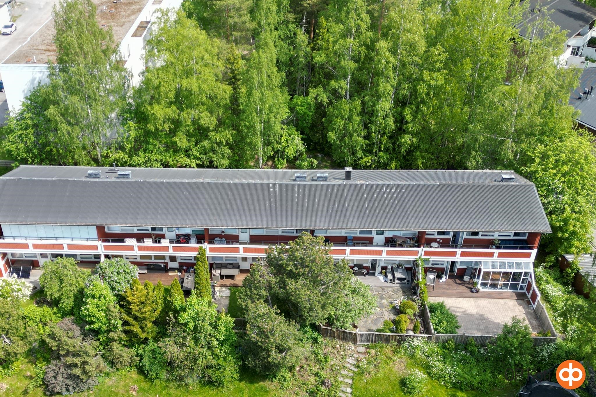 Denna vackra och välskötta tvåvånings radhusgavellägenhet erbjuder den perfekta kombinationen av fridfullt boende och komfort. Lägenheten ligger på en hög tomt och erbjuder fantastisk utsikt, och den stora terrassen, varav en del är inglasad, inbjuder till att njuta av utomhus året runt. Hemmets hjärta, det ljusa vardagsrummet, öppnar upp från köket och skapar en rymlig och trivsam plats för gemensam samvaro.