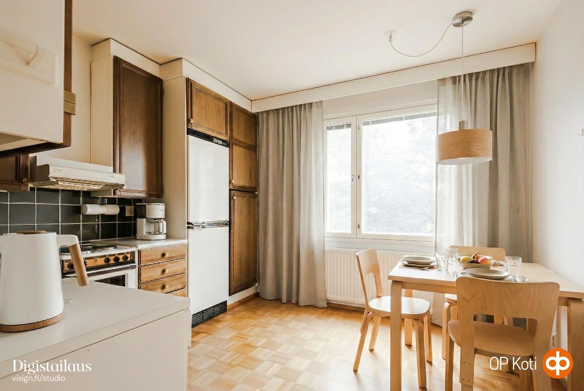 Valoisa ja vehreisiin maisemiin avautuva kulmahuoneisto viidennessä kerroksessa!