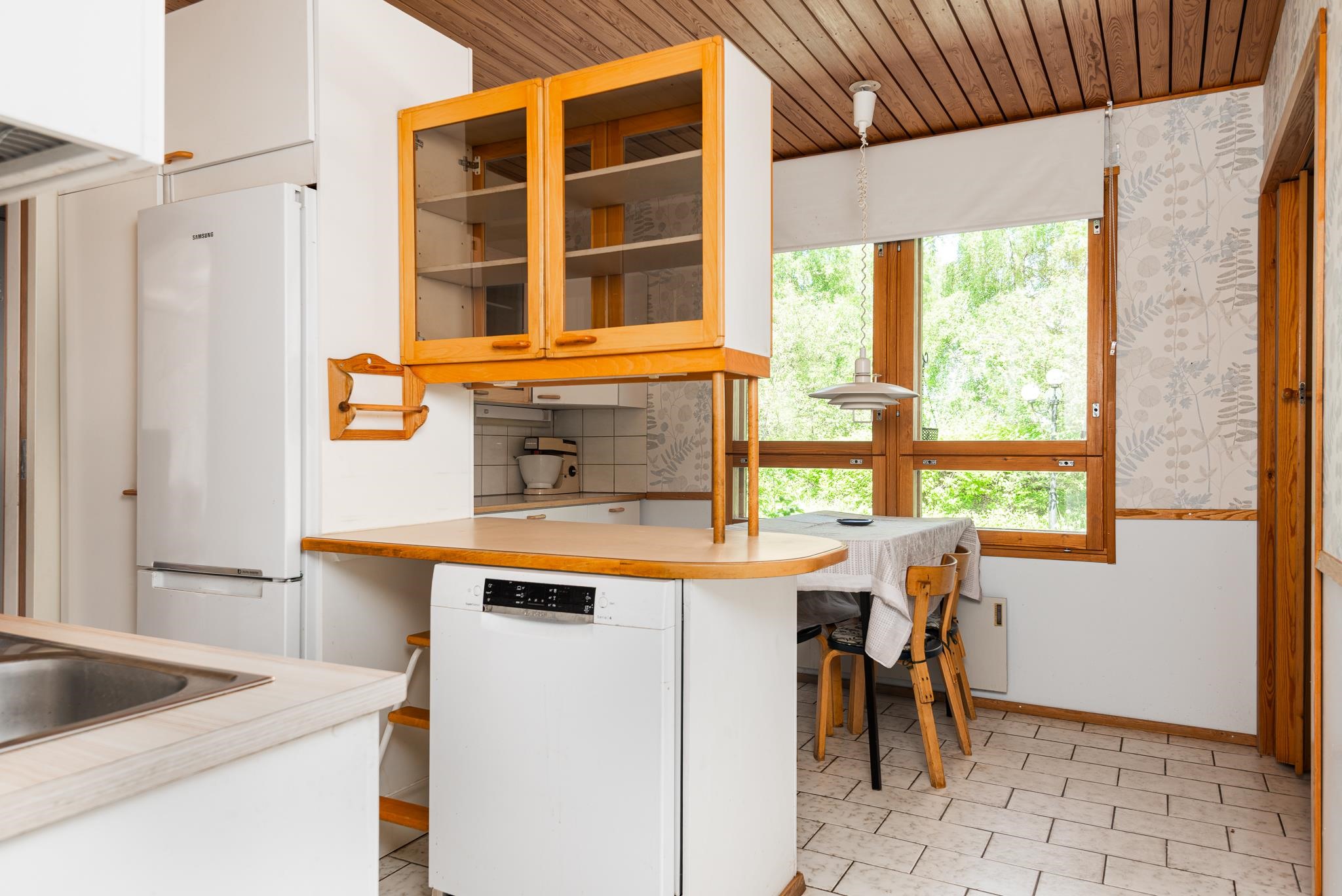 - Jääkaappipakastin, kylmiö ei toimi, lattialiesi, keraaminen liesi, liesituuletin, astianpesukone, kaapistot, kiinteät valaisimet.