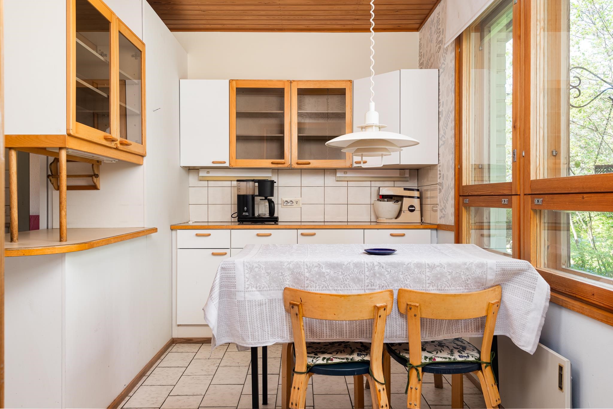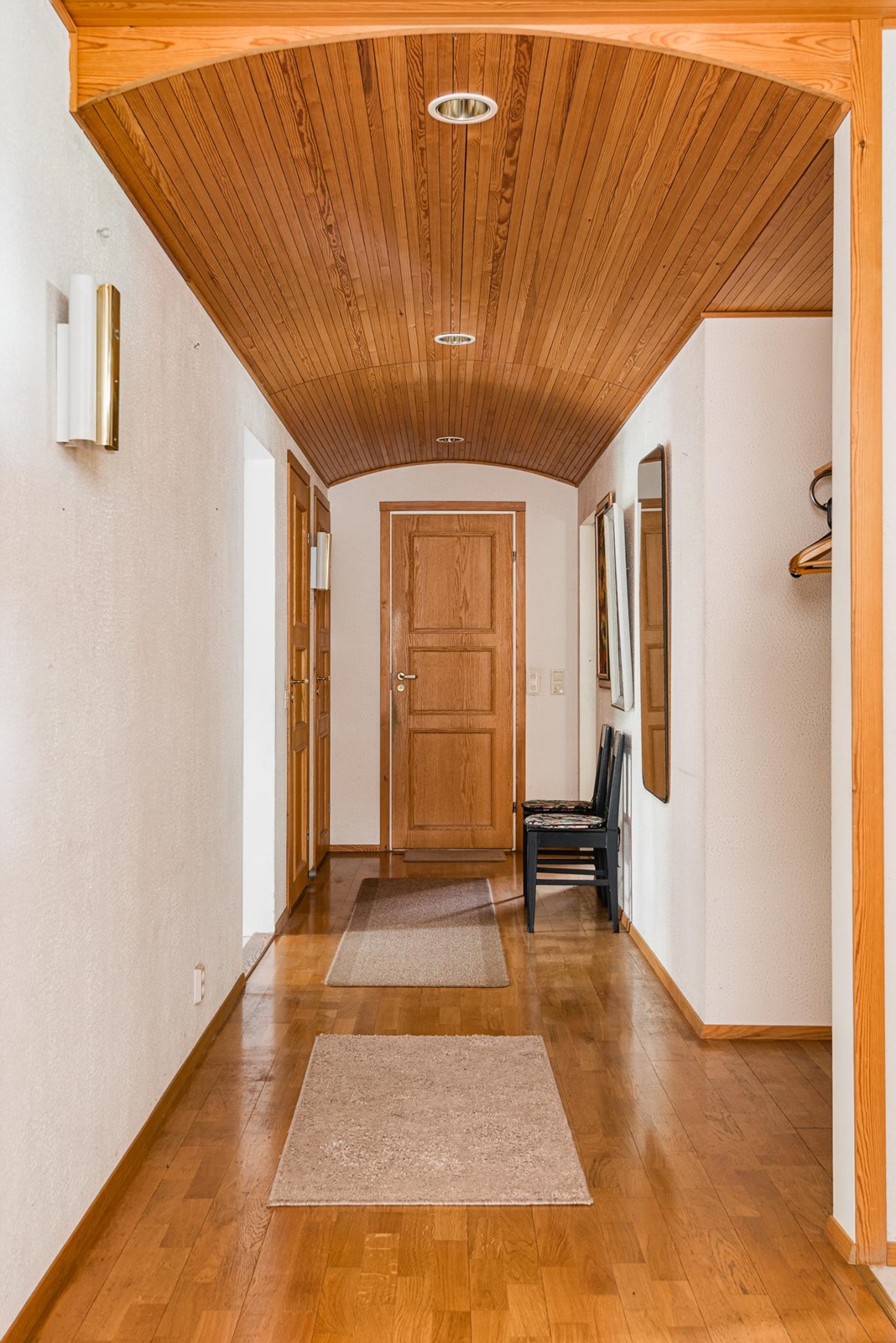 Tätä taloa rakentaessa ei ole tyydytty perusratkaisuihin, katseenvangitsijana mm. laadukkaita ja taidokkaita puupintoja kattopaneeleissa. Pohja taipuu helposti jopa neljään makuuhuoneeseen. Kaksi wc:tä ja kaksi suihkutilaa. Ullakolla runsaasti korkeaa säilytystilaa, lisäksi vaatehuone portaikon alla ja lämmin ulkovarasto. Kahden auton talli, jota on käytetty työtilana. Kuntotarkastus valmiiksi tehtynä, raportin saat välittäjältä, tästä on hyvä remontoida uusi koti!